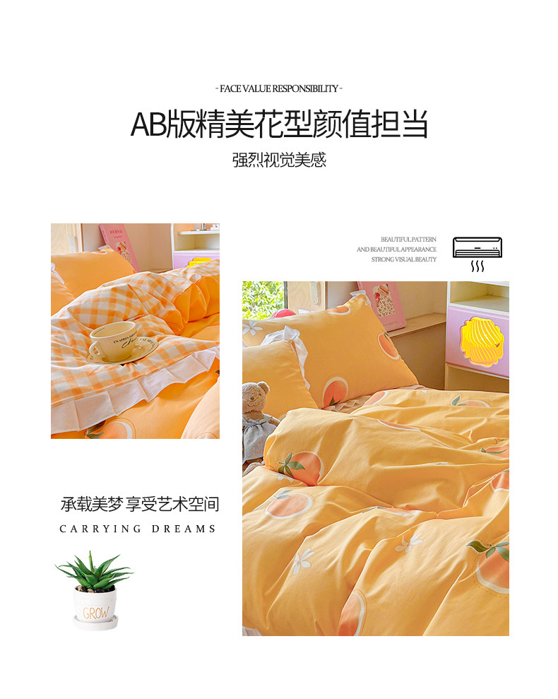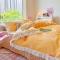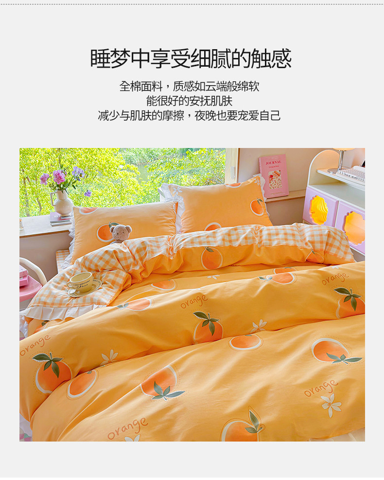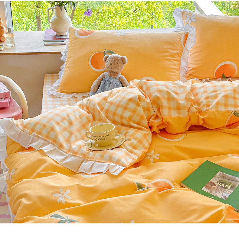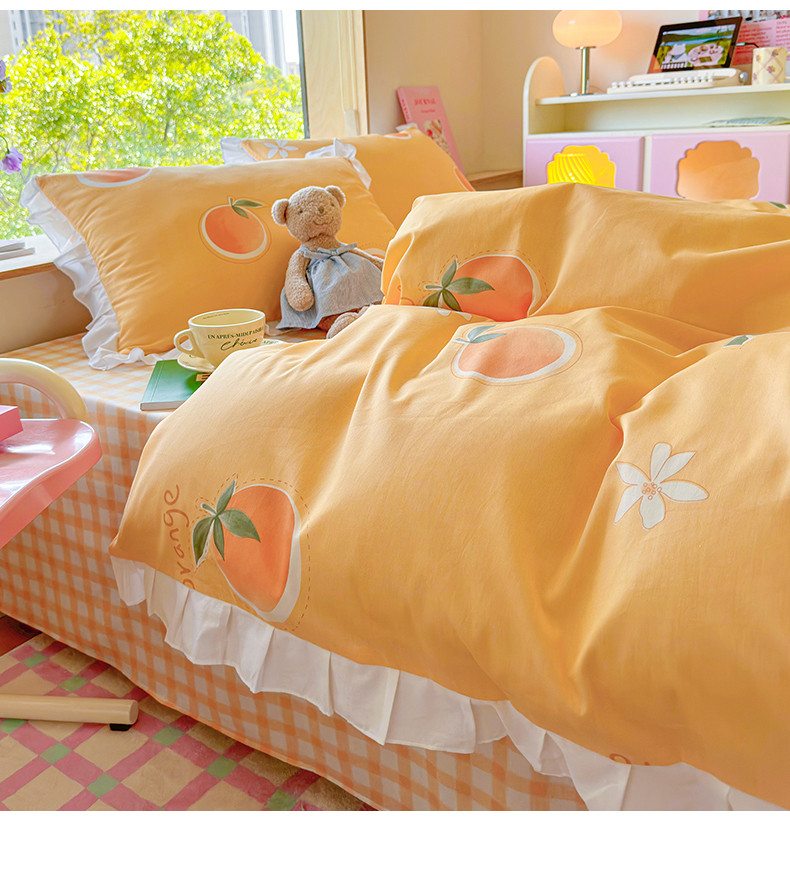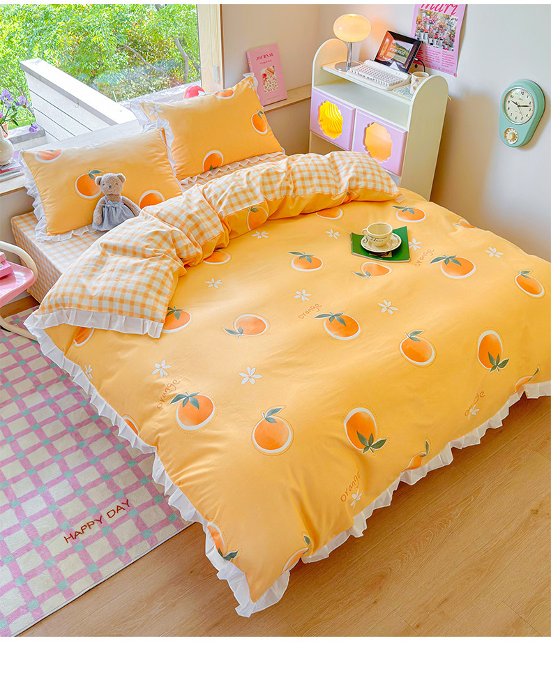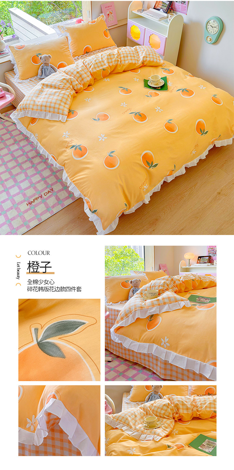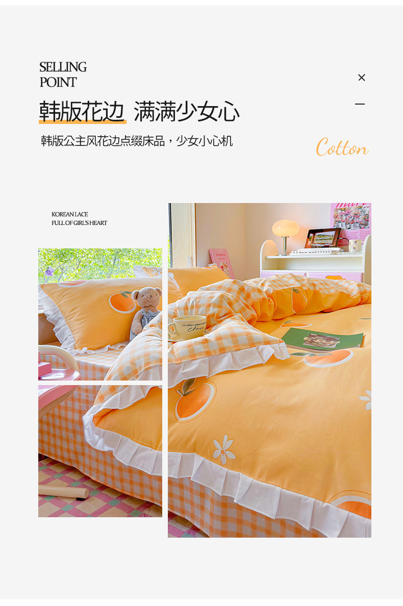桃子 2023新款仙气奶油碎花少女心韩版花边纯棉四件套 花边-橙子
