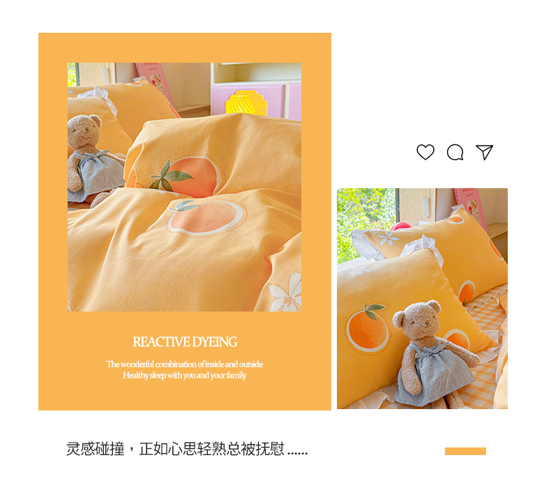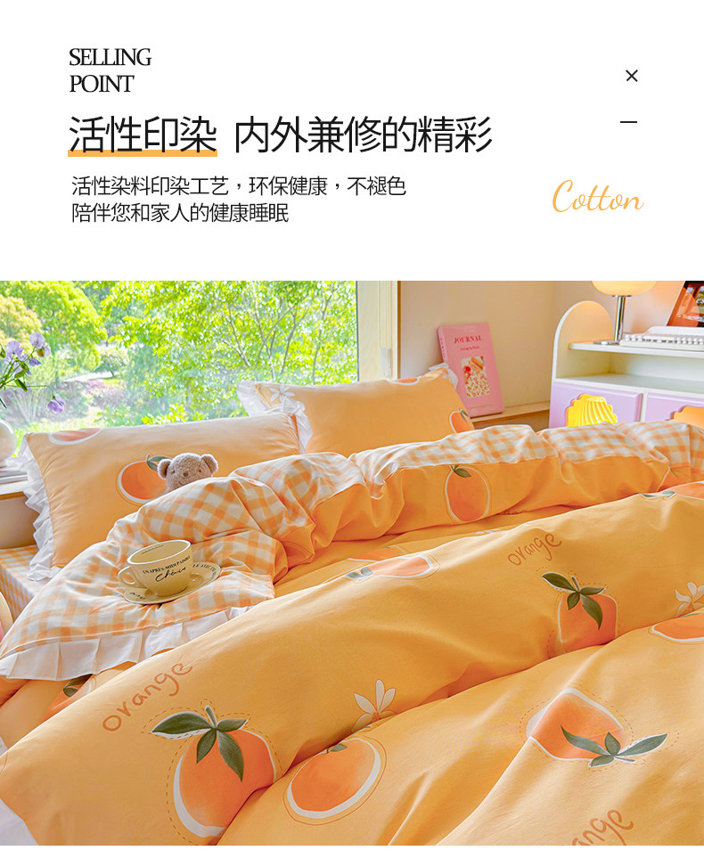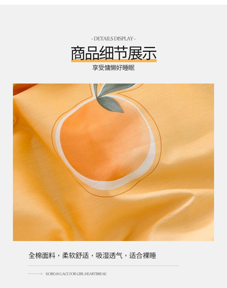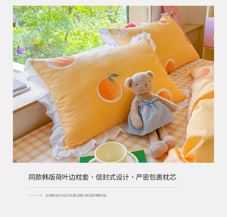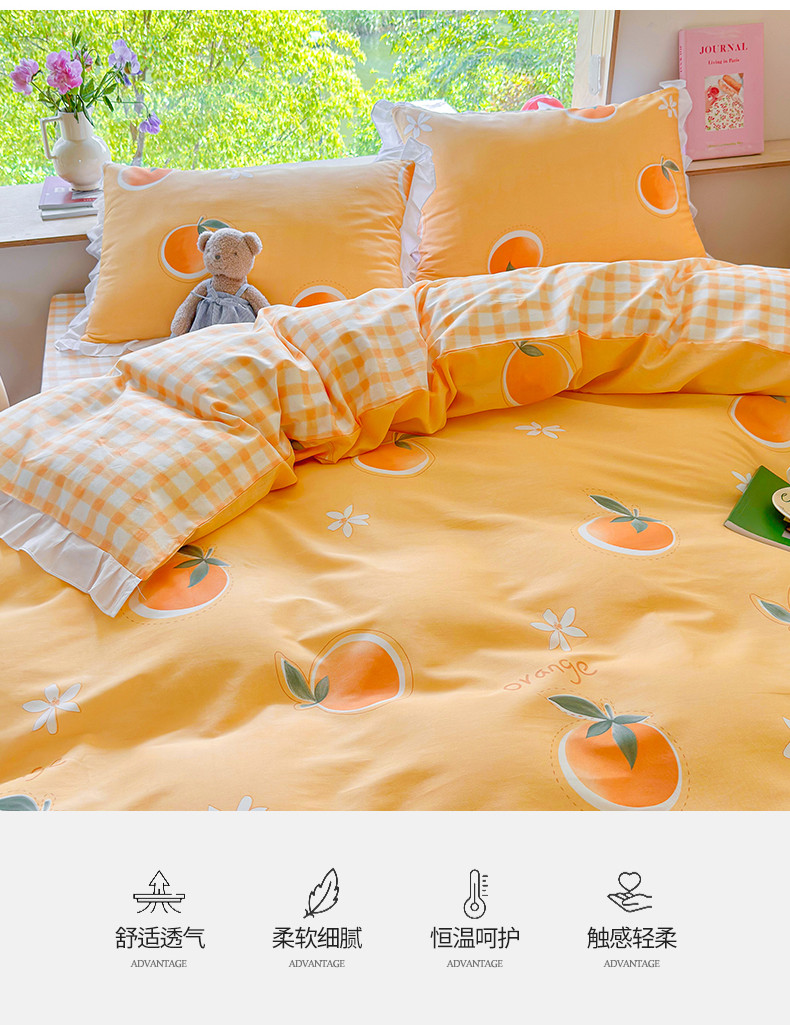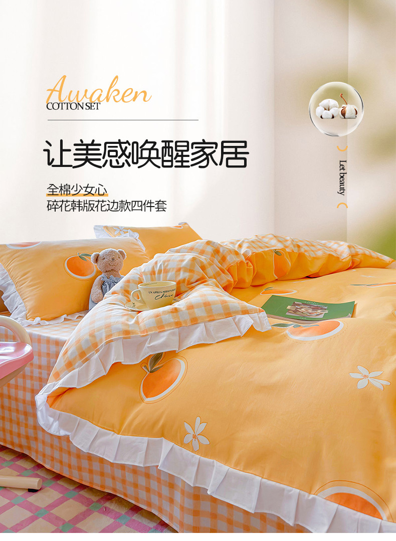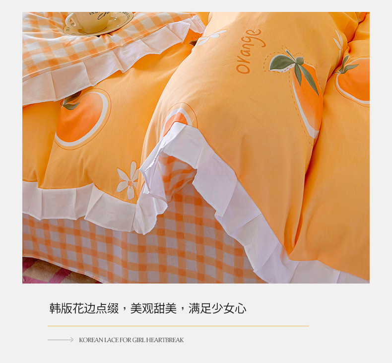 商品名称:桃子 2023新款仙气奶油碎花少女心韩版花边纯棉四件套 花边-橙子