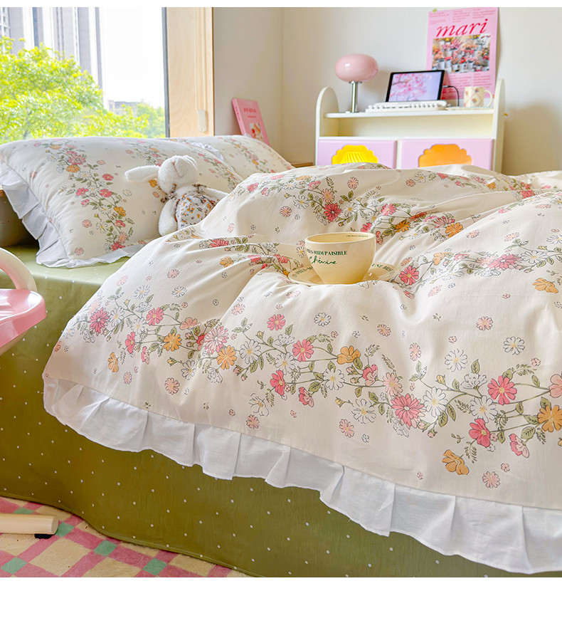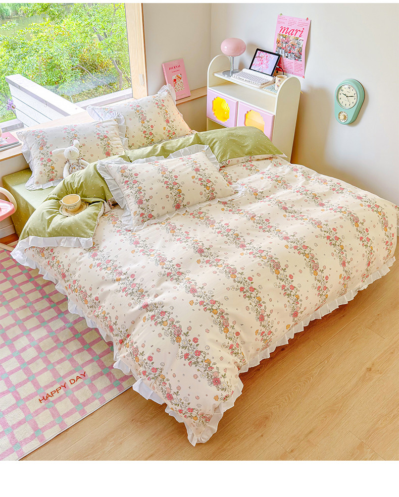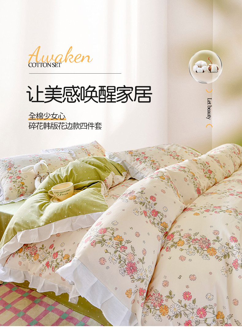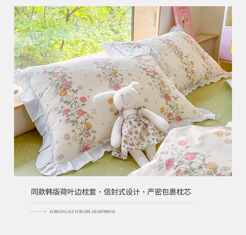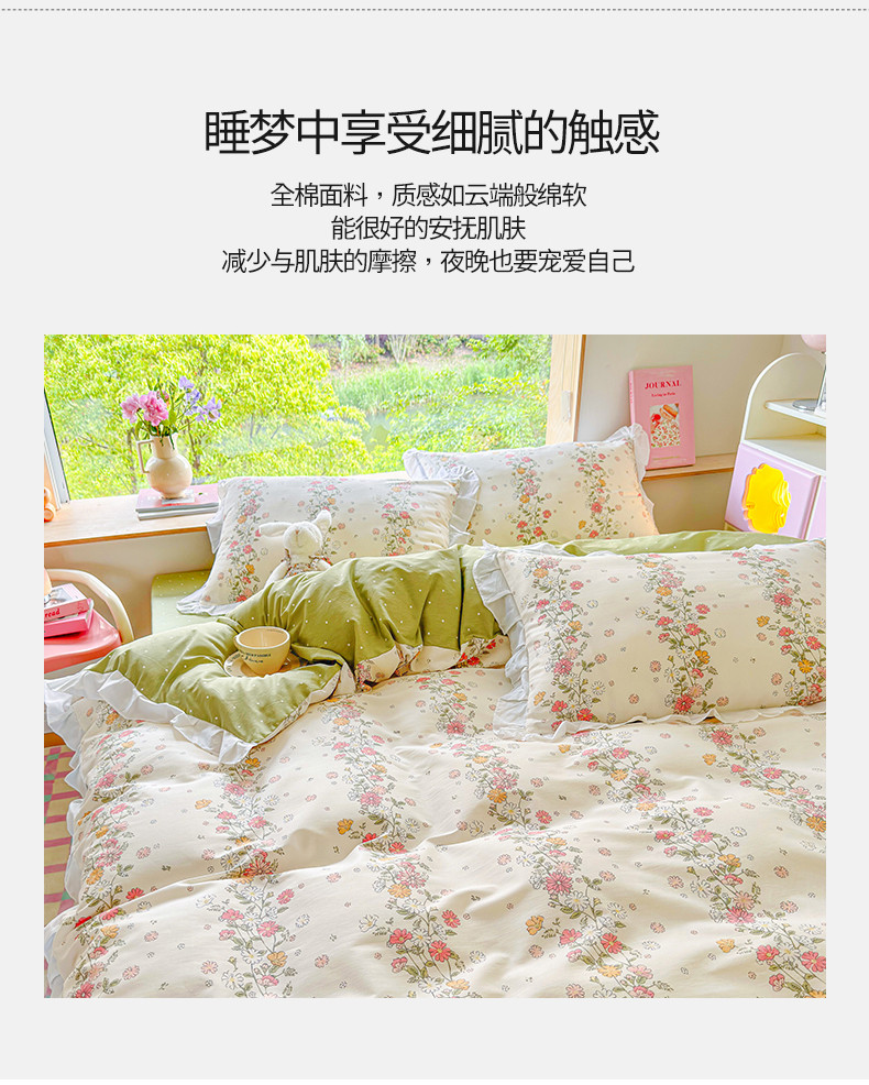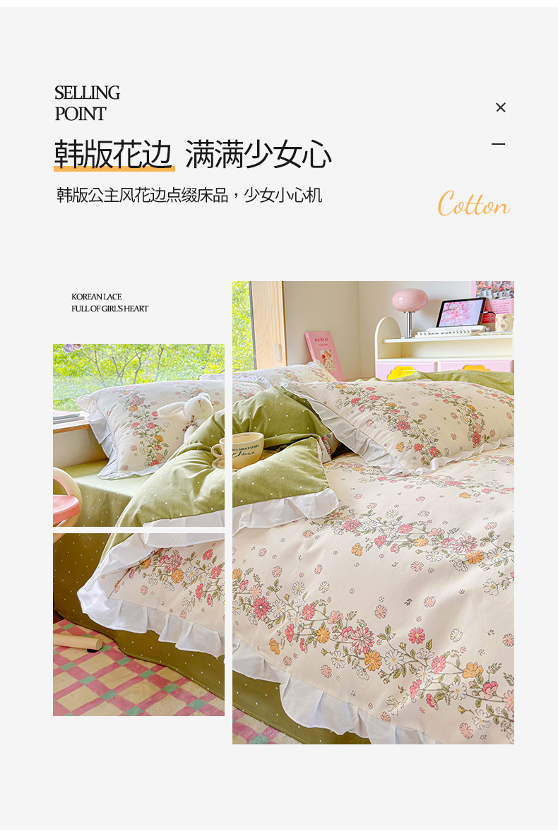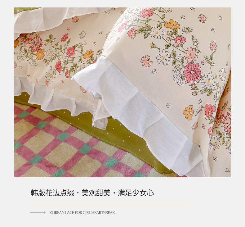 商品名称:桃子 2023新款仙气奶油碎花少女心韩版花边纯棉四件套 花边-恋歌