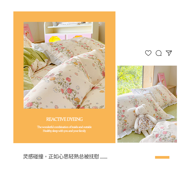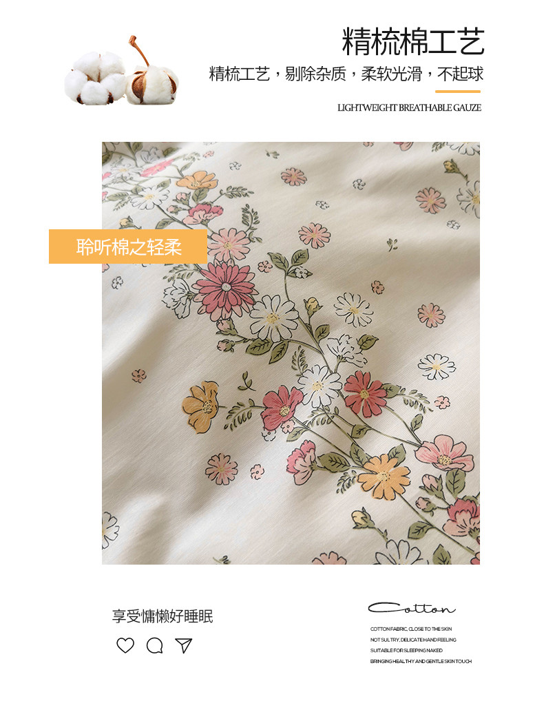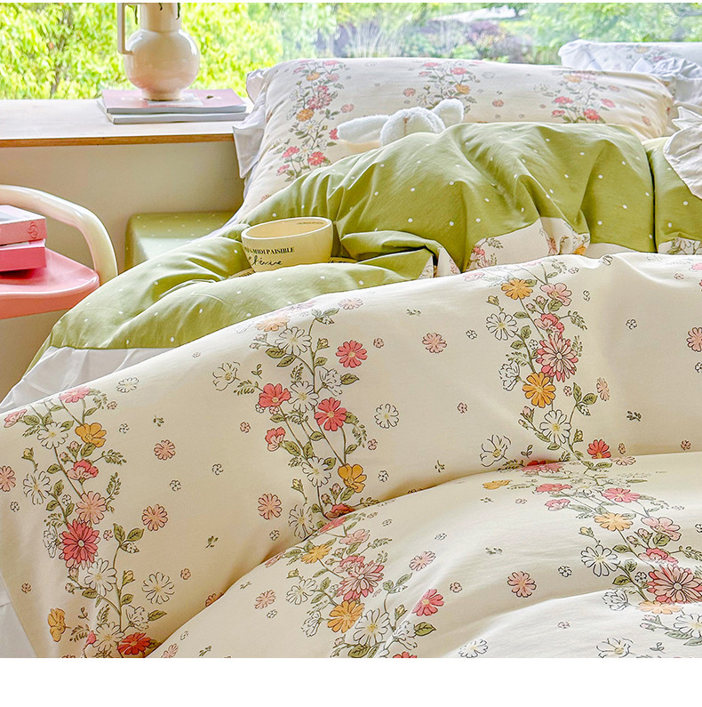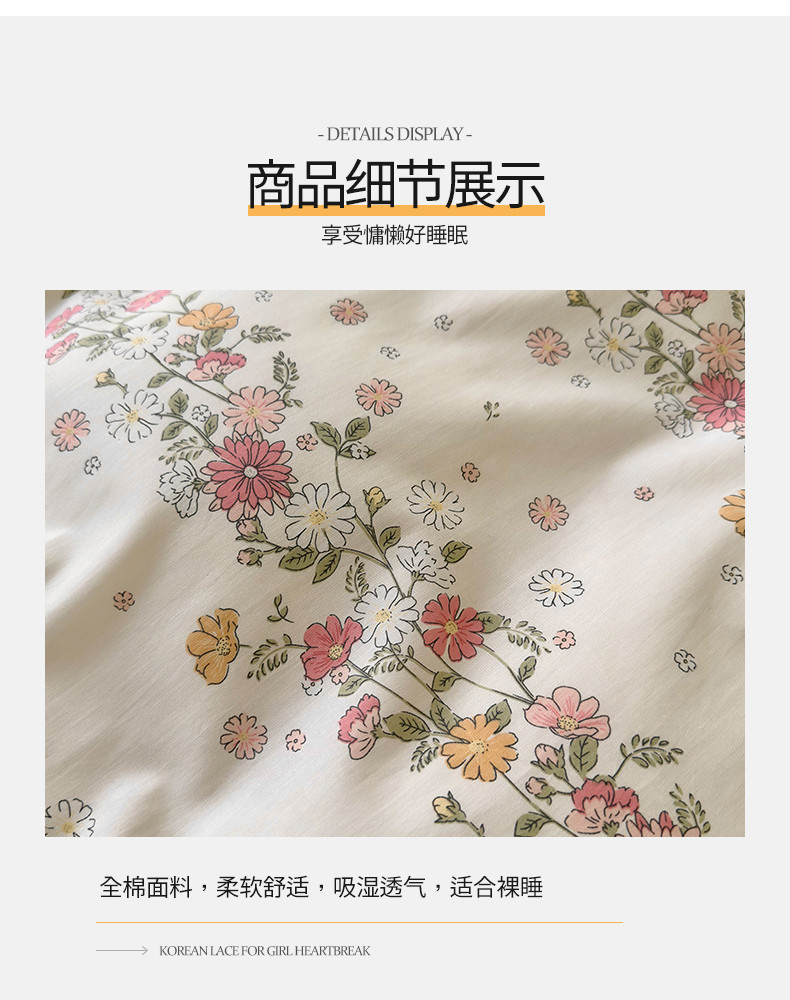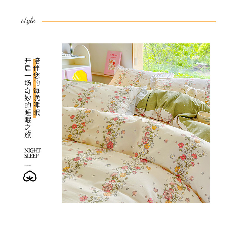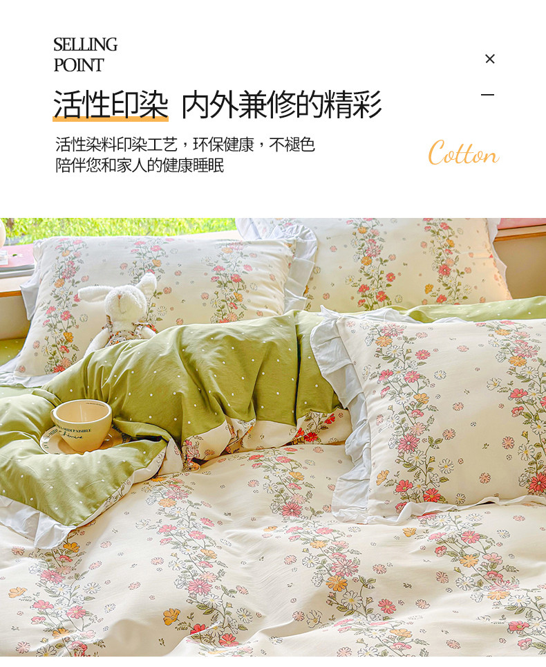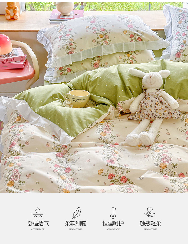 商品名称:桃子 2023新款仙气奶油碎花少女心韩版花边纯棉四件套 花边-恋歌