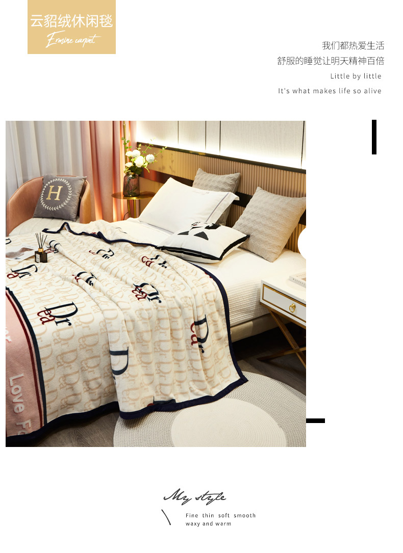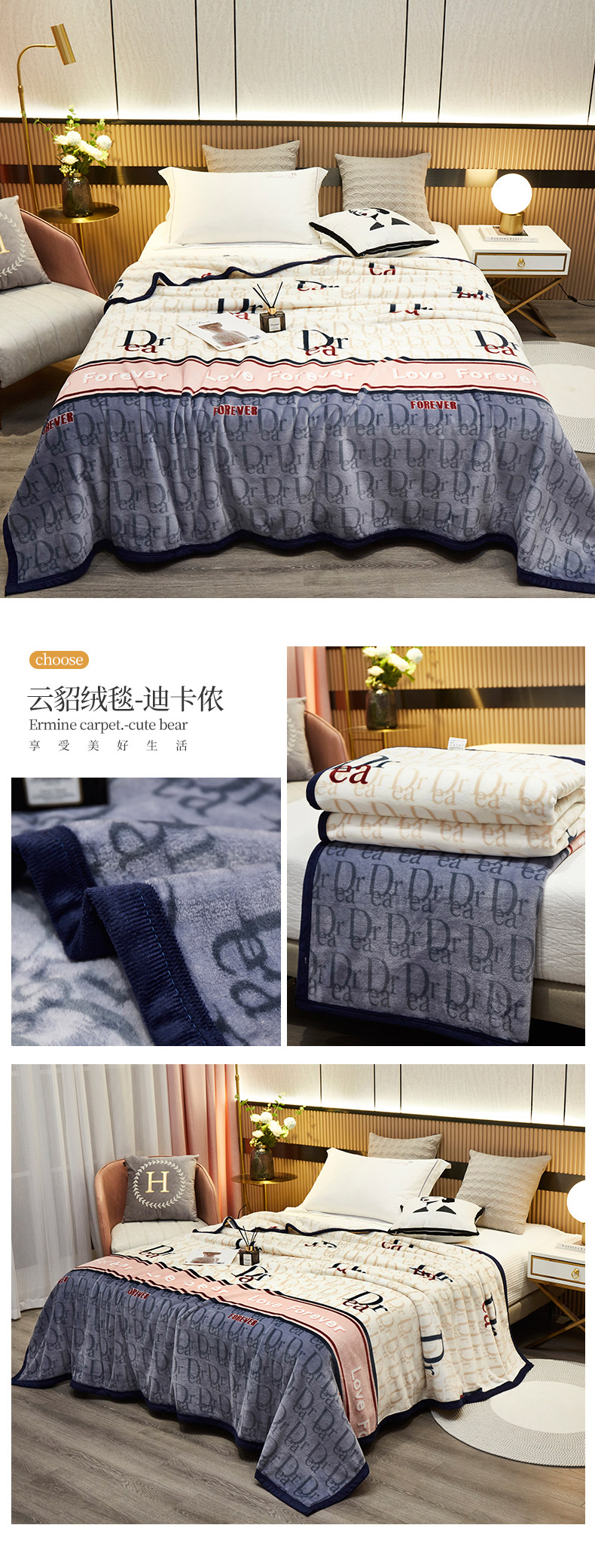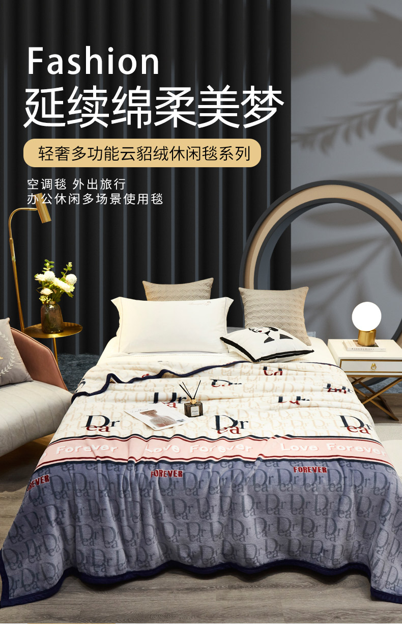 肖恩毯业 2025新款印花云貂绒毛毯沙发盖毯午睡毯子 迪卡侬