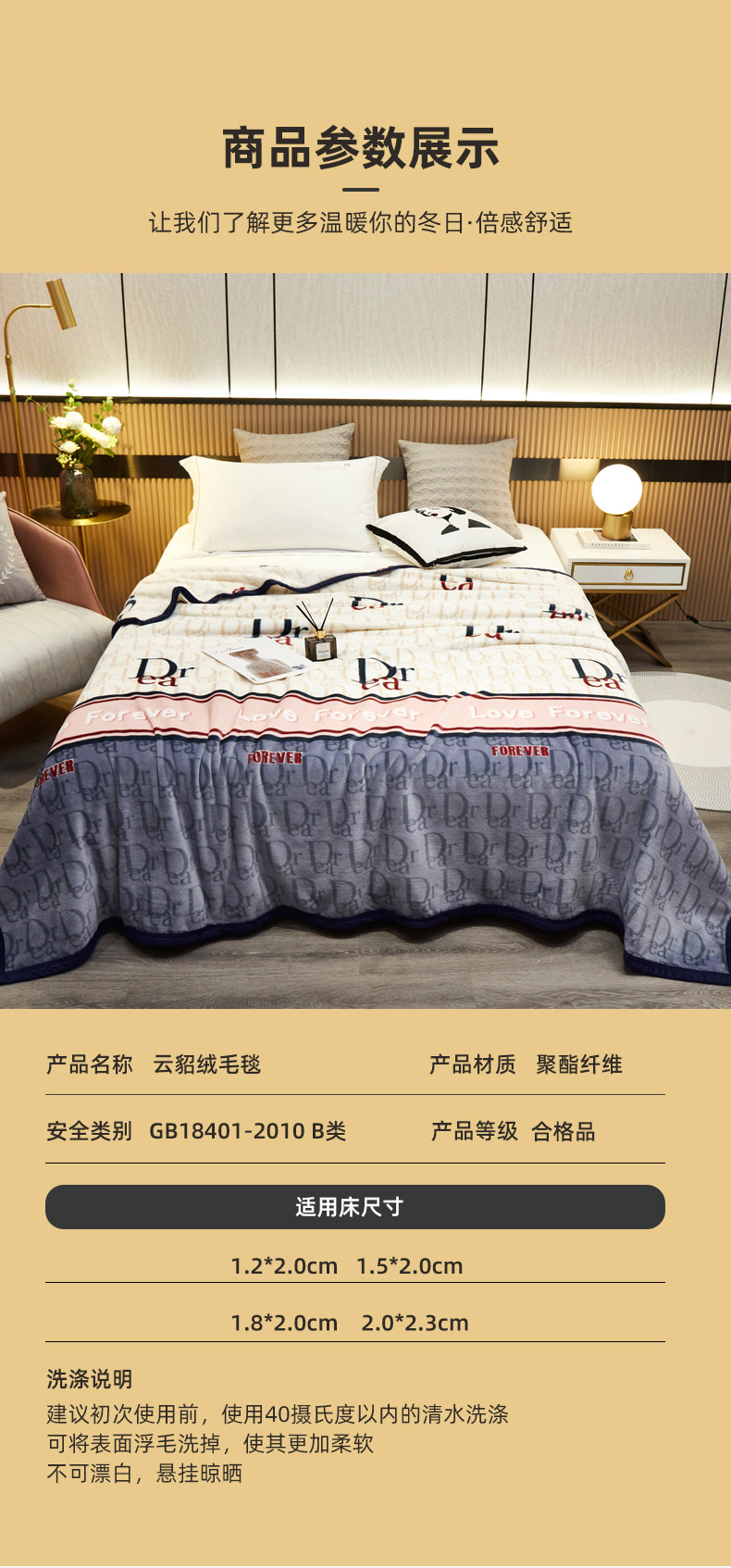 商品名称:肖恩毯业 2025新款印花云貂绒毛毯沙发盖毯午睡毯子 迪卡侬