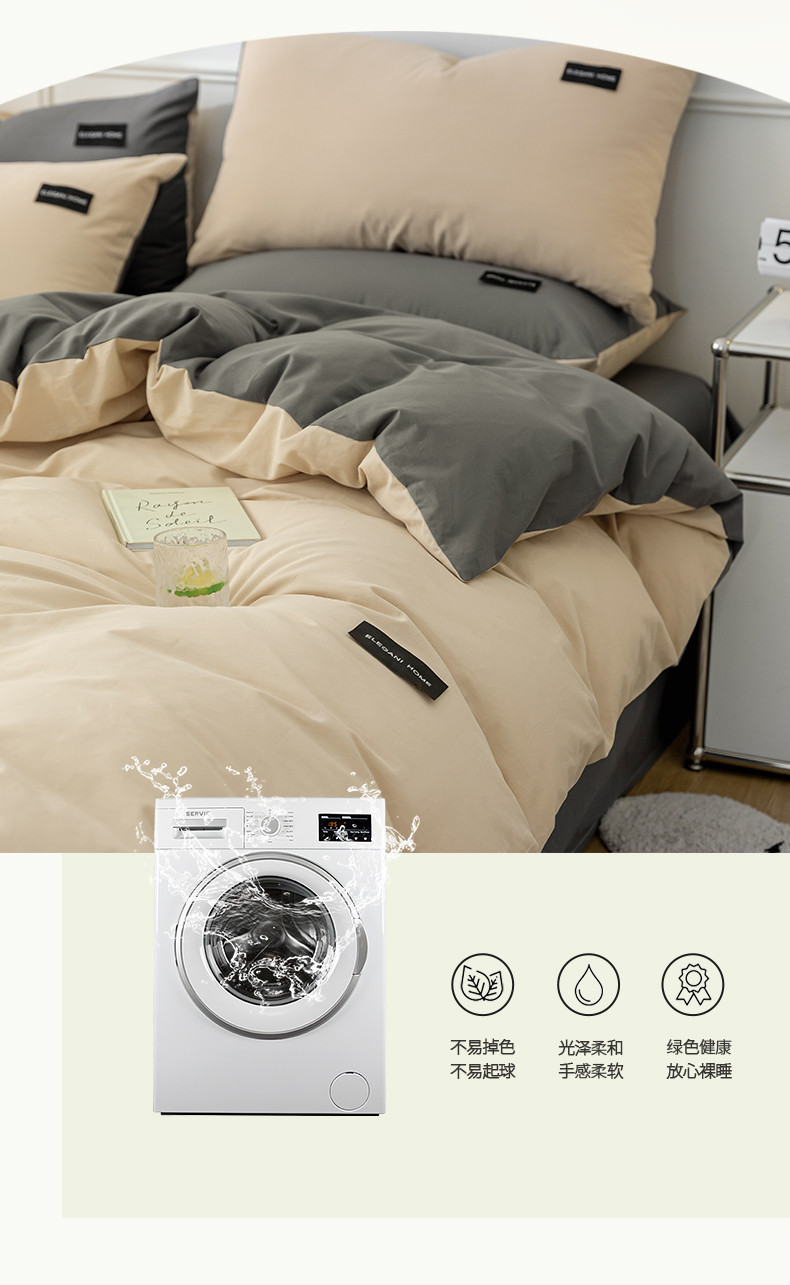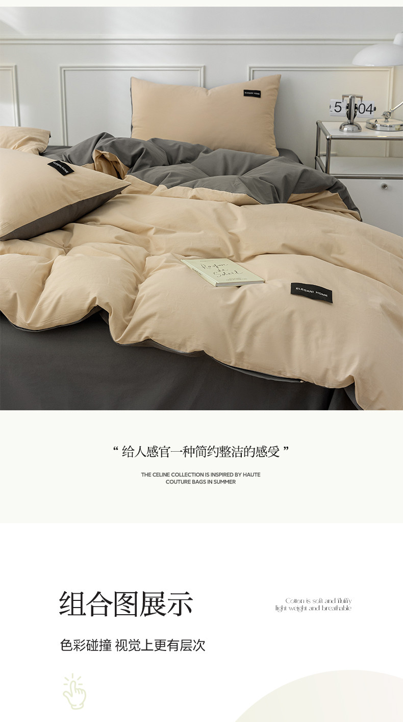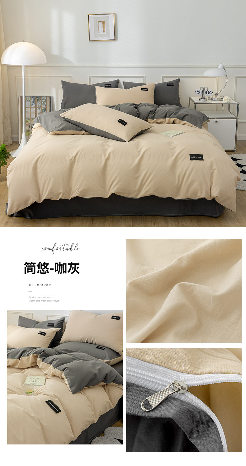 商品名称:九沐良品 新款全棉水洗棉双拼款四件套学生三件套 简悠-咖灰