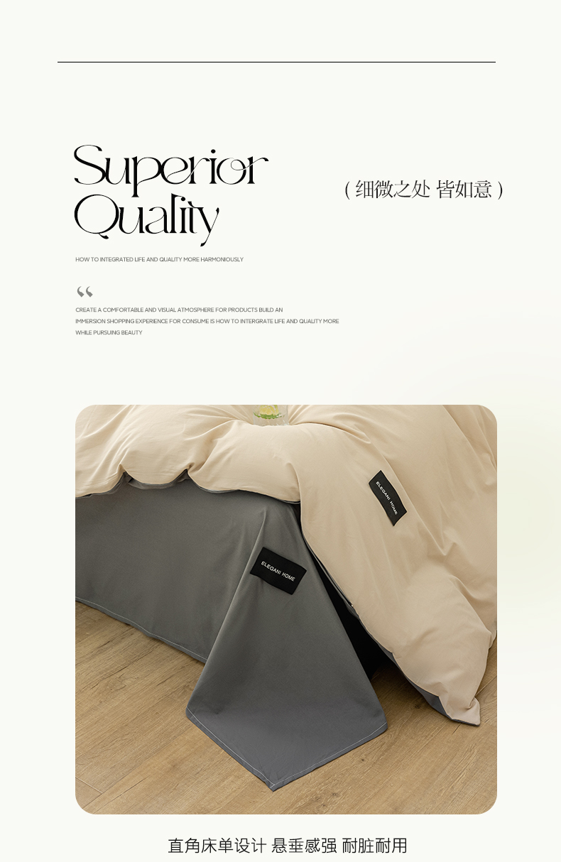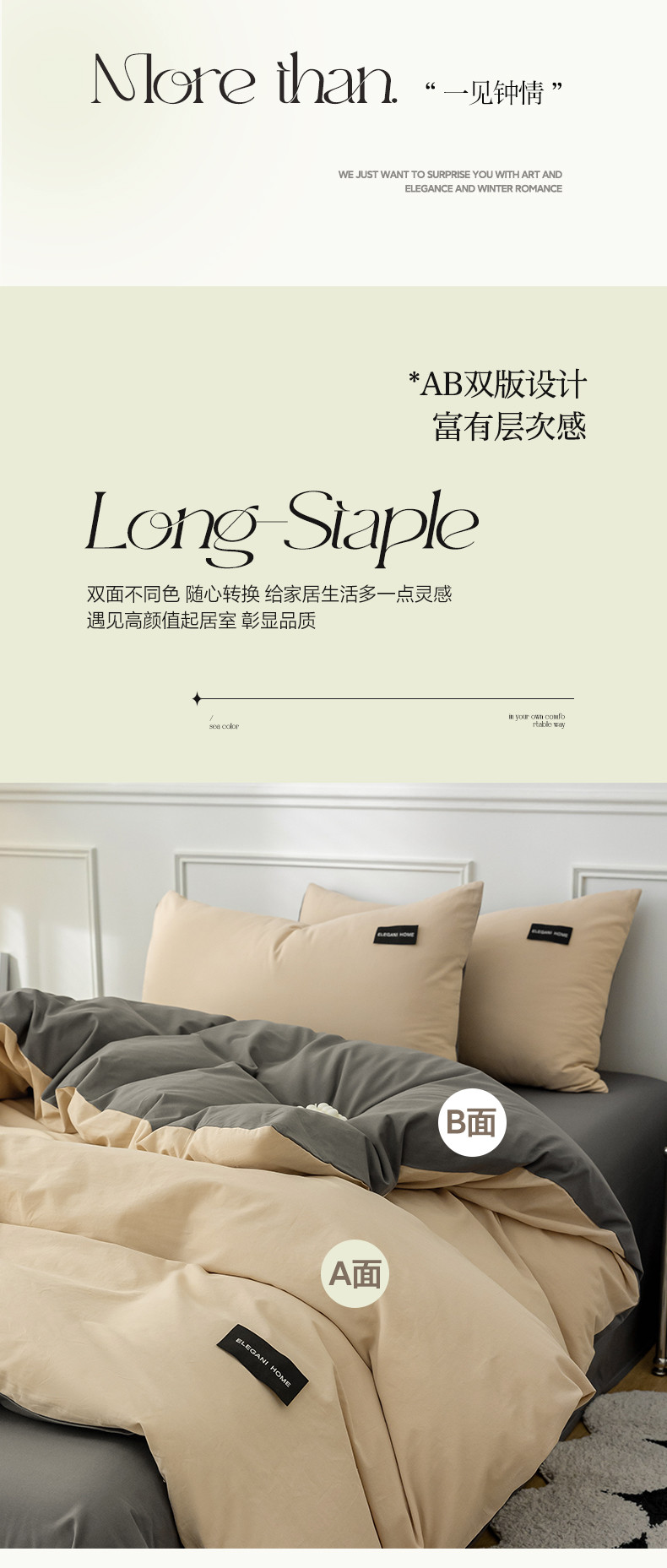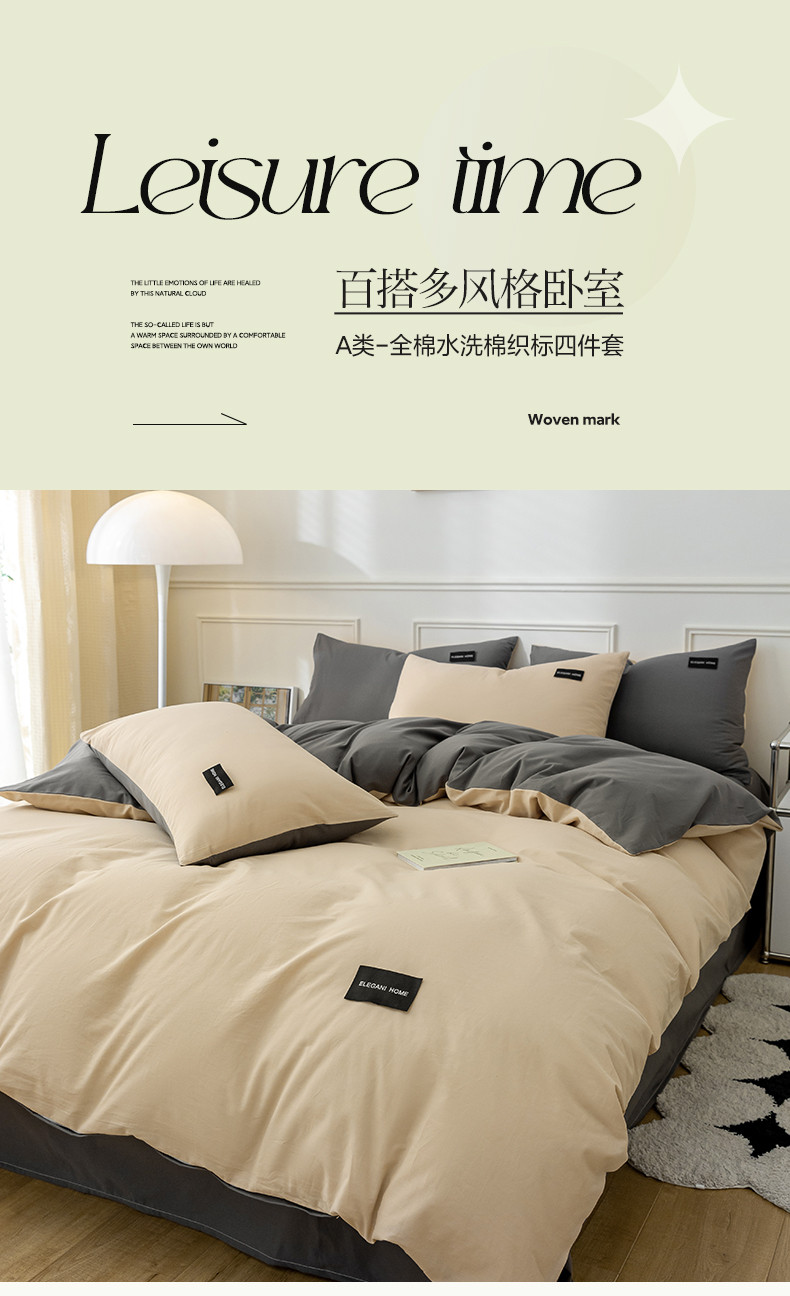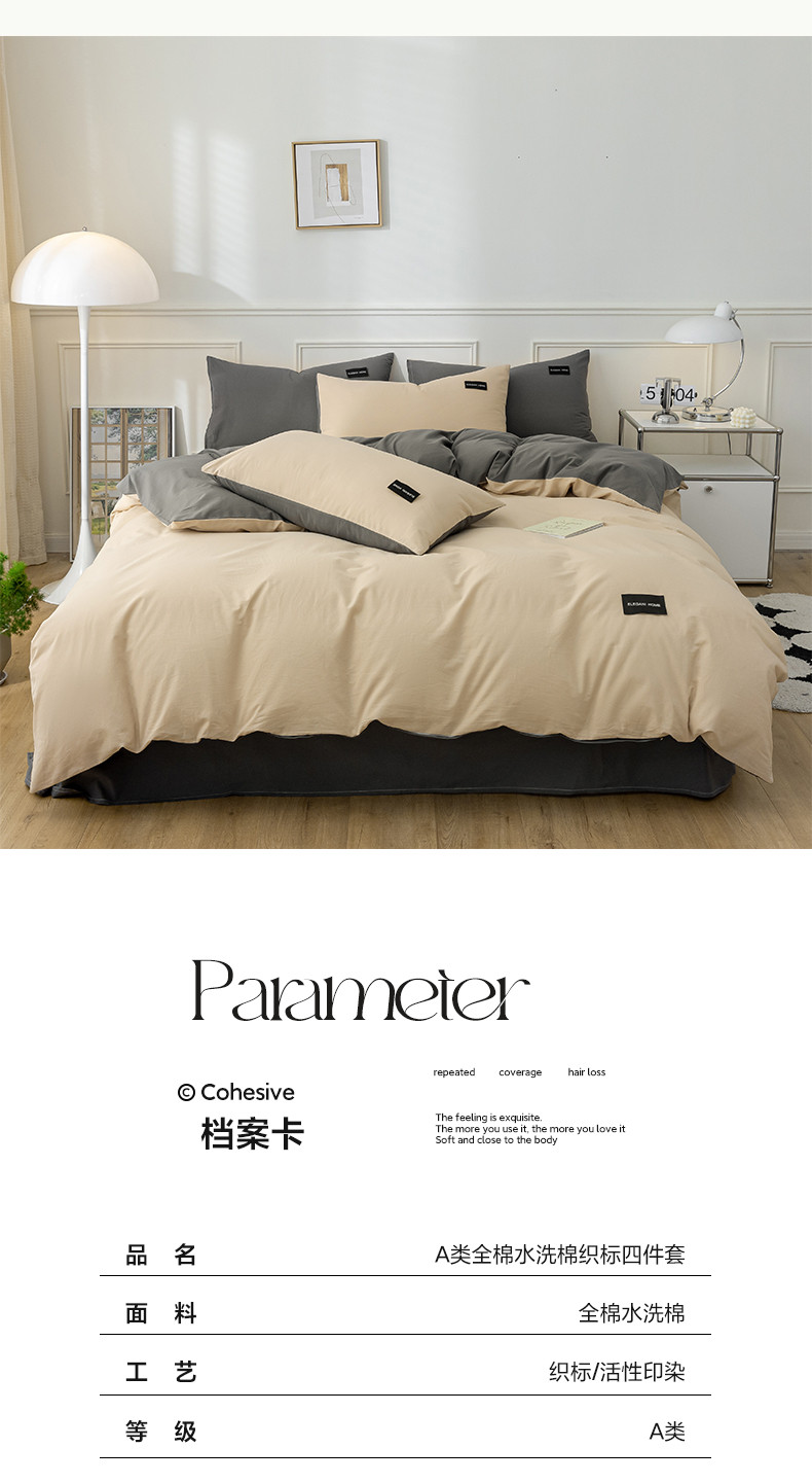 商品名称:九沐良品 新款全棉水洗棉双拼款四件套学生三件套 简悠-咖灰