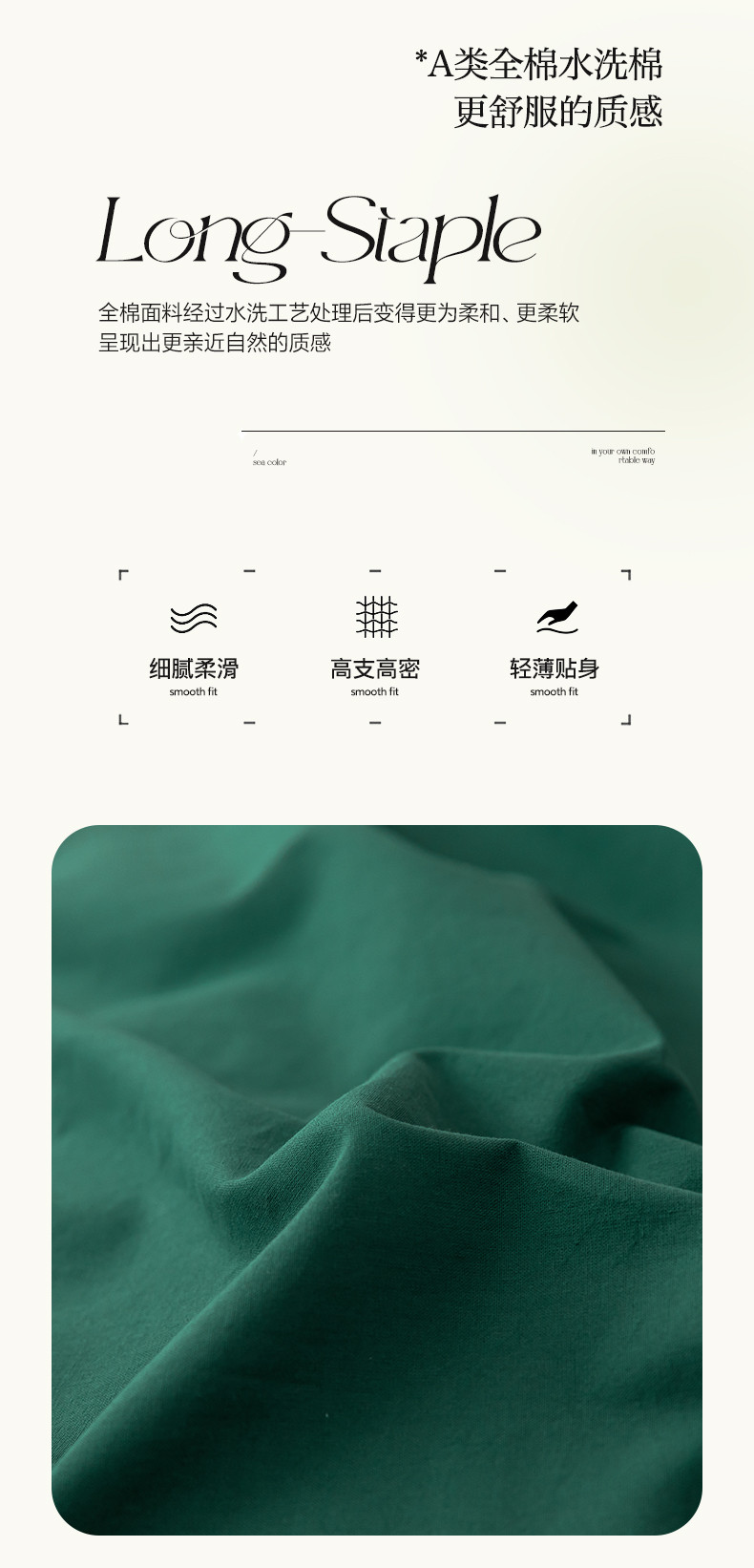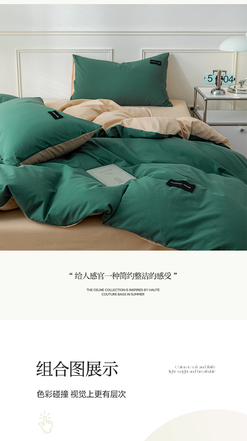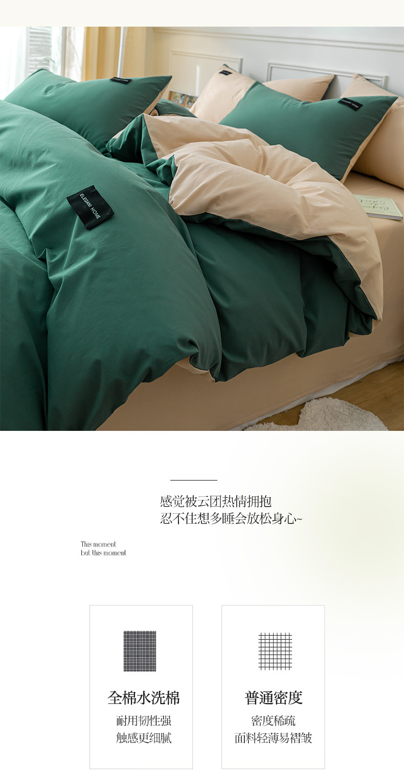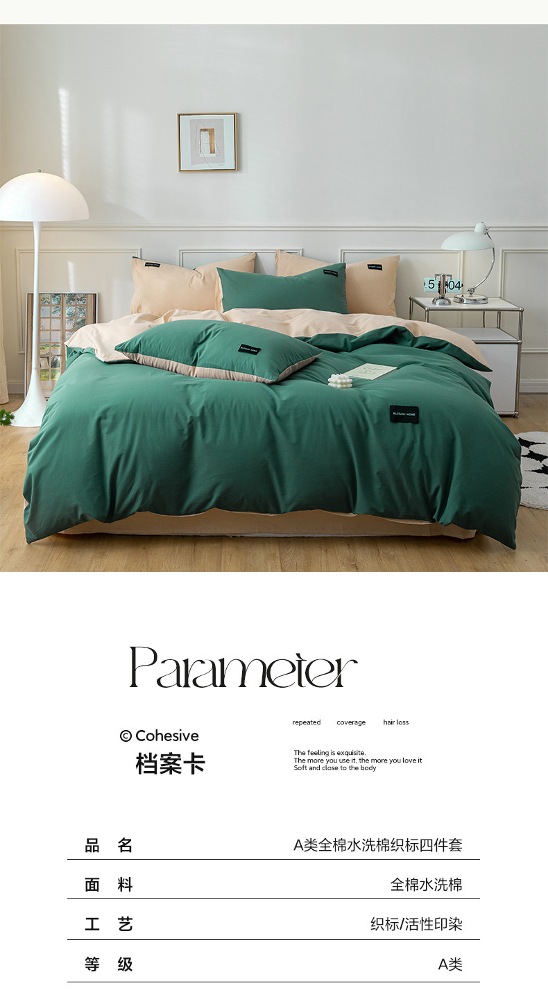 商品名称:九沐良品 新款全棉水洗棉双拼款四件套学生三件套 简悠-松叶绿