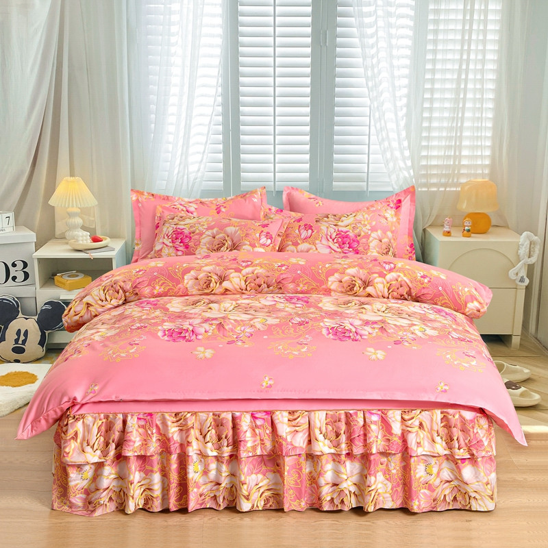 (总)小雨家纺 2026新款亲肤芦荟棉外贸蕾丝花边床裙,百花齐放蓝,繁花似锦,简约沙龙,向阳而生,知己,知心爱人