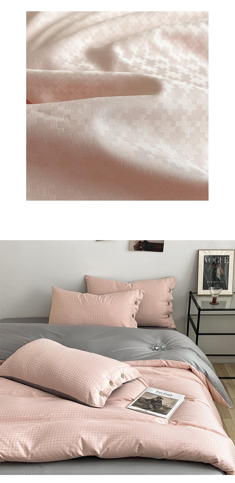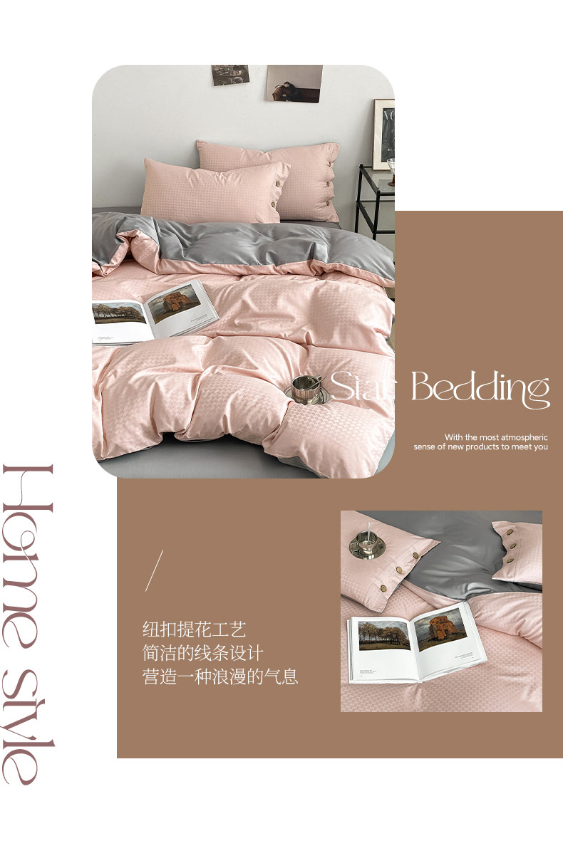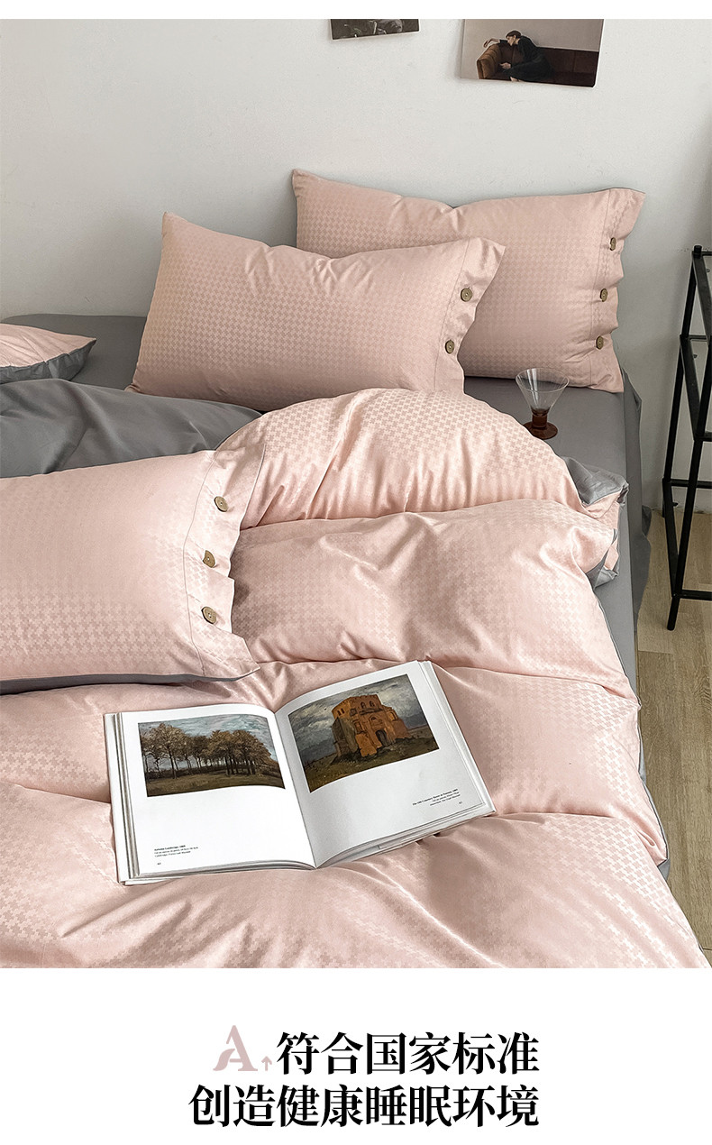商品名称:古吉梦 2023新款A类抗菌防螨纽扣提花四件套磨毛秋冬款 豆沙粉+流光灰
