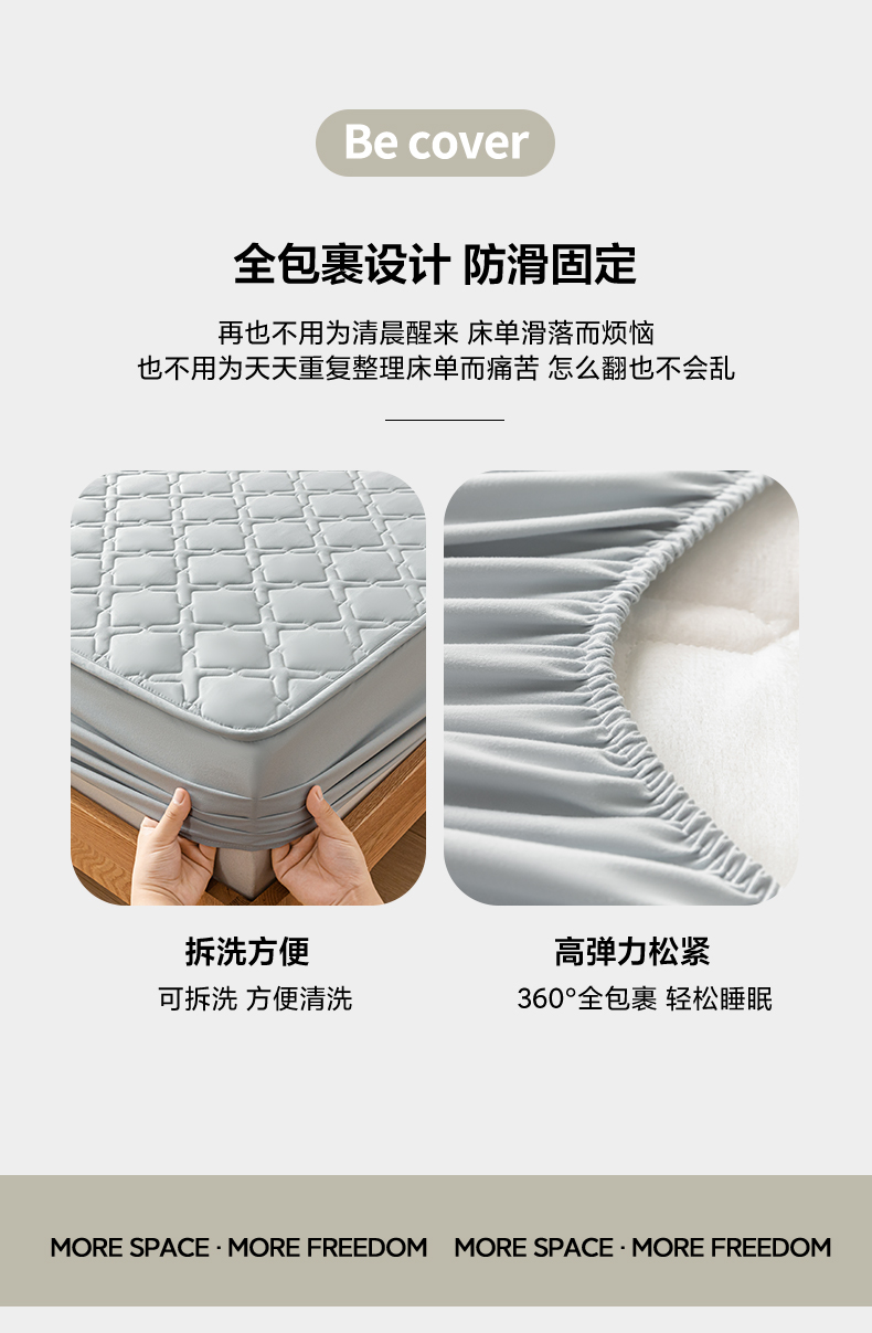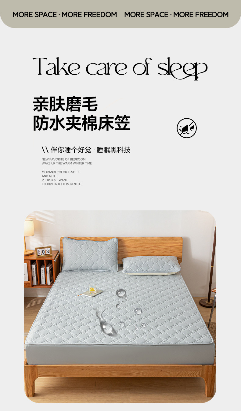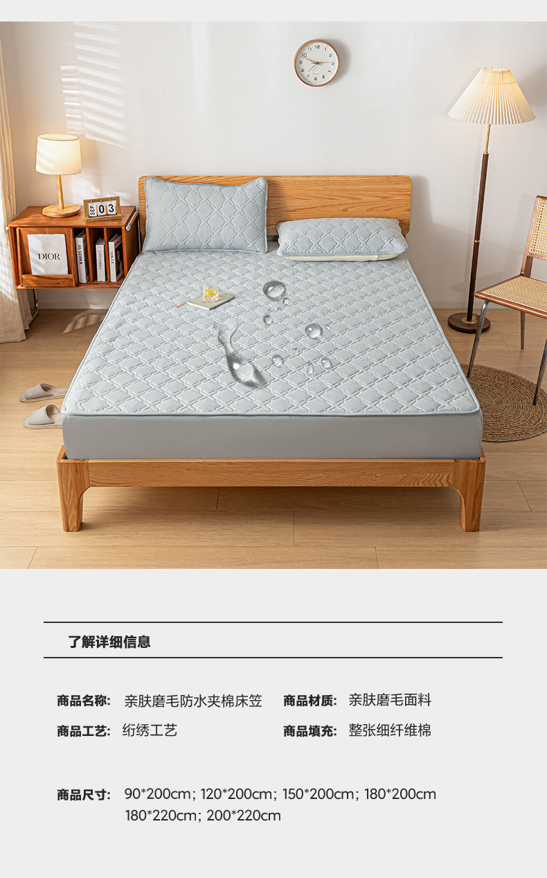 商品名称:迪梦思家纺 2023新款亲肤磨毛防水夹棉床笠 高级灰