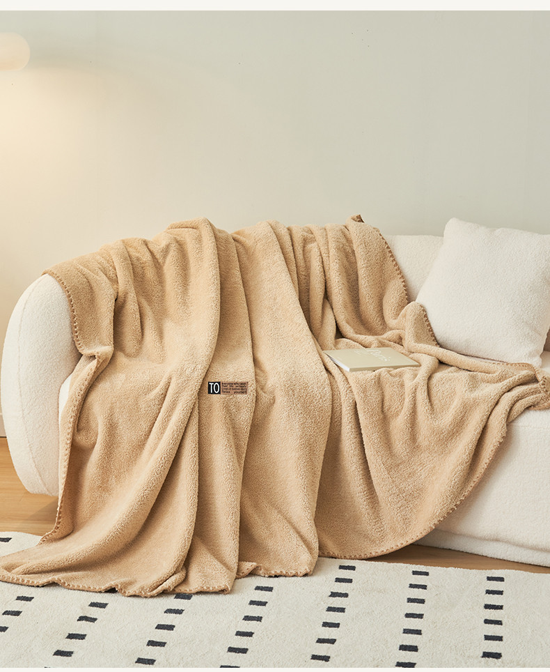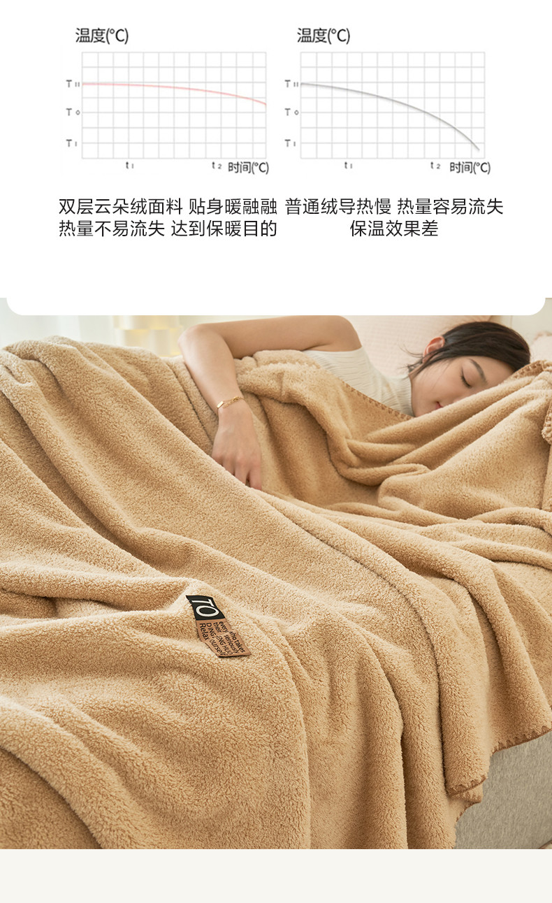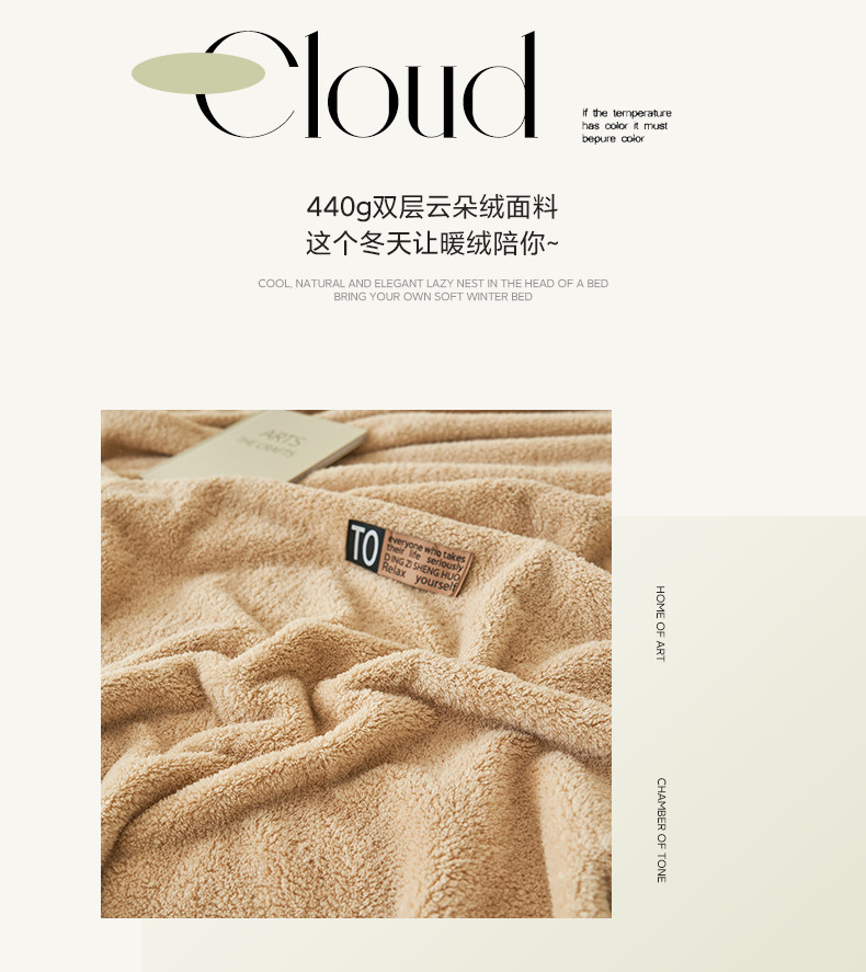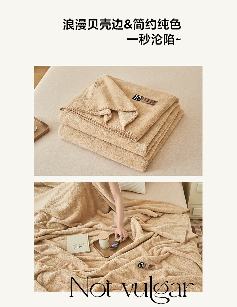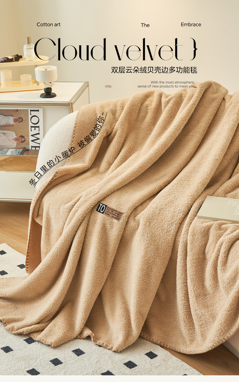商品名称:晨曦家纺 2023新款高克重440克云朵绒双层毛毯高级贝壳边加厚毯子 云朵绒-浅咖