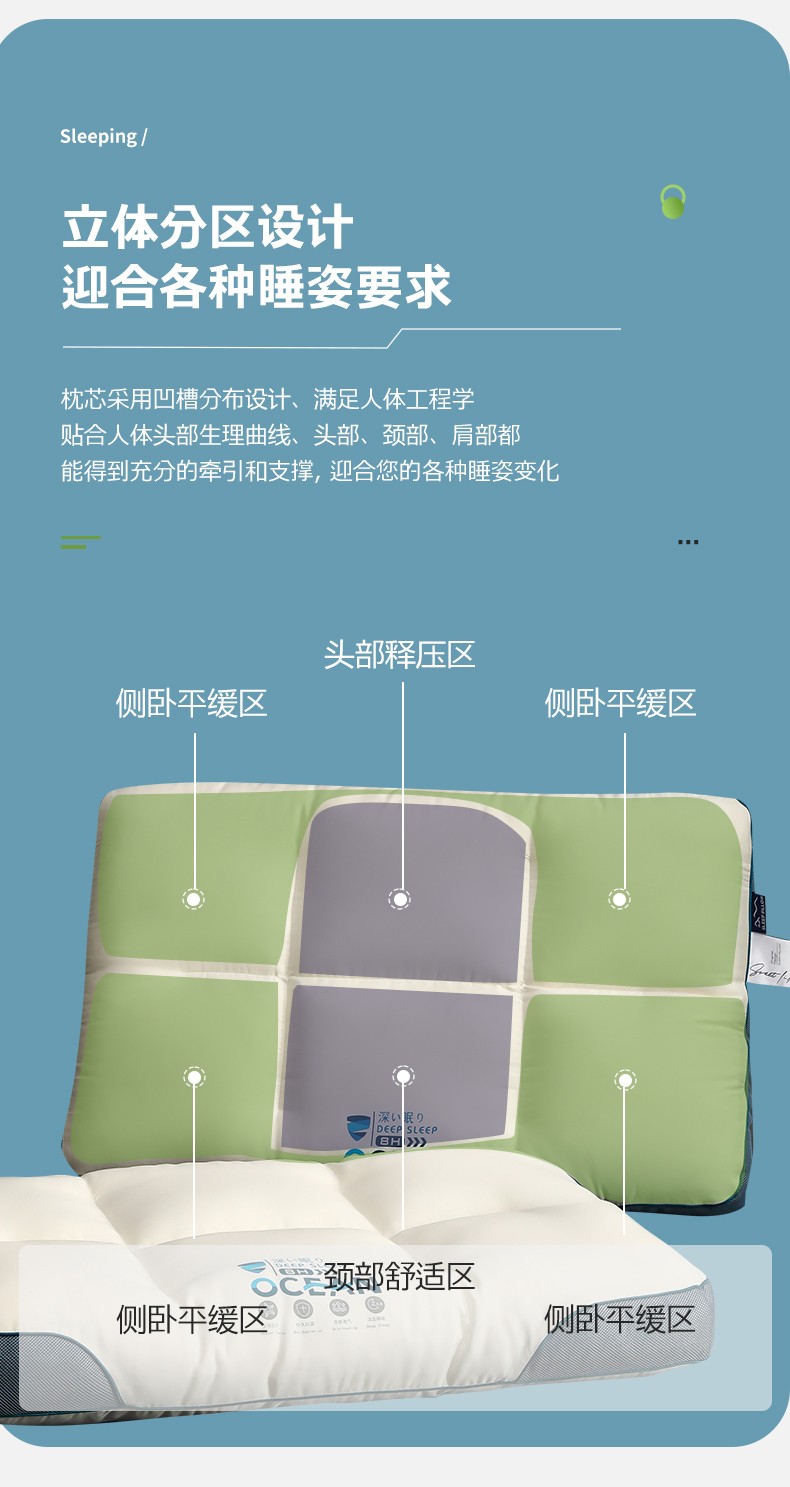 (总)2023新款 呵护护颈枕芯 牵引分区枕芯中枕平枕学生枕