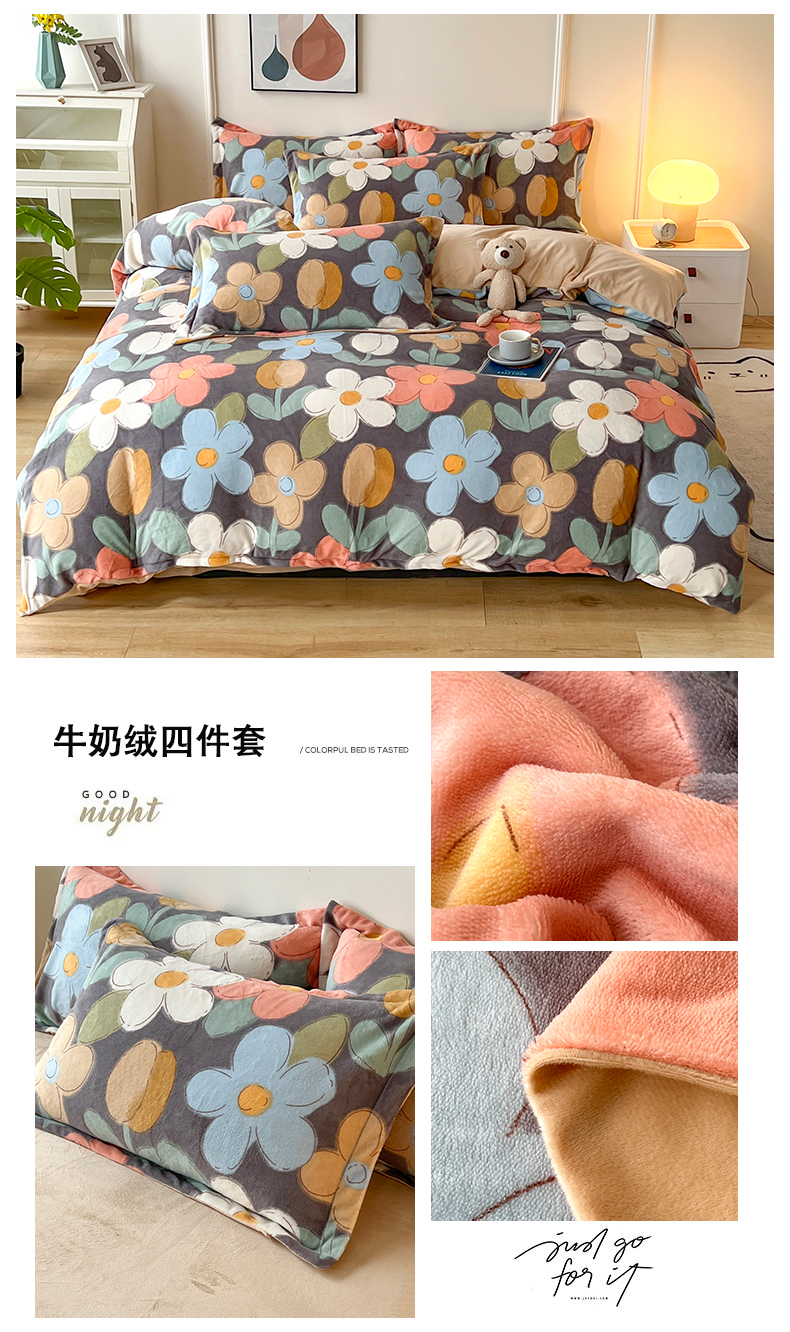 商品名称:富之航家纺 2023新款牛奶绒印花四件套 绽放
