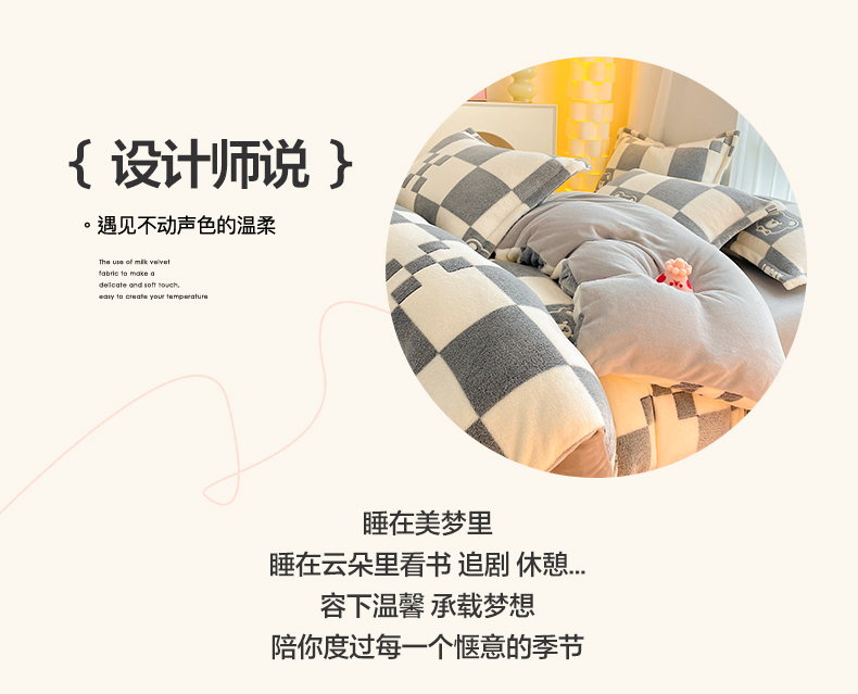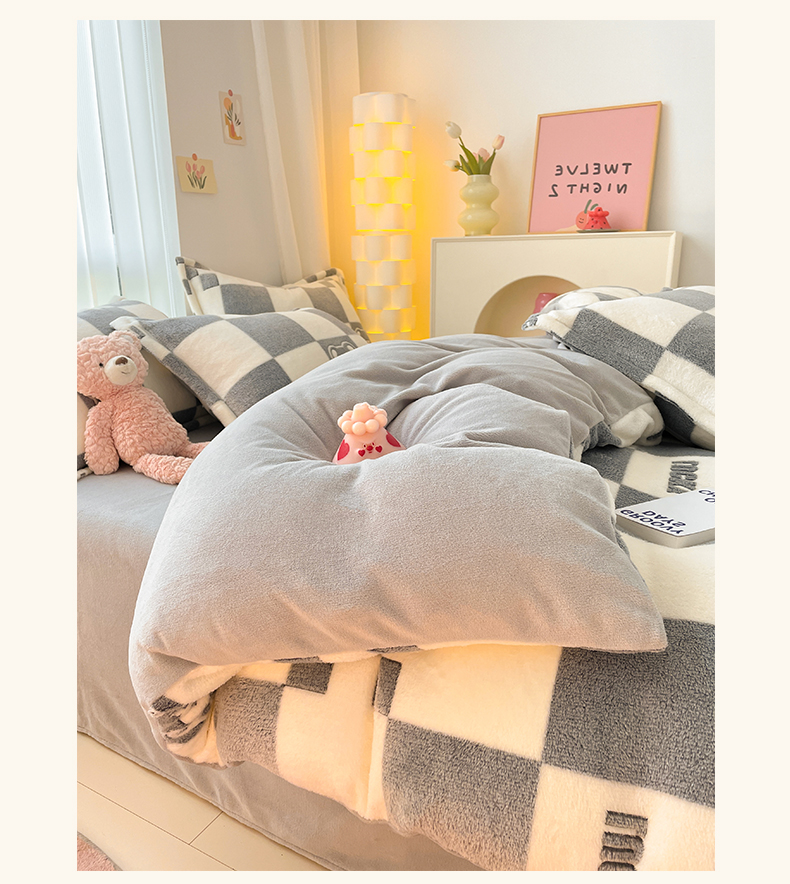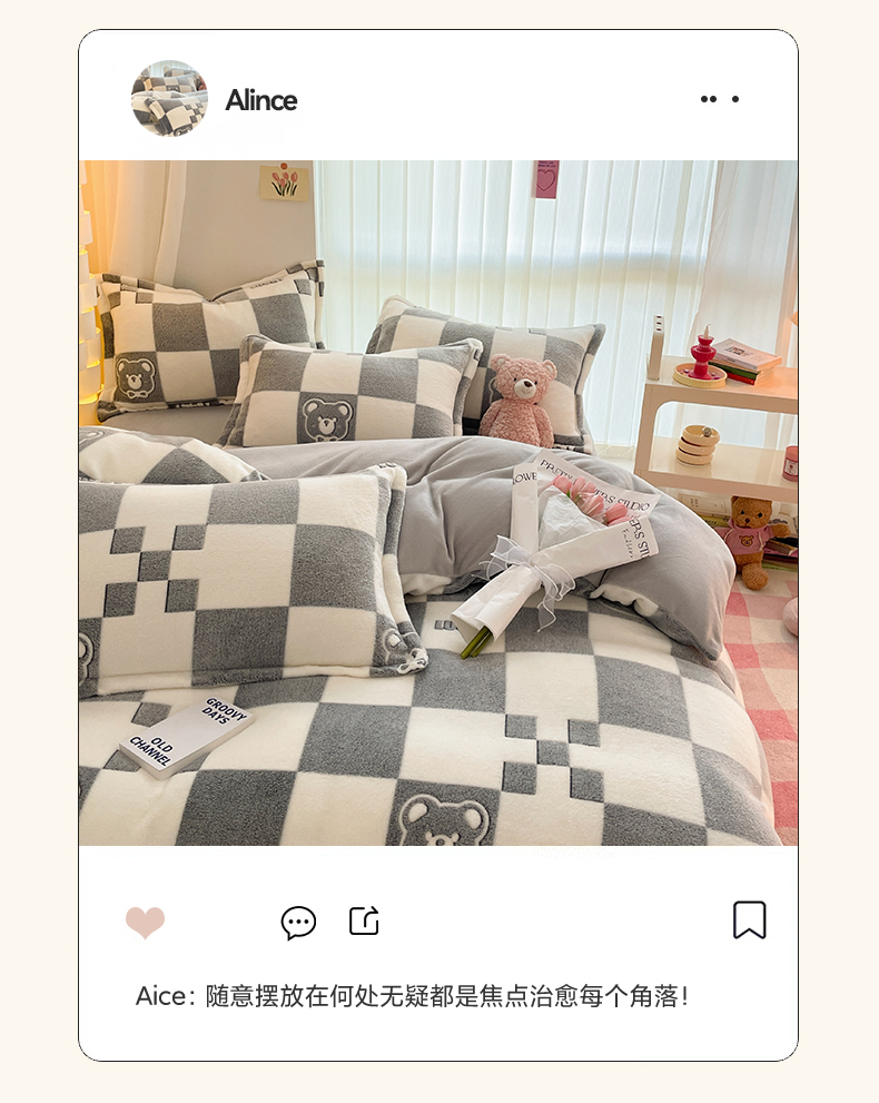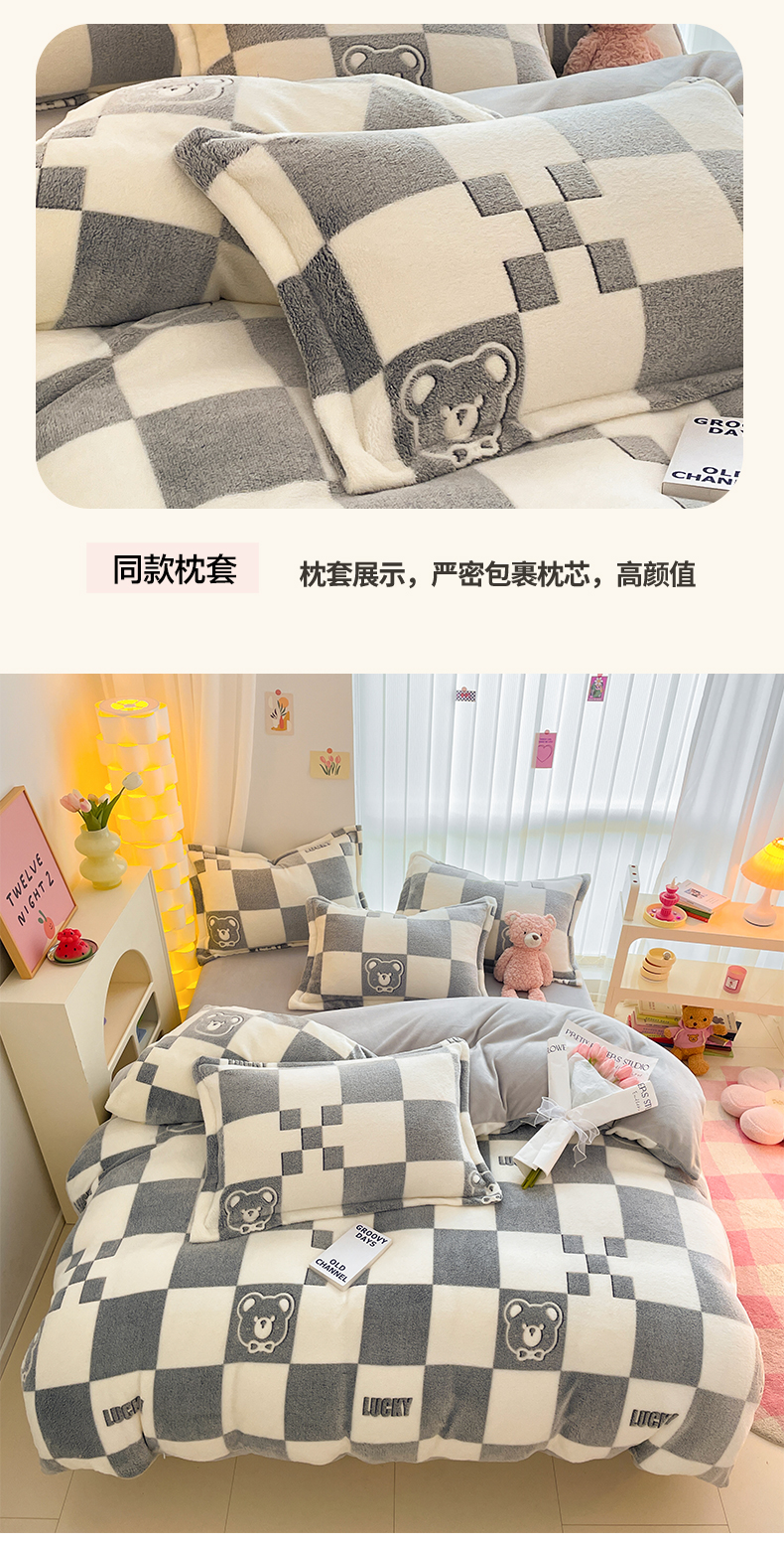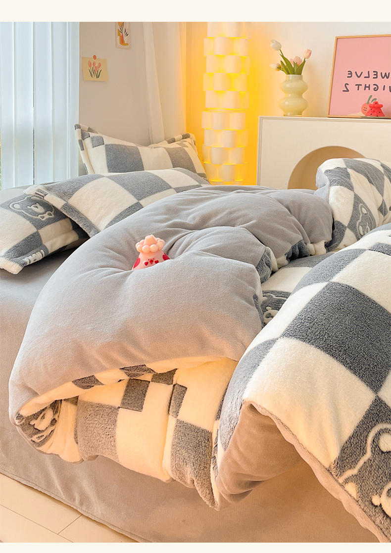 当前位置: 91家纺网 > 商品网购 > 床品套件 > 四件套 > 牛奶绒四件套 > 同田家纺 2024秋冬新品雪花绒牛奶绒印花四件套 棋盘熊