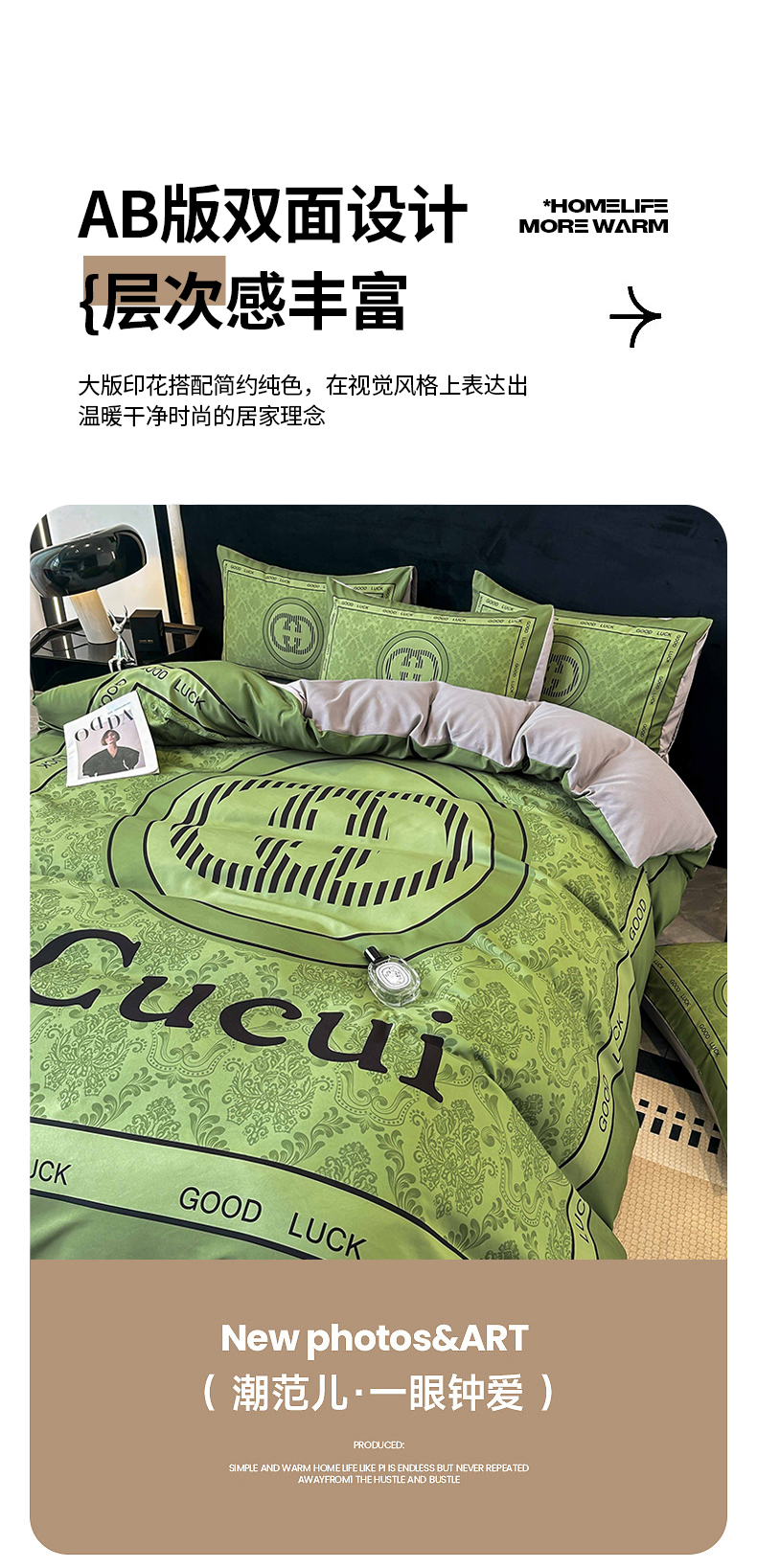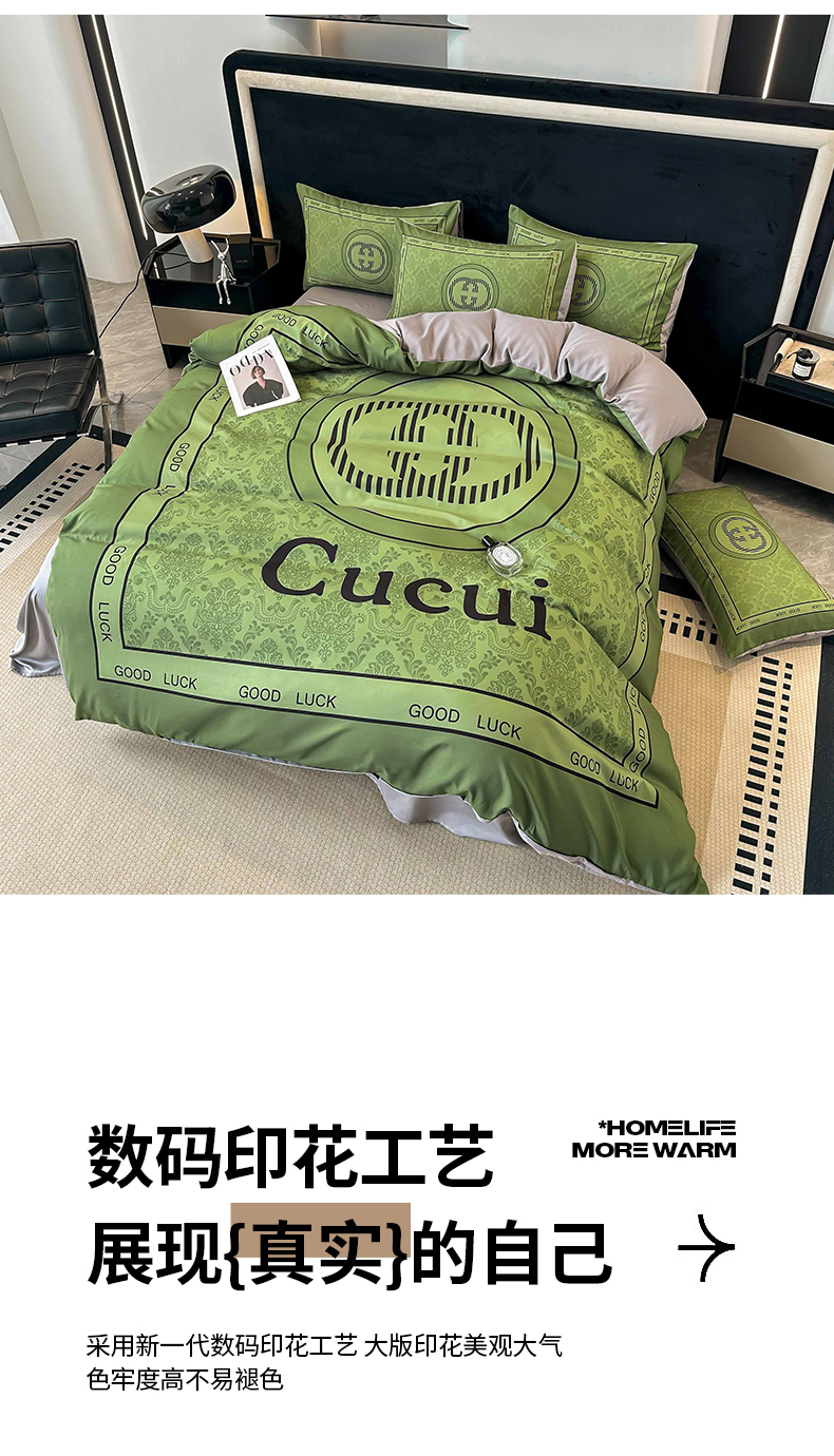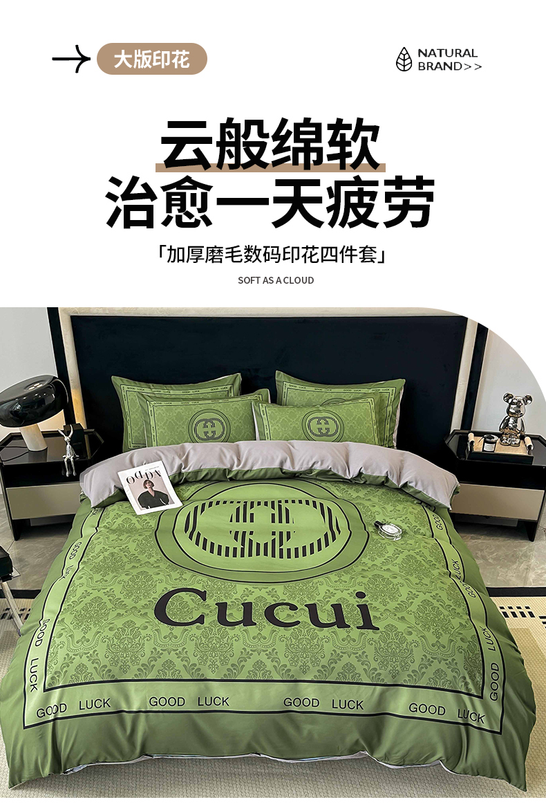 当前位置: 91家纺网 > 商品网购 > 床品套件 > 四件套 > 普通磨毛四件套 > 色鬼布艺 2023新款加厚双面磨毛数码大版印花四件套 绿意