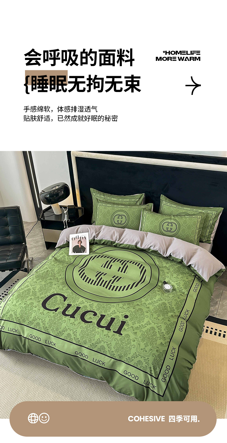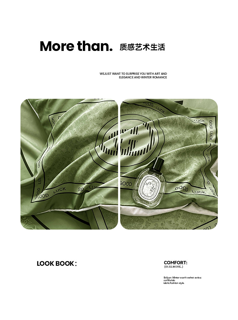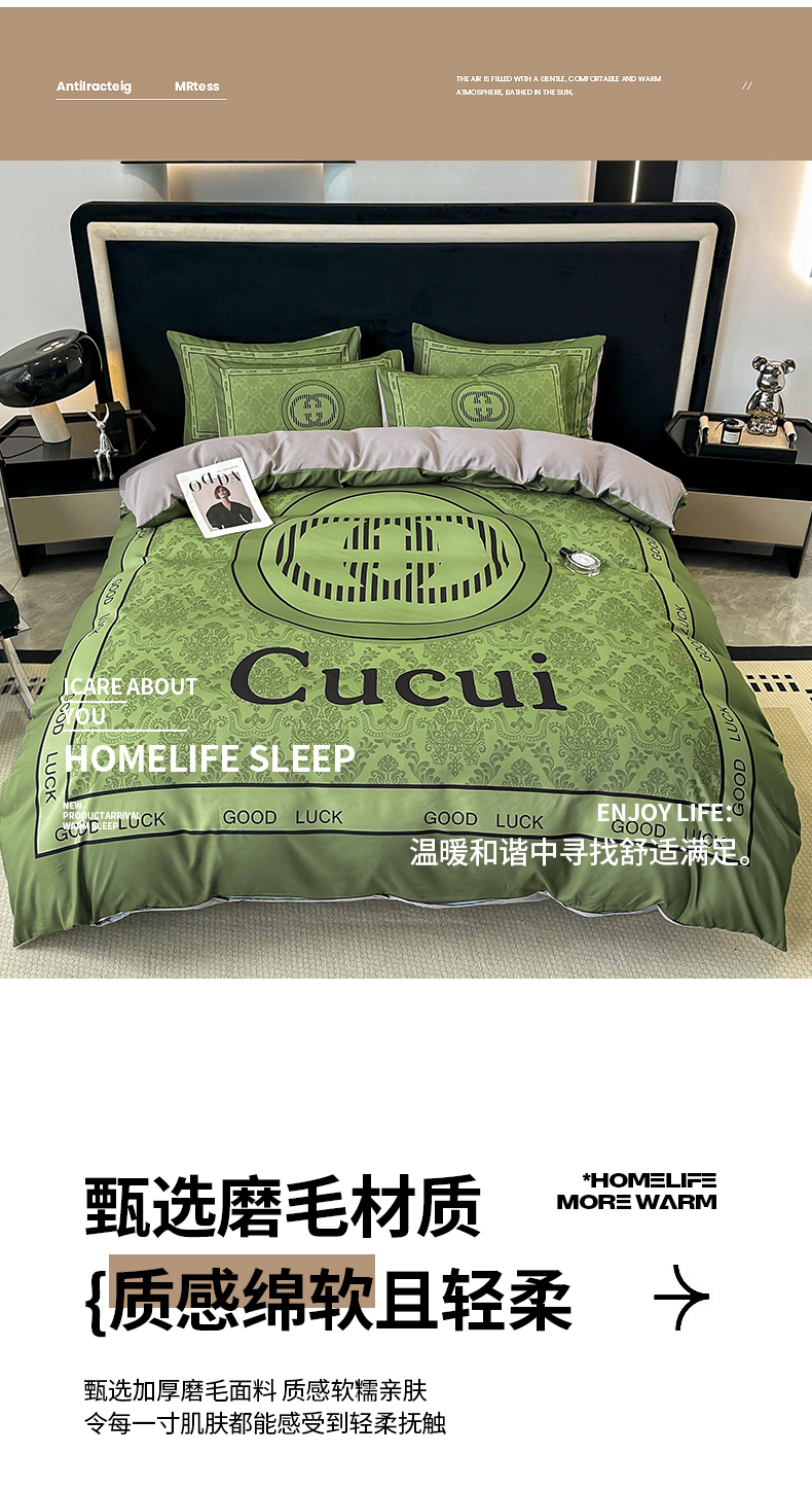 当前位置: 91家纺网 > 商品网购 > 床品套件 > 四件套 > 普通磨毛四件套 > 色鬼布艺 2023新款加厚双面磨毛数码大版印花四件套 绿意