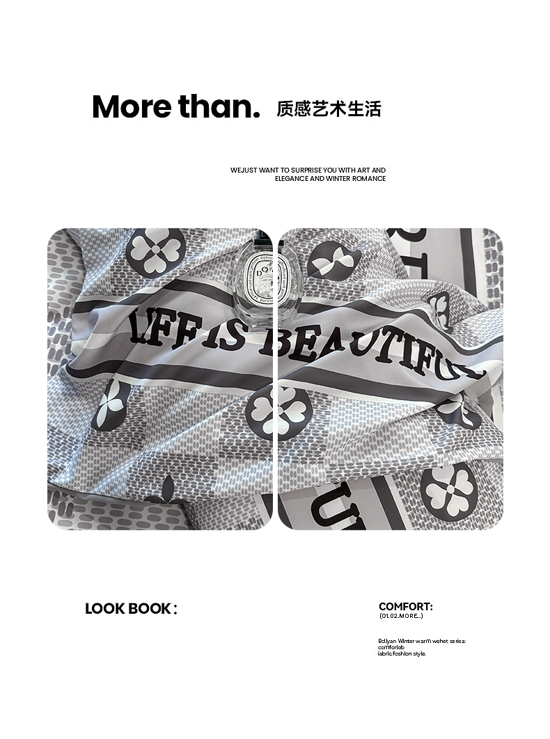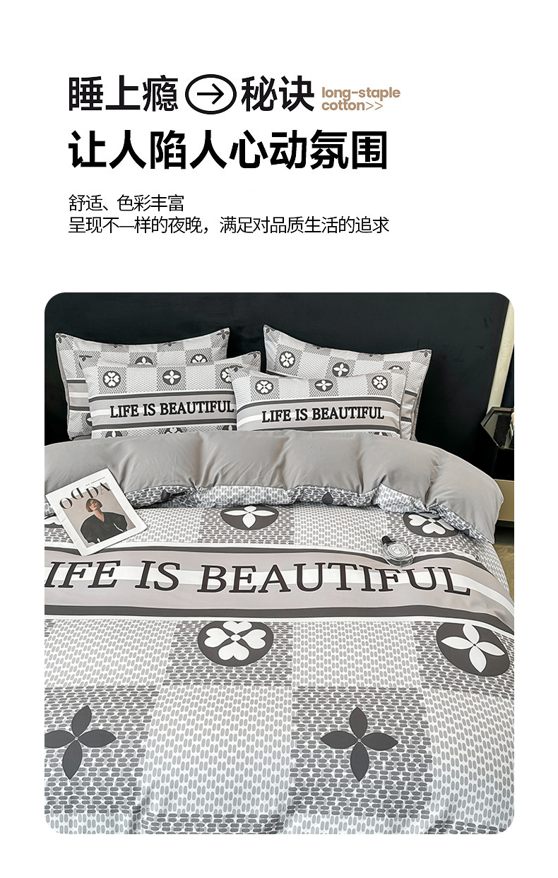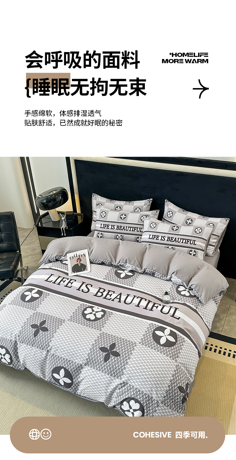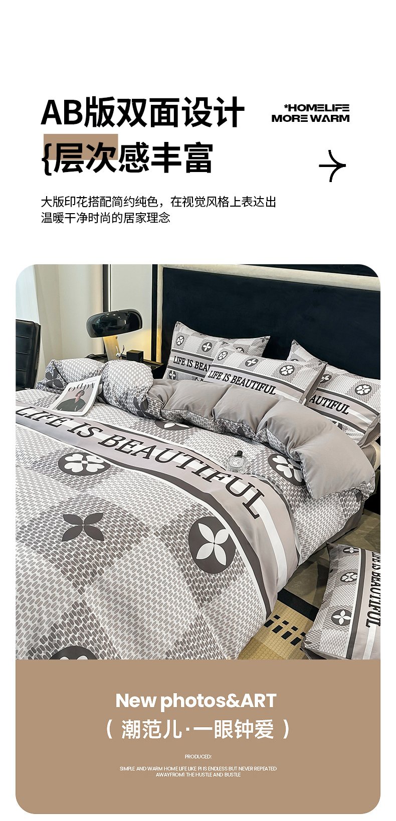 当前位置: 91家纺网 > 商品网购 > 床品套件 > 四件套 > 普通磨毛四件套 > 色鬼布艺 2023新款加厚双面磨毛数码大版印花四件套 四叶草-灰
