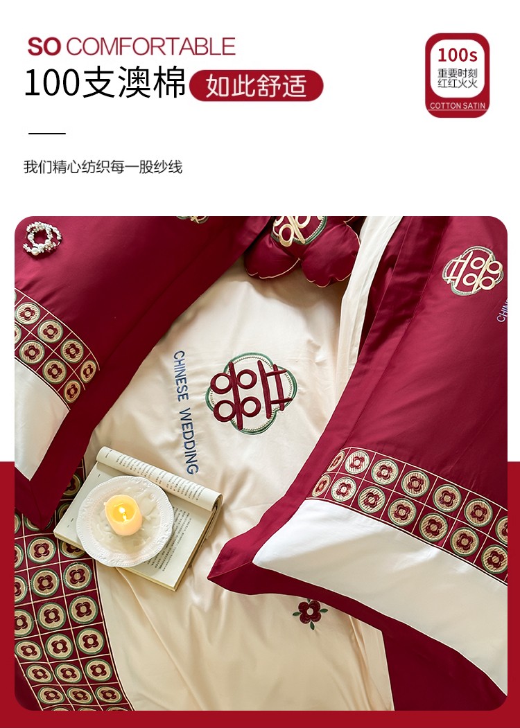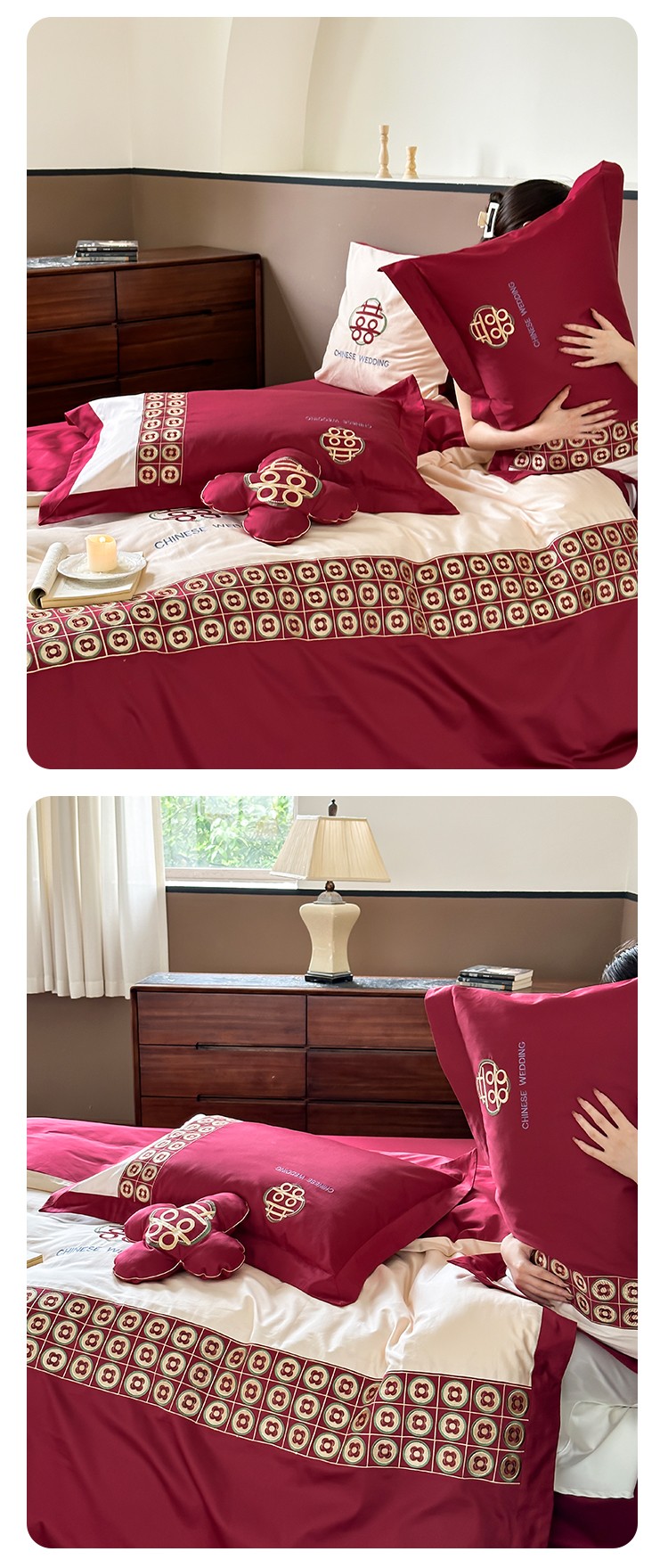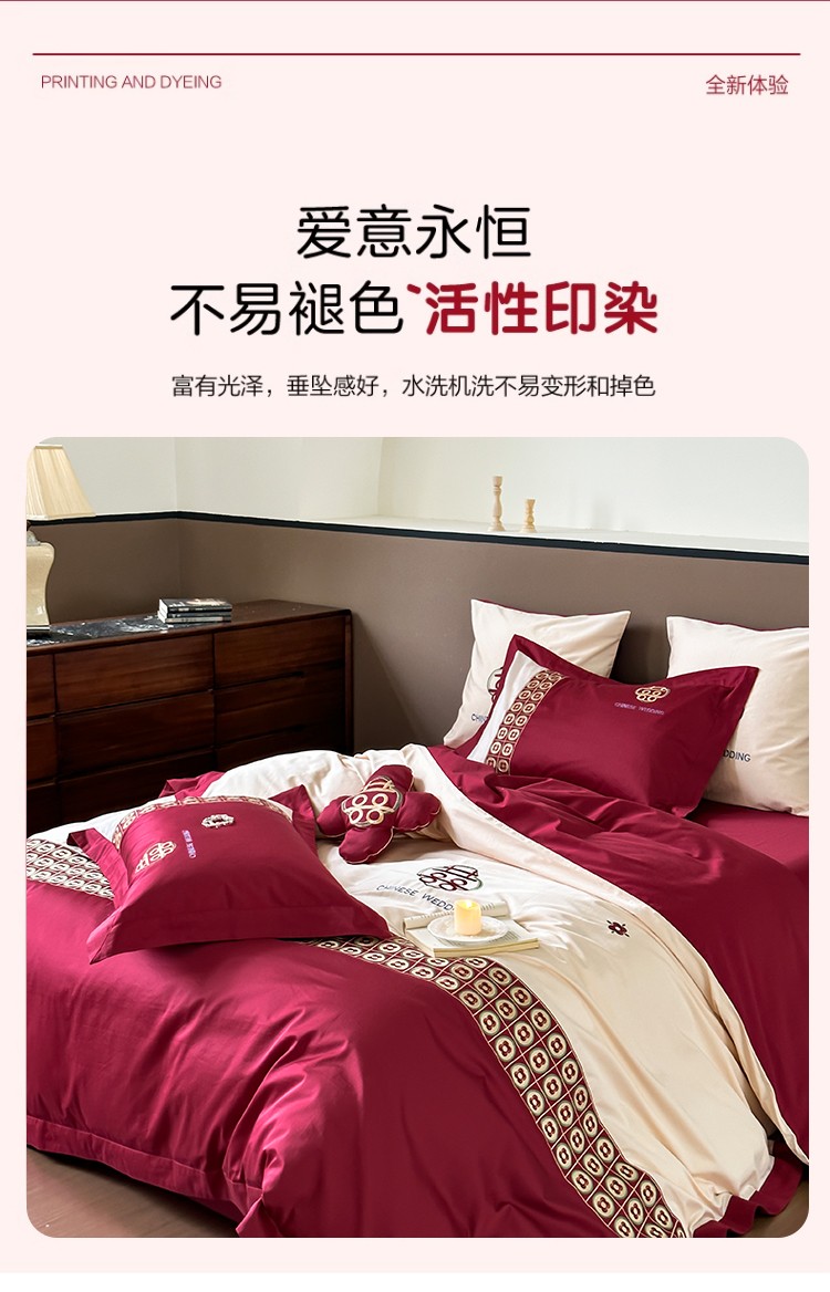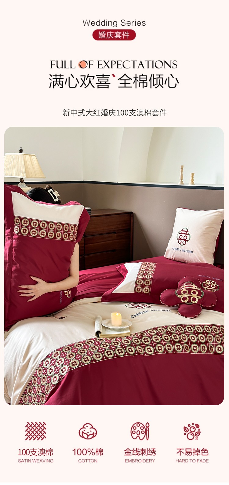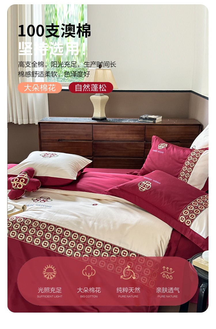 (总)西西家居2023新款新中式大红婚庆100支澳棉四件套-喜结连理