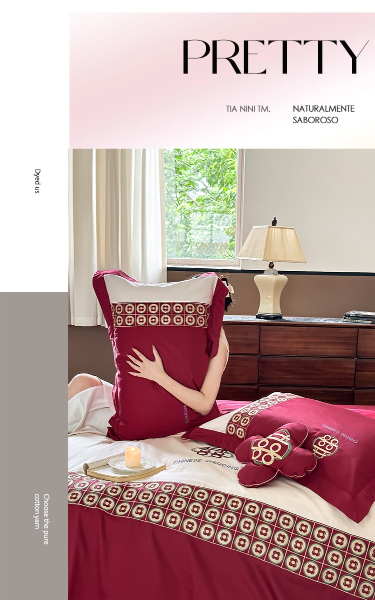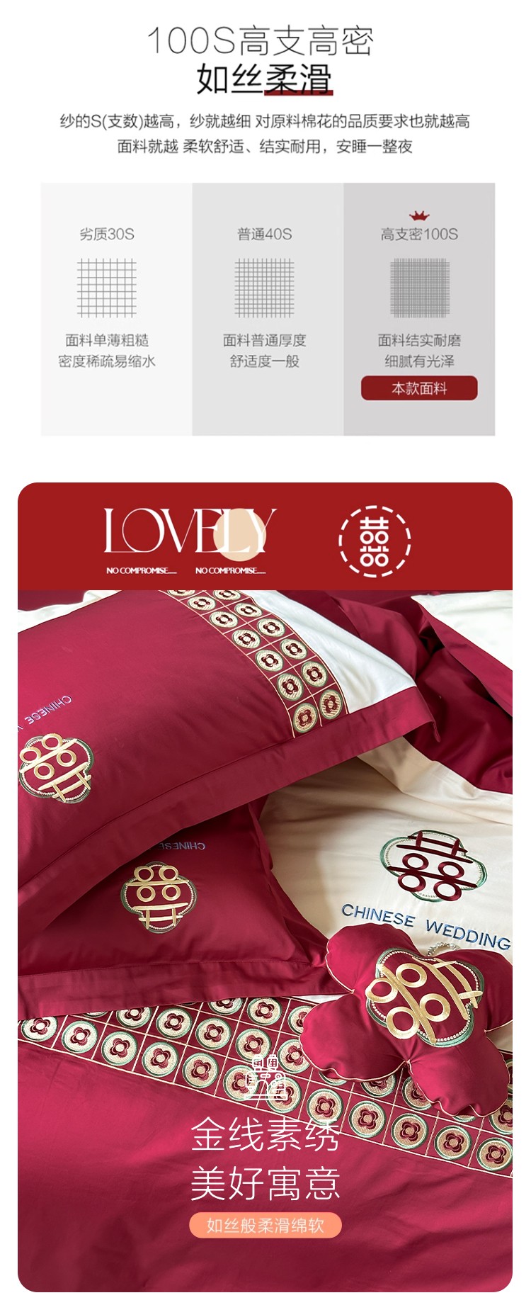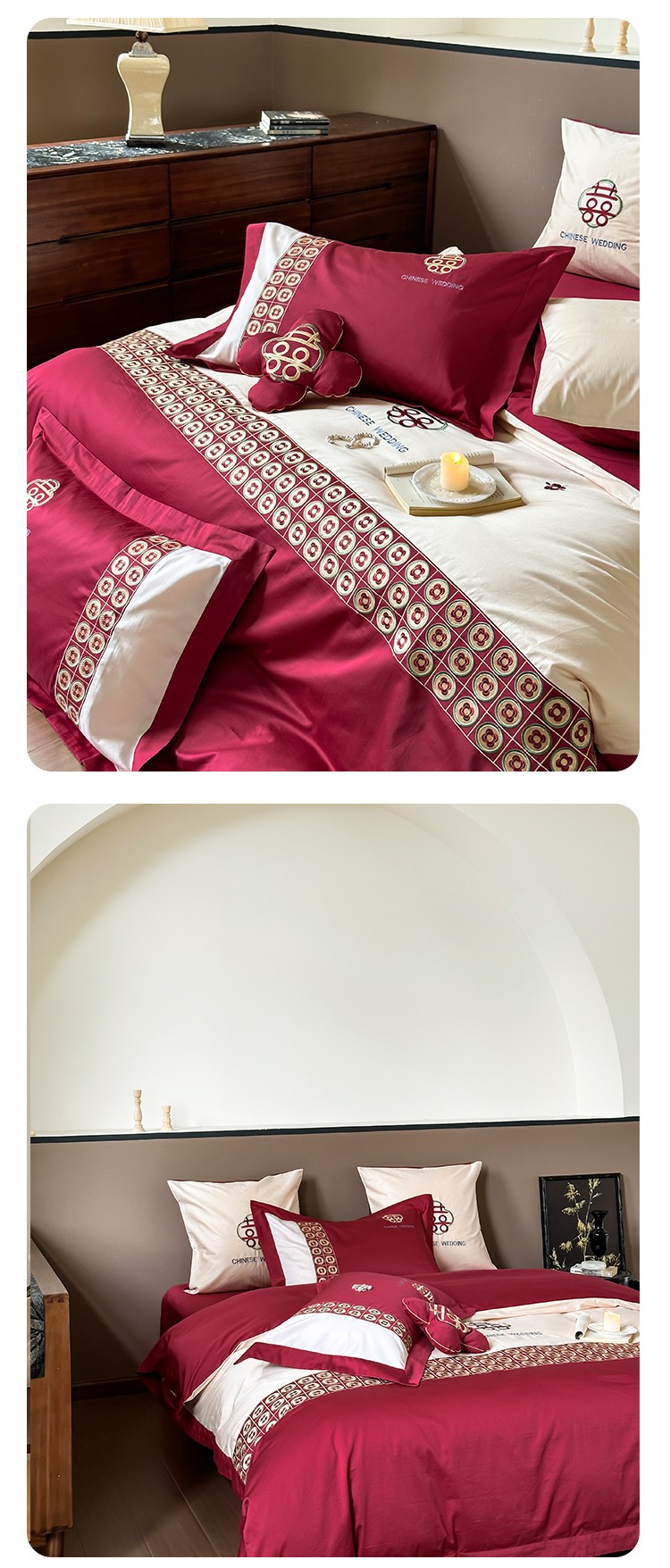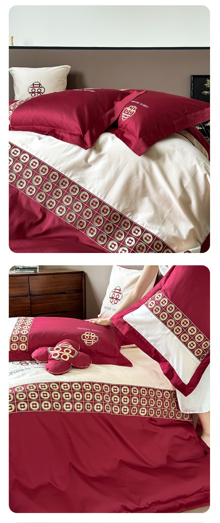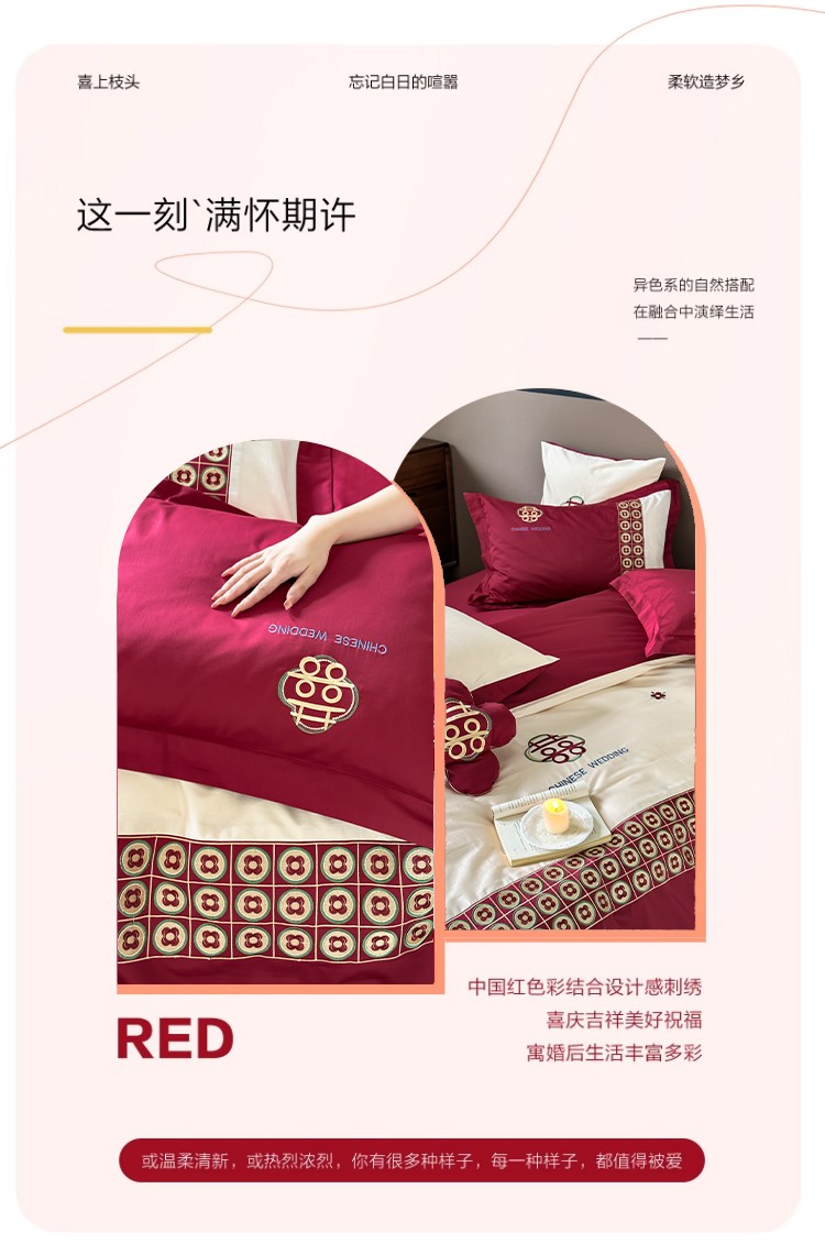 (总)西西家居2023新款新中式大红婚庆100支澳棉四件套-喜结连理