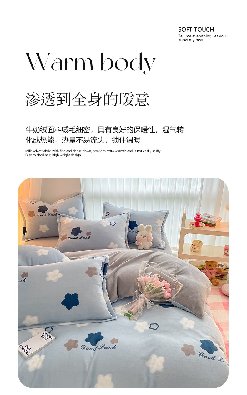 (总)莱米 2023新款直播爆款牛奶绒豆豆绒四件套高克重豆豆绒四件套,爱心小熊,缤纷花语,纯色—白+粉,纯色—白+卡其,纯色—深灰,纯色—樱花粉,花海,花样年华,浪漫小兔,绿野仙踪,萌萌兔,秘密花园,浅夏,兔兔乐园,银杏叶,字母小狗