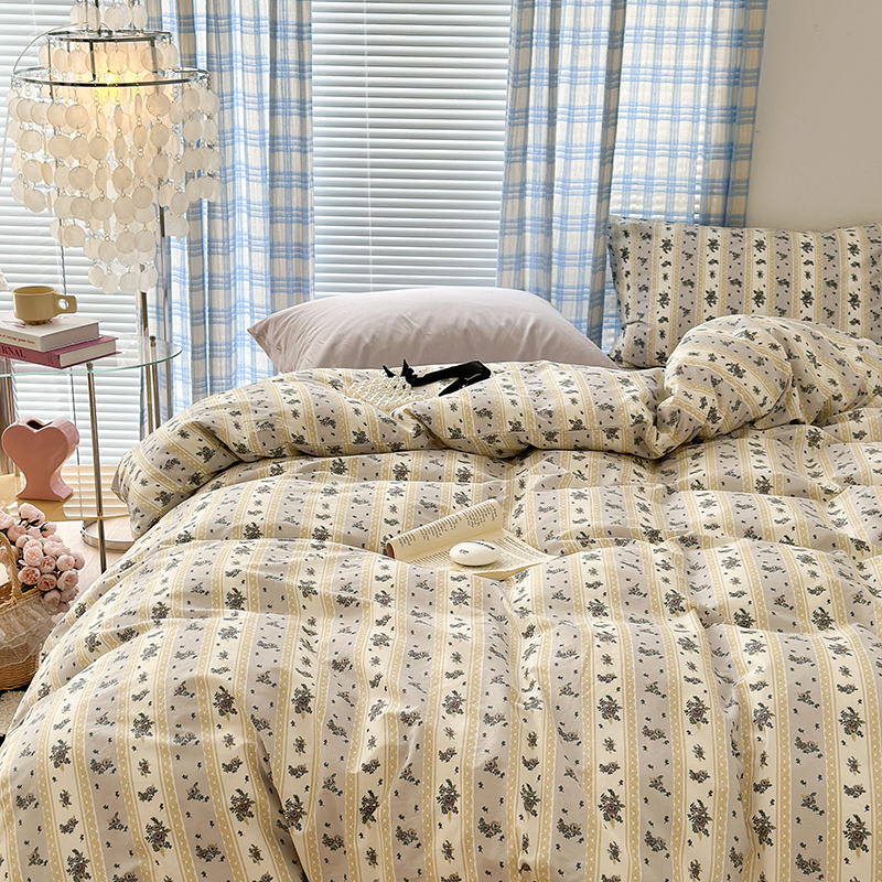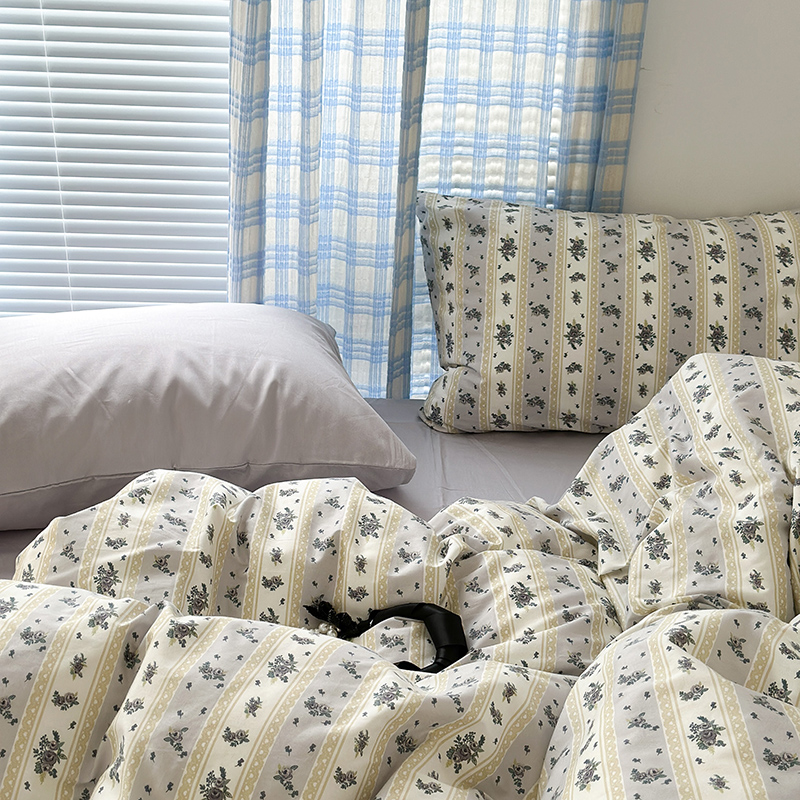 (总)昔可 2023新款全棉ins格子混搭系列四件套,ins简约绿格,粉蓝格,开心果格,学院格纹,粉绿格,海盐兰格,黄绿格,夏日蓝条,芝士黄条,紫芋泥芝士格