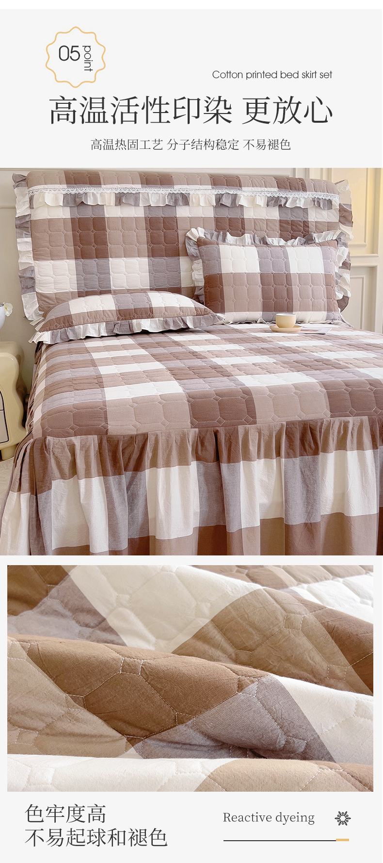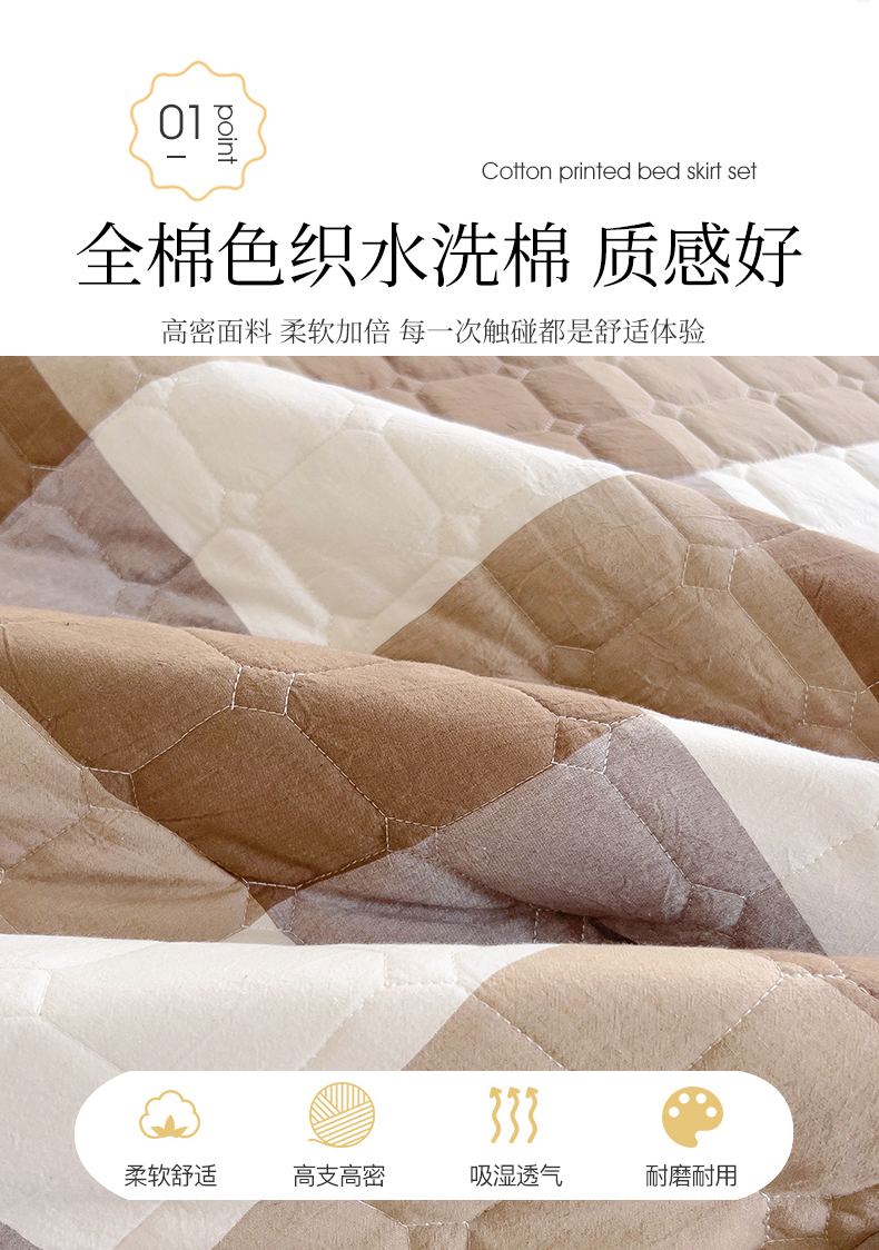 (总)十个点家纺 2025新款加厚磨毛木棉床裙三件套-格小格系列,格小格-粉,格小格-金驼,格小格-咖,格小格-兰,格小格-绿,格小格-玉