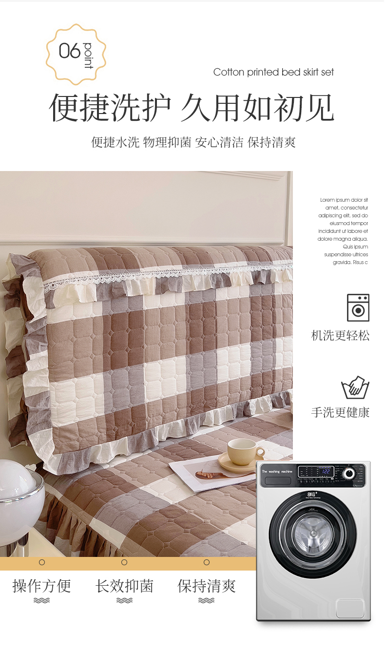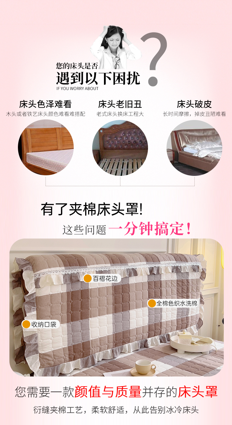 (总)十个点家纺 2025新款千鸟格磨毛绗缝夹棉纯色花边床头罩,经典白色,经典兰色,经典浅灰,经典浅驼,经典深灰,经典玉粉