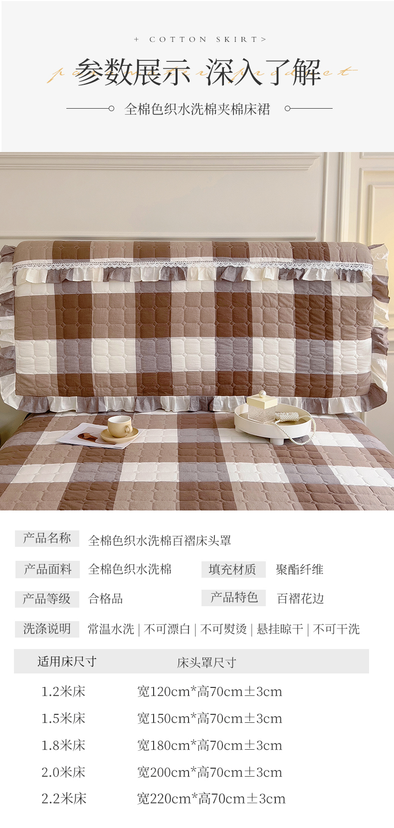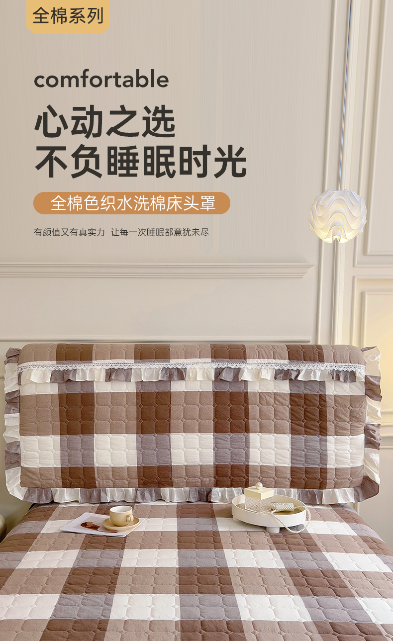 商品名称:十个点 2024新款色织水洗棉-韵格系列-床头罩 咖大格
