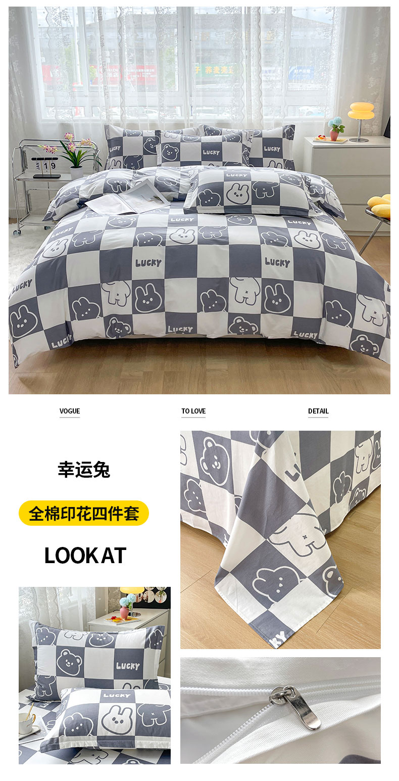 翎盈家纺 2023新款纯棉全棉喷气印花柔软舒适四件套 幸运兔