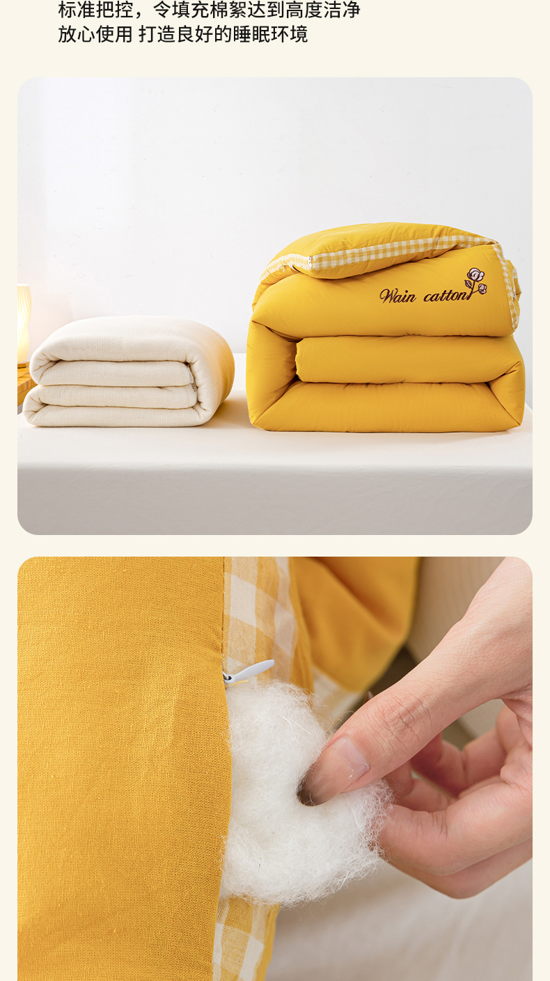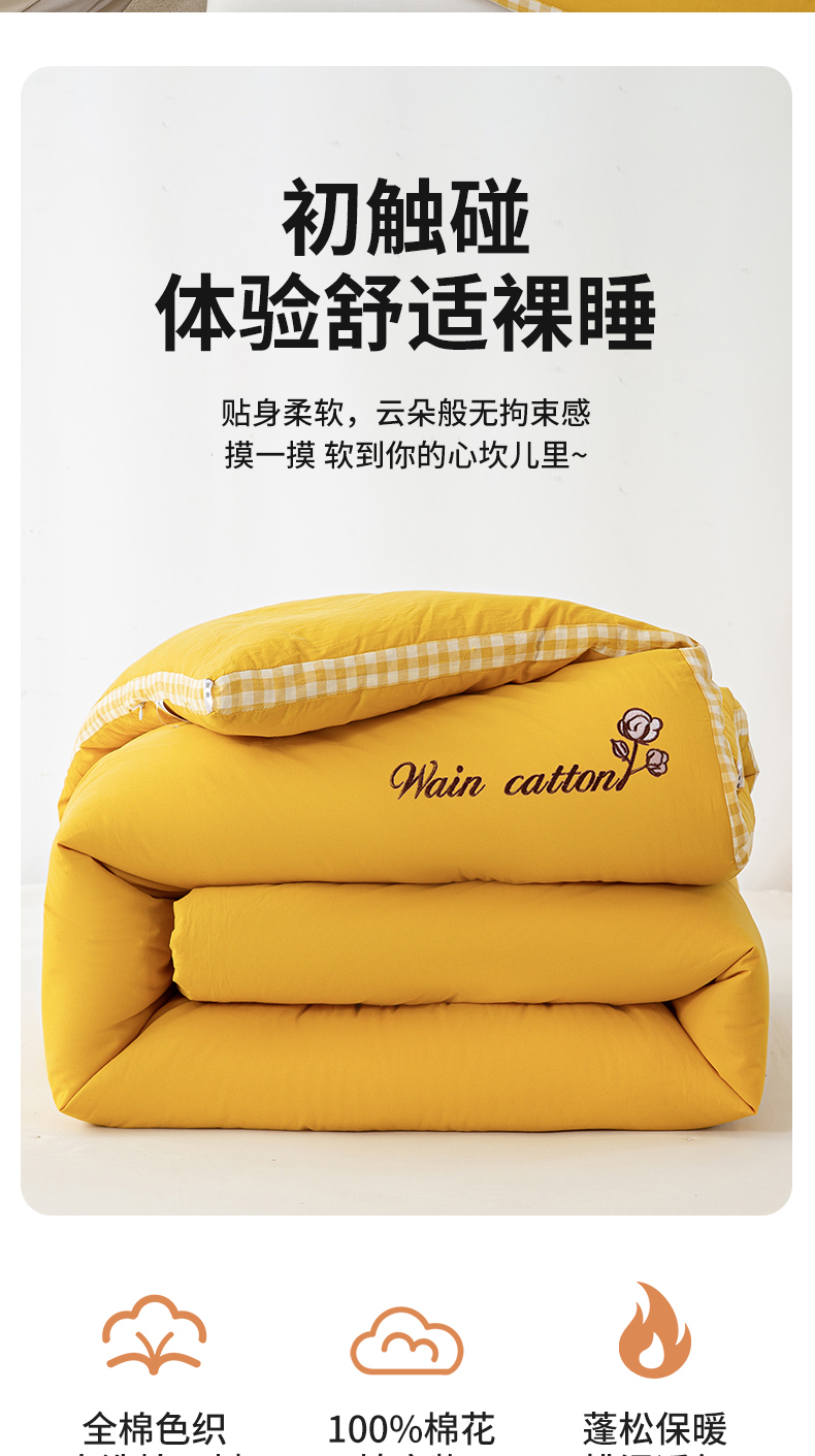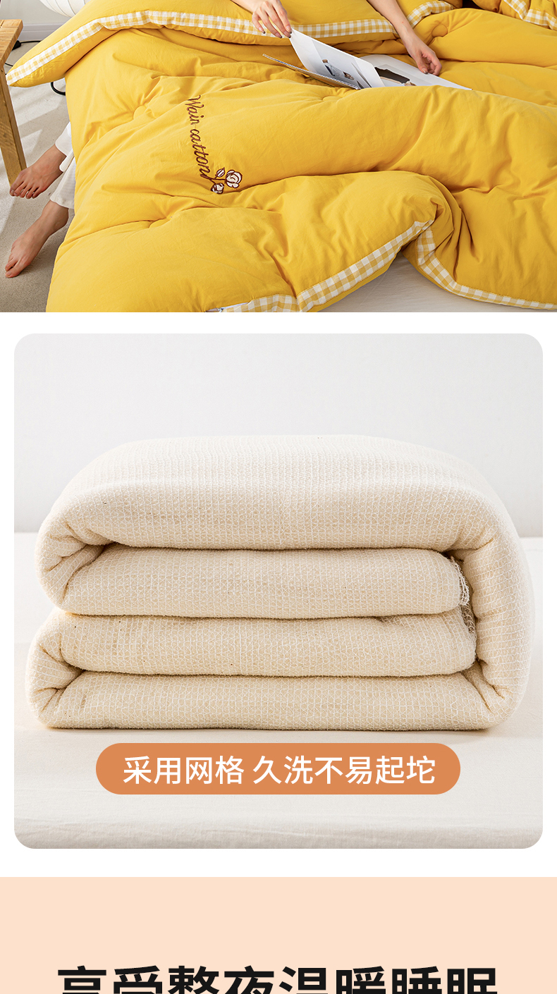 • 91家纺网 家纺一手货源 找家纺 鸣升家纺 新款棋盘格全棉色织水洗棉棉花被冬被被子被芯 棋盘格--黄色