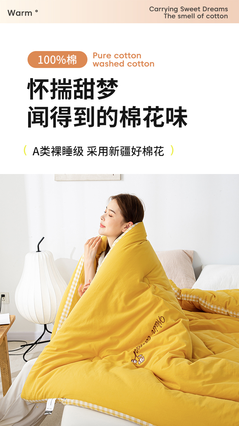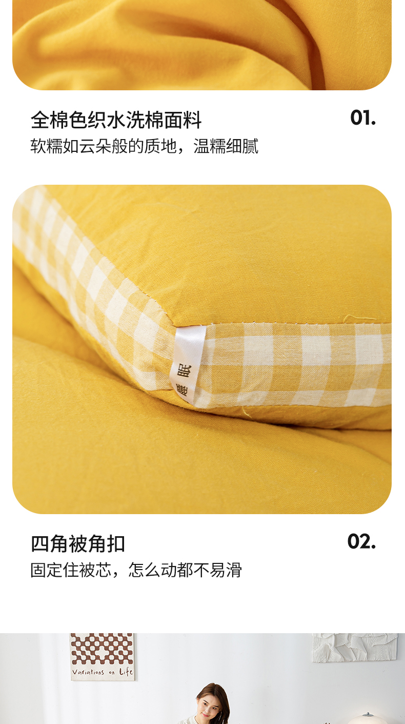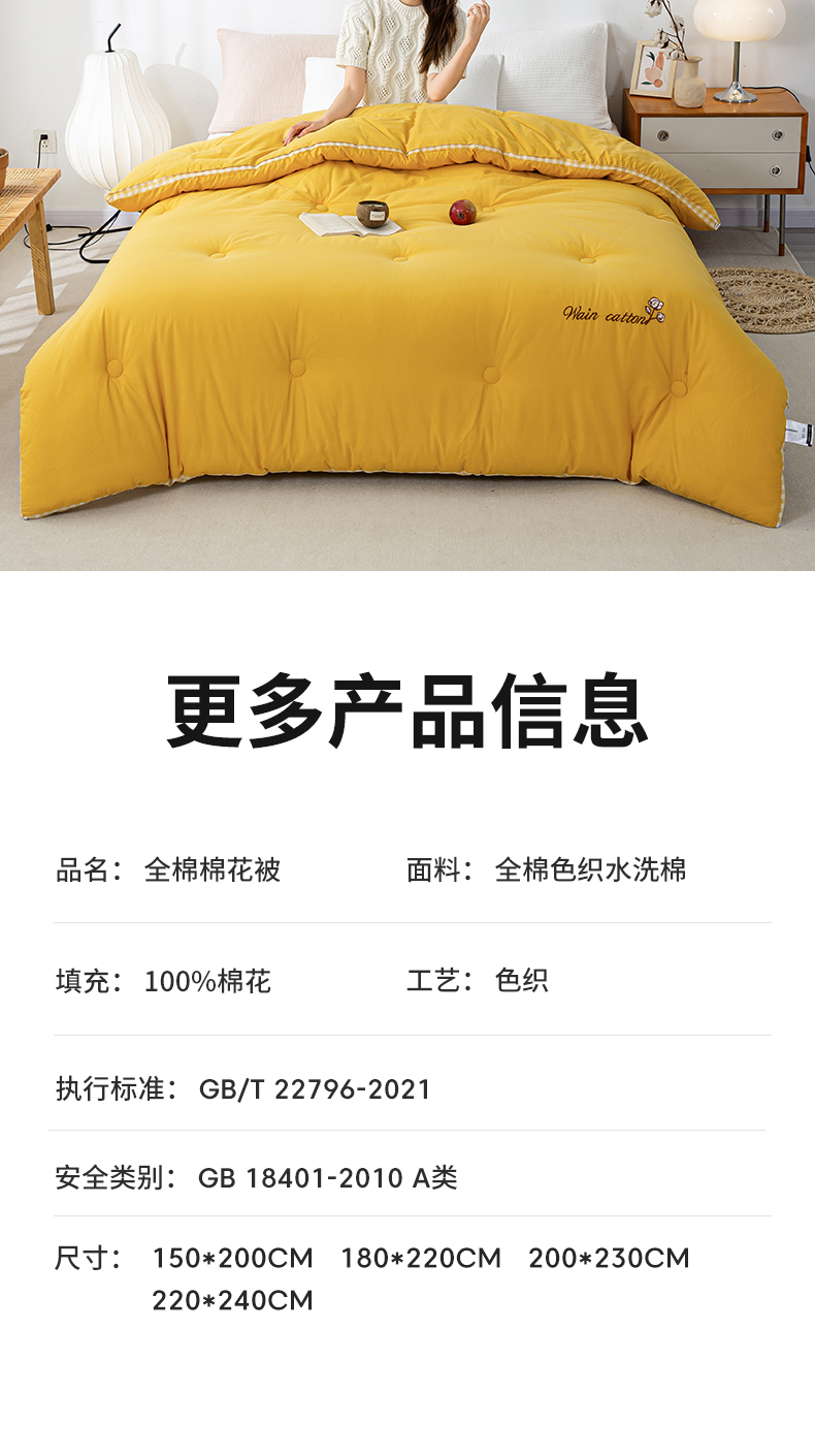 • 91家纺网 家纺一手货源 找家纺 鸣升家纺 新款棋盘格全棉色织水洗棉棉花被冬被被子被芯 棋盘格--黄色