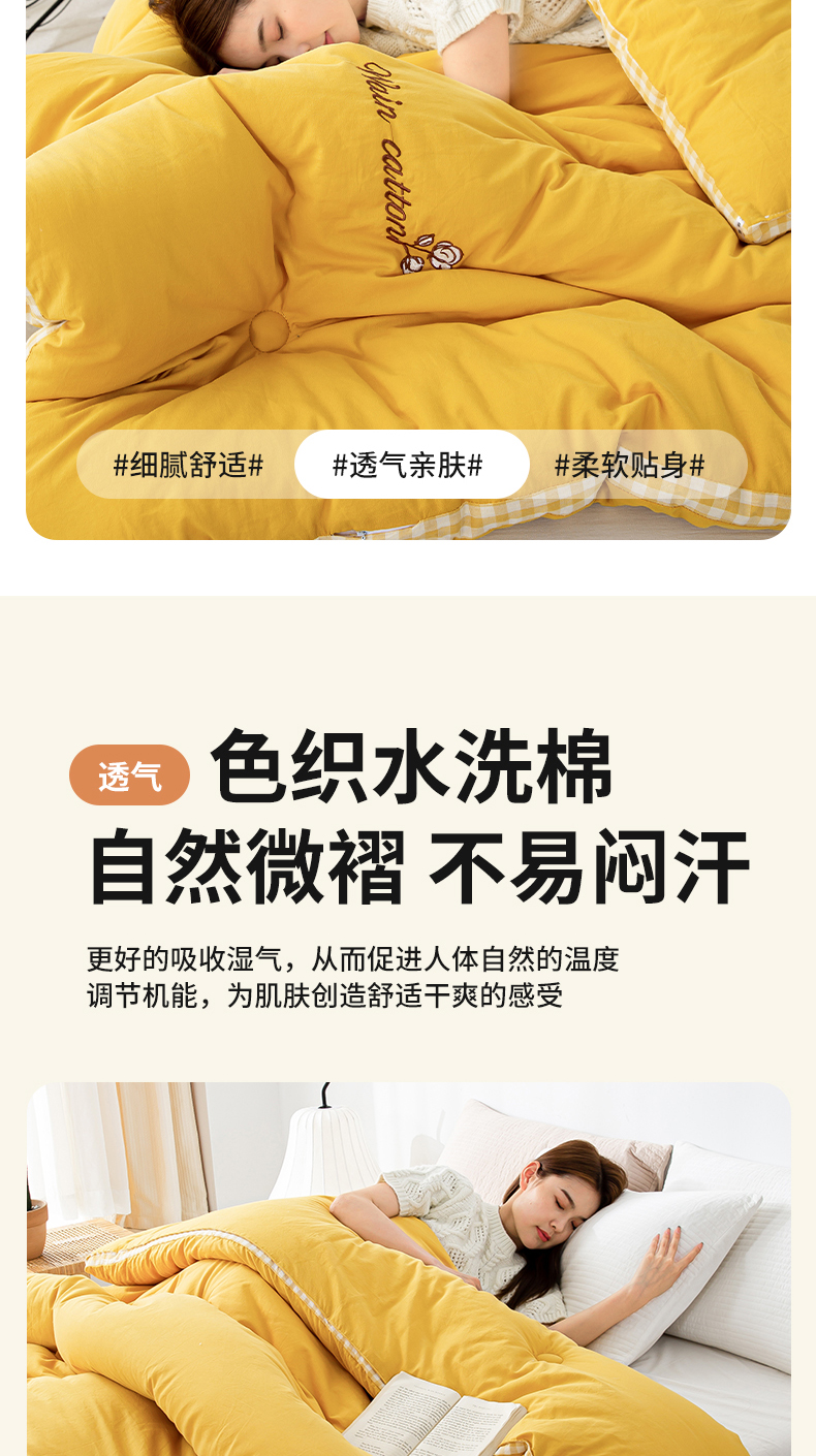 • 91家纺网 家纺一手货源 找家纺 (总)鸣升家纺 2026新款全棉色织水洗棉贝壳边棉花空调被夏凉被夏被四件套,果绿,姜黄,莎粉,天空蓝,月光灰,组合图仅供参考不可下单