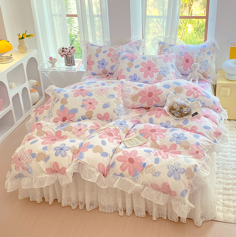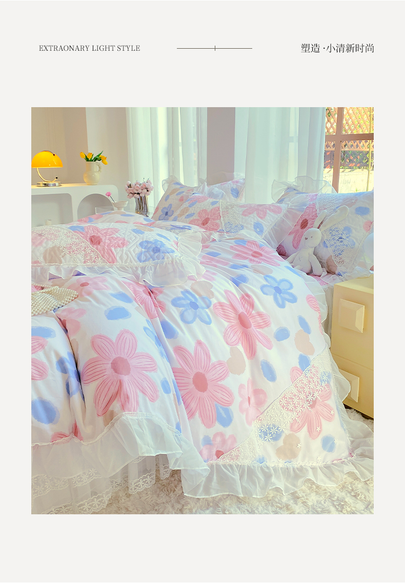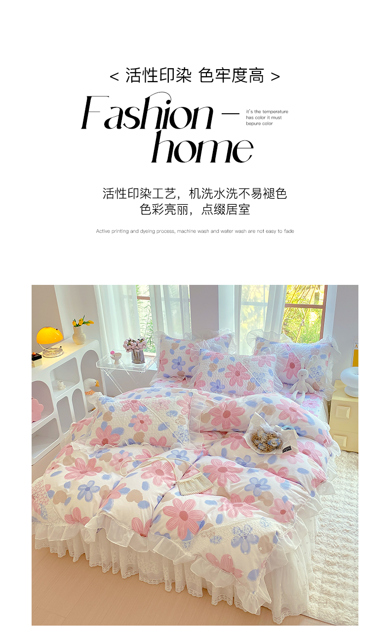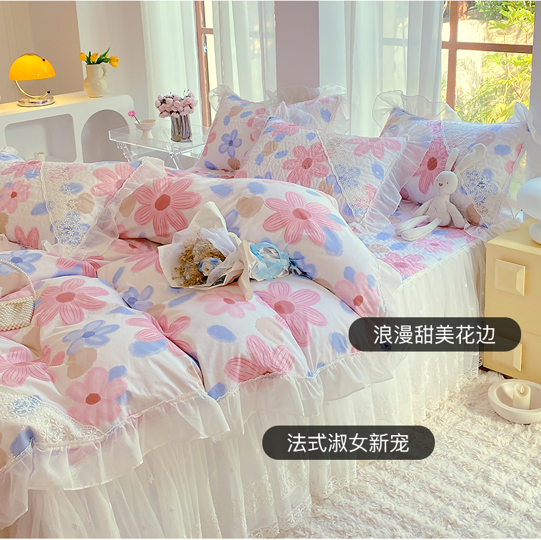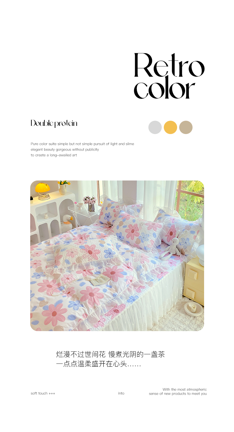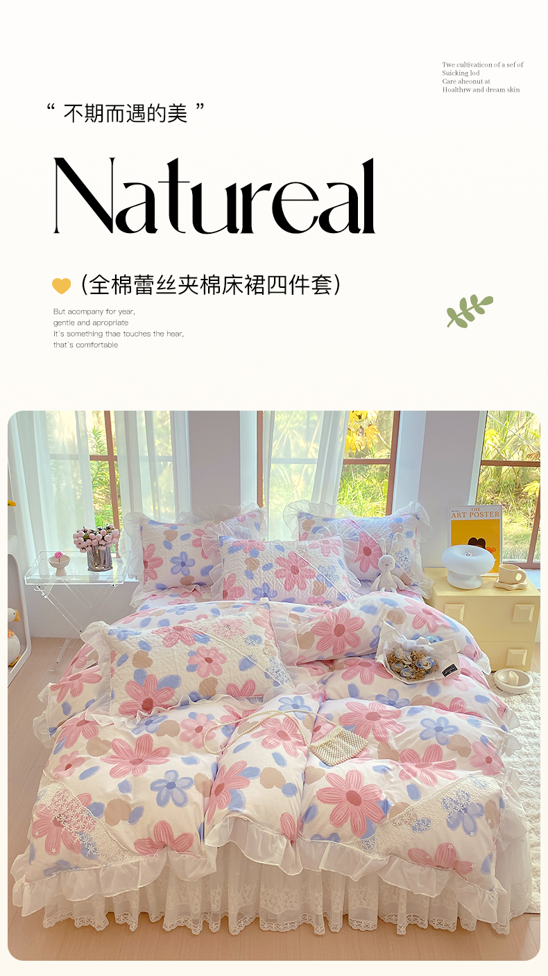 当前位置: 91家纺网 > 商品网购 > 床品套件 > 四件套 > 全棉普通四件套 > 罗艺轩家纺2024新款全棉蕾丝夹棉床裙忆江南系列-四件套 忆江南~梦境之旅