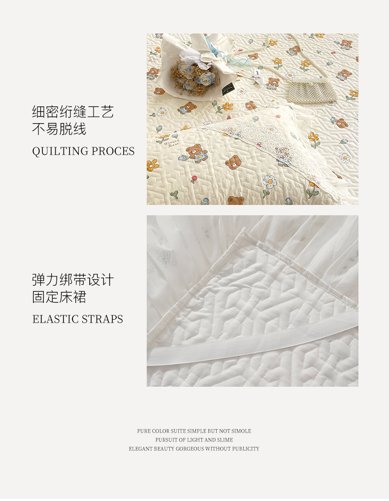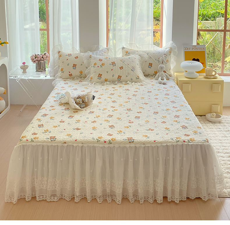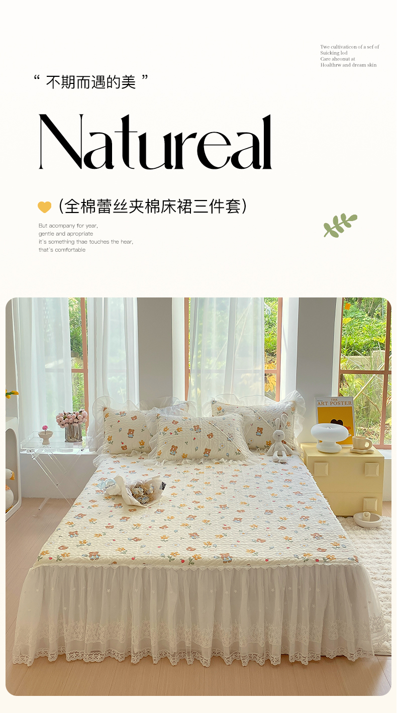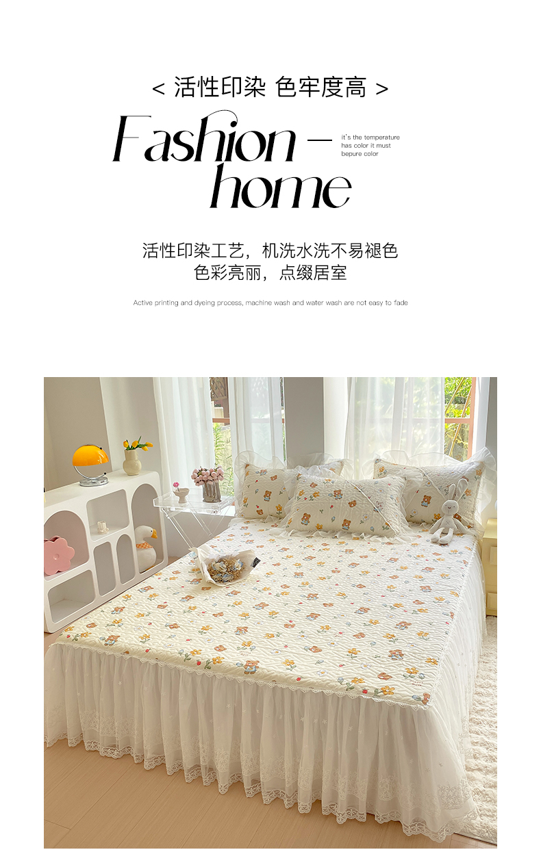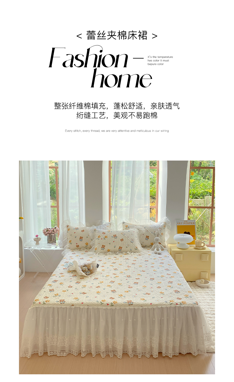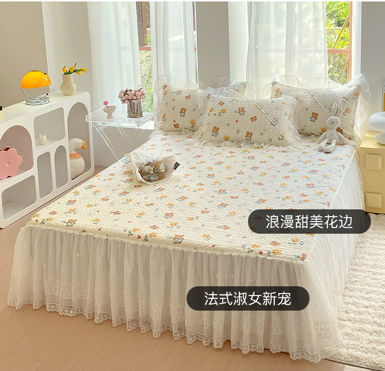 商品名称:(总)罗艺轩家纺2024新款全棉蕾丝夹棉床裙忆江南系列-床裙三件套