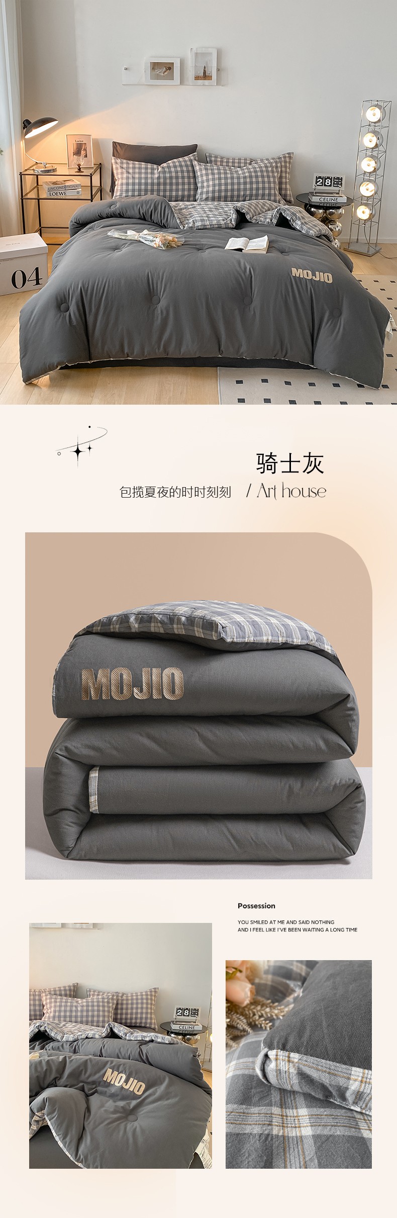 (总)卡巴伦家纺 2025新款全棉超细旦磨毛刺绣拼接四件套-旷野(会员:-20元 控价:358元),旷野-白,旷野-灰,旷野-咖,旷野-紫