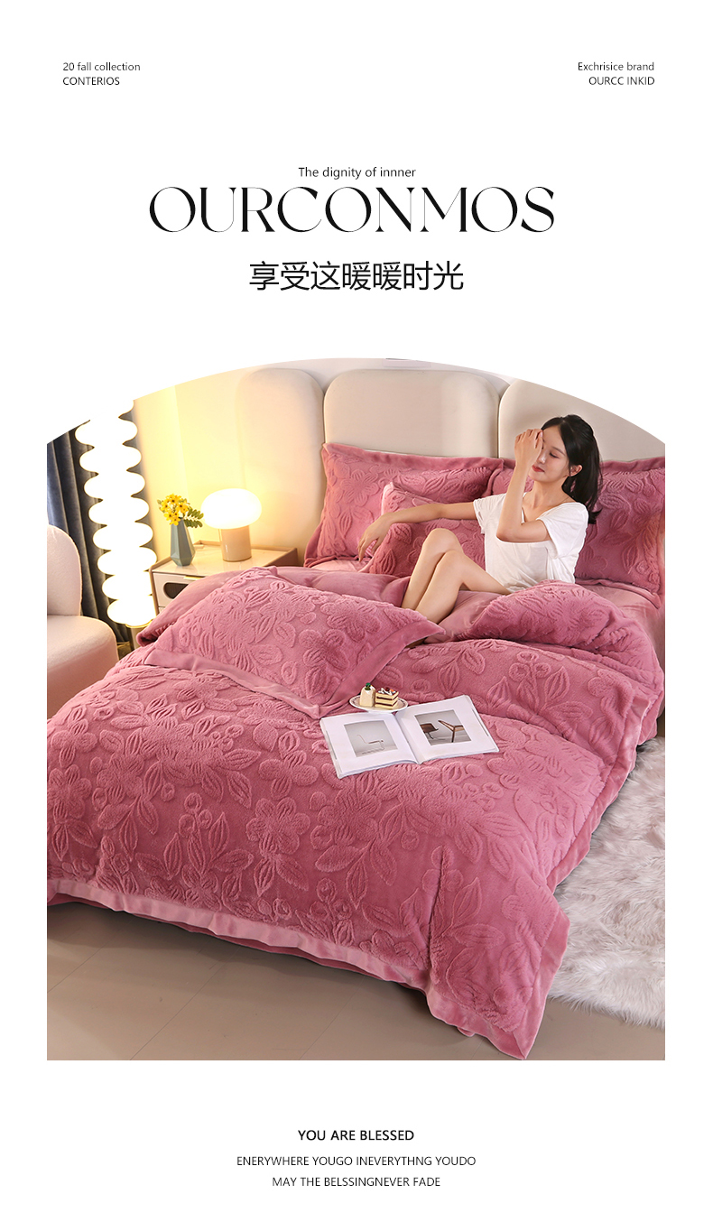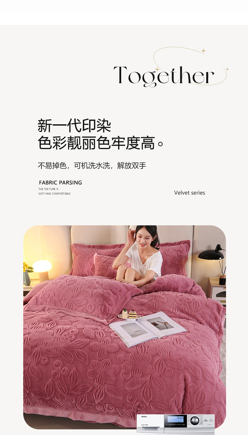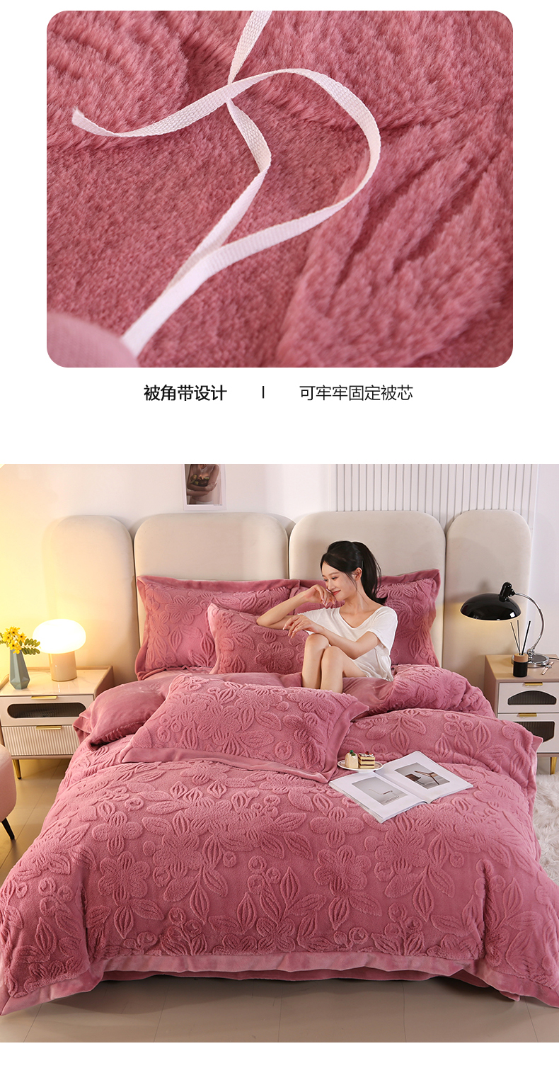 (总)代芙家纺 2025新款宝宝绒夹棉床盖款四件套,甜心-粉豆沙,甜心-海蓝,甜心-火山红,甜心-魔力紫,甜心-优雅灰