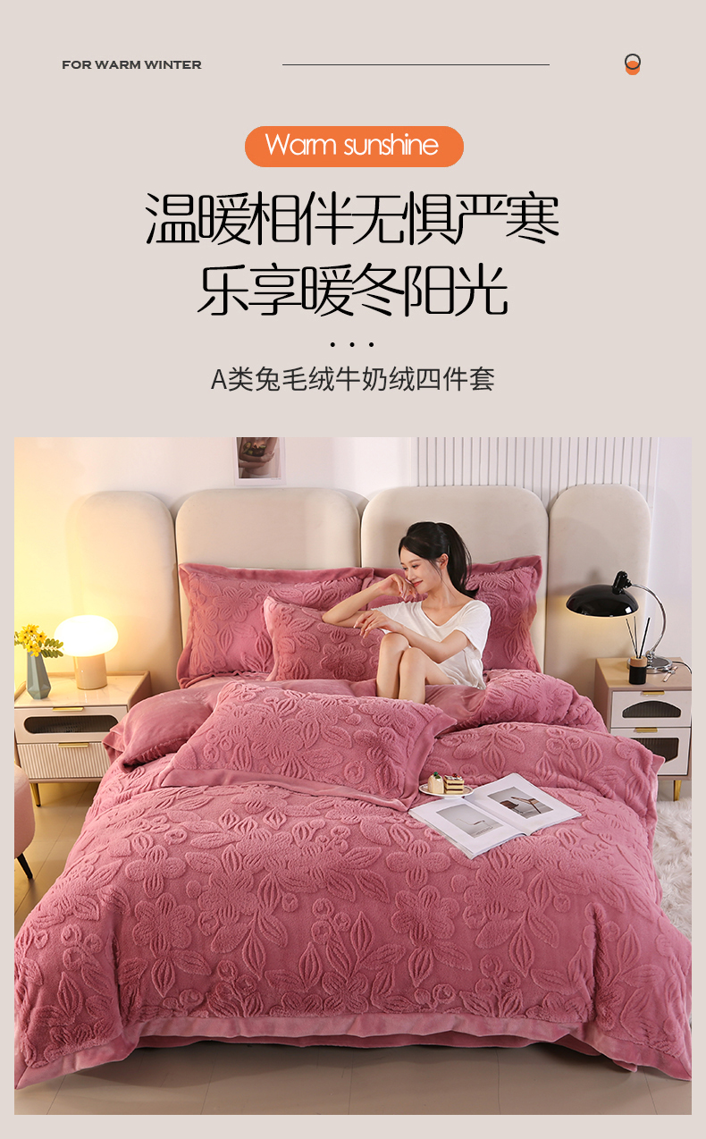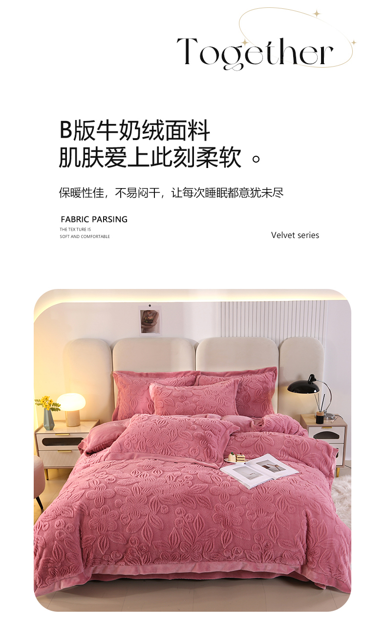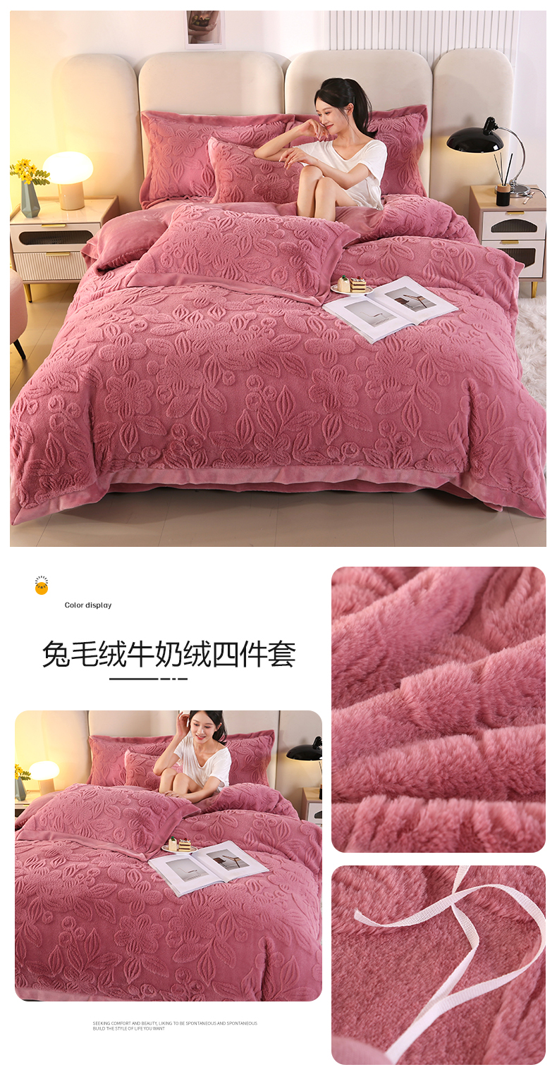(总)代芙家纺 2025新款宝宝绒夹棉床盖款四件套,甜心-粉豆沙,甜心-海蓝,甜心-火山红,甜心-魔力紫,甜心-优雅灰