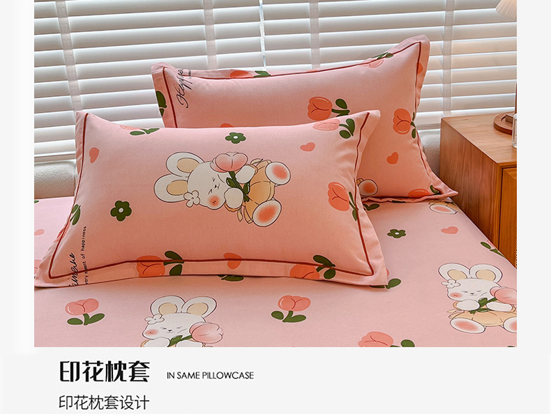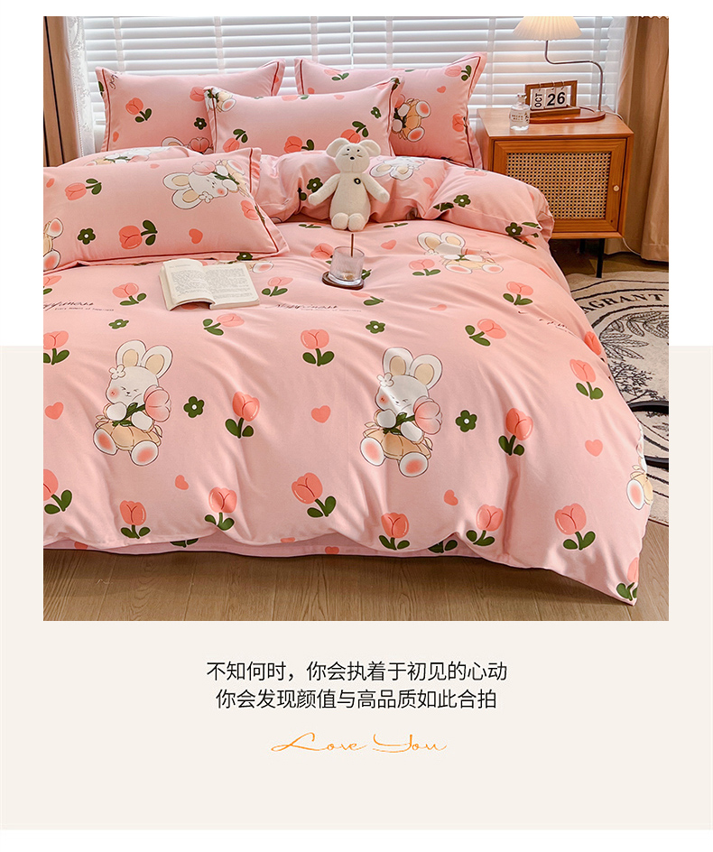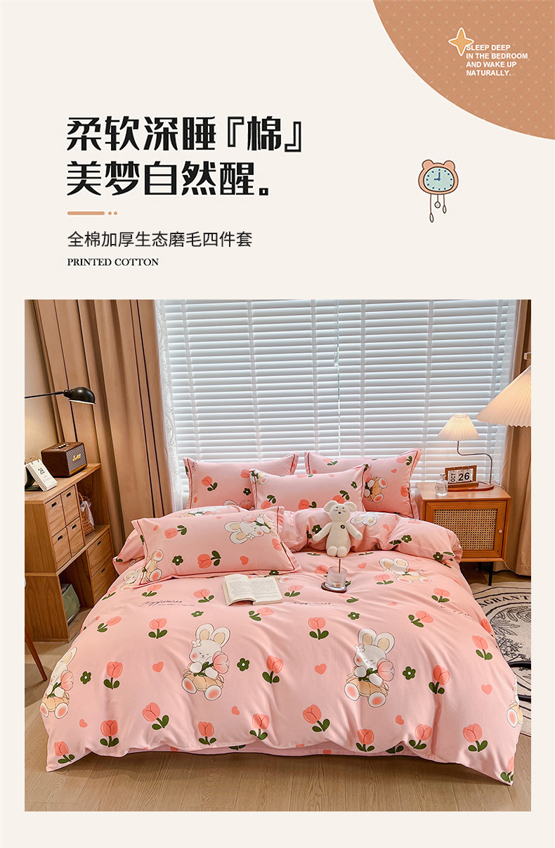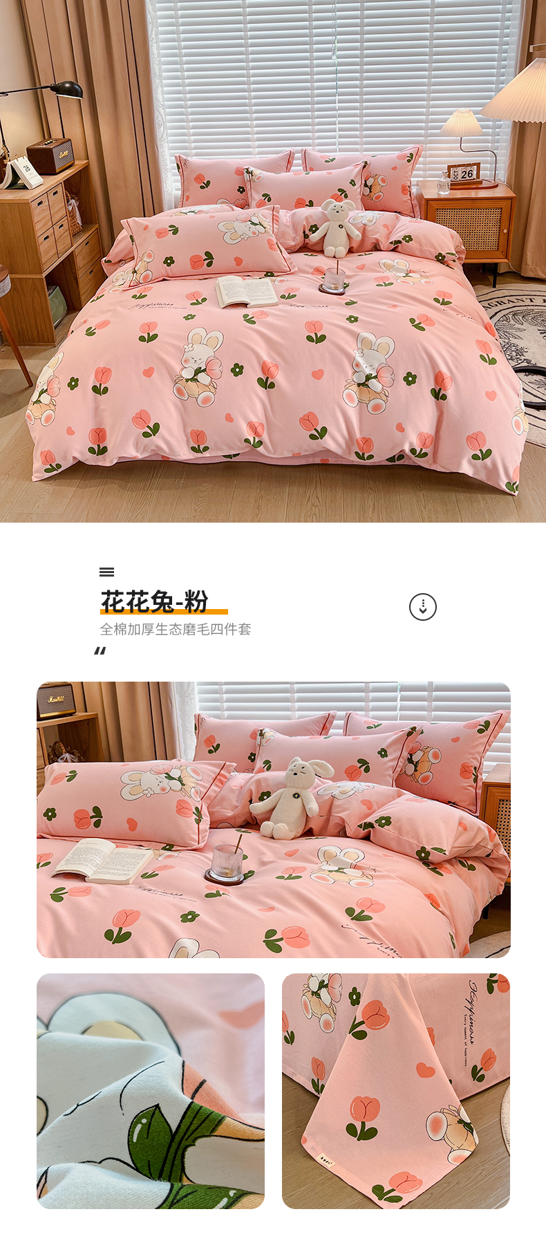 商品名称:芃成家纺 2023新款磨毛四件套 花花兔-粉