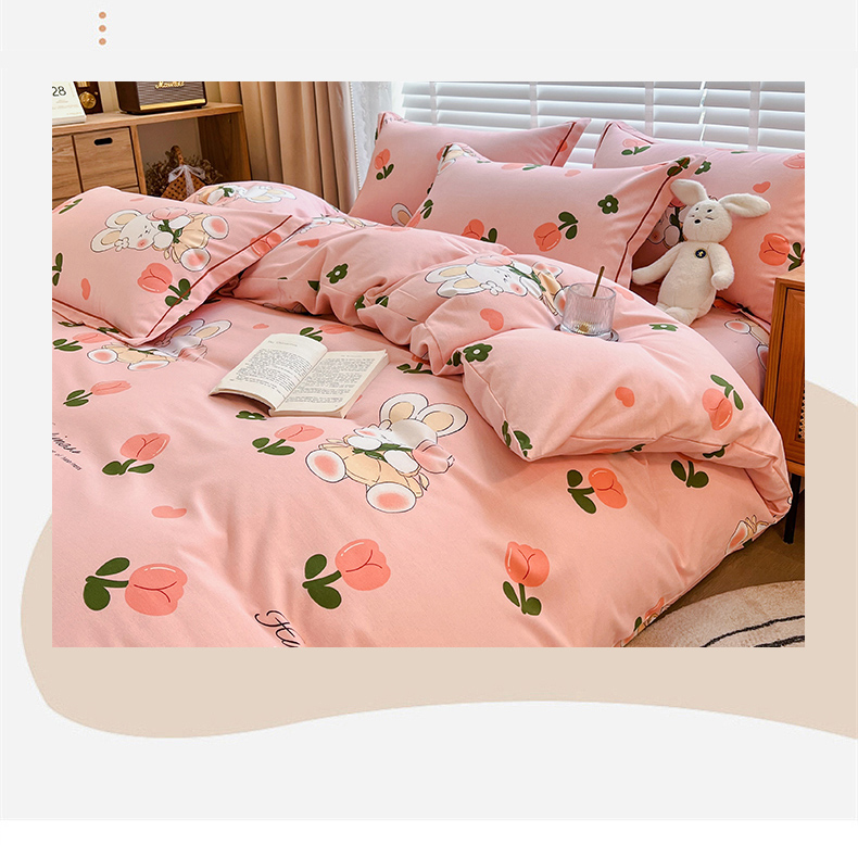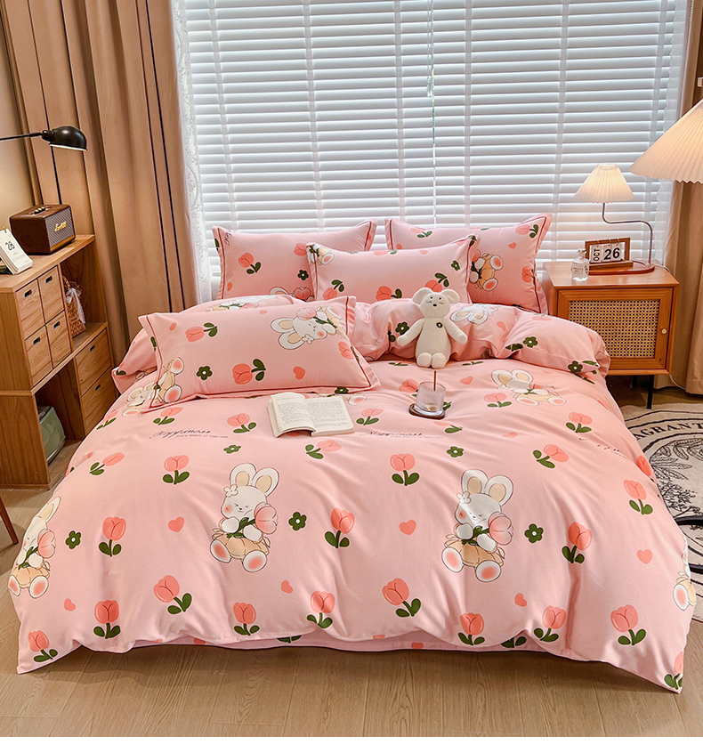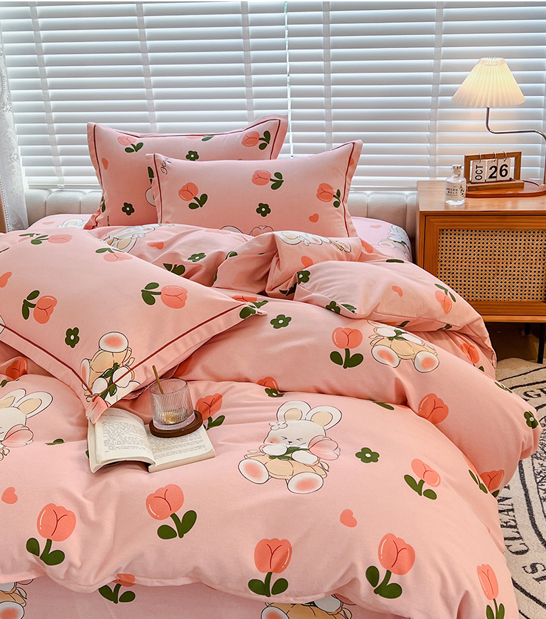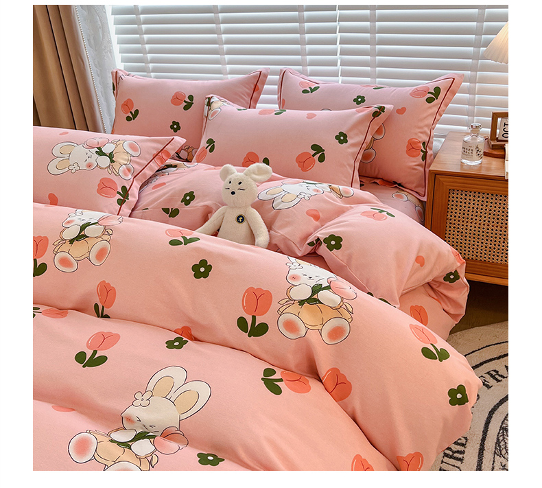 芃成家纺 2023新款磨毛四件套 花花兔-粉