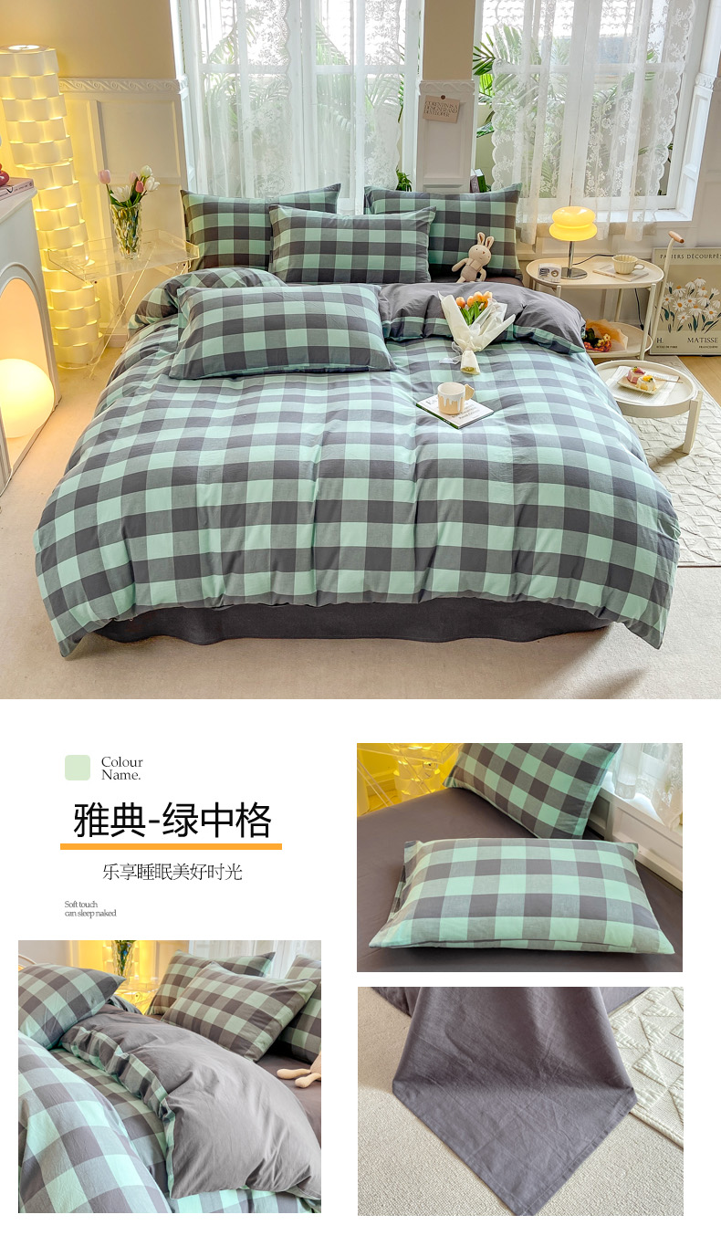 当前位置: 91家纺网 > 商品网购 > 床品套件 > 四件套 > 水洗棉四件套 > 米可 2025新款全棉色织水洗棉四件套雅典-绿中格