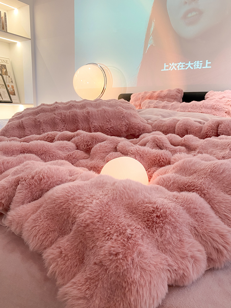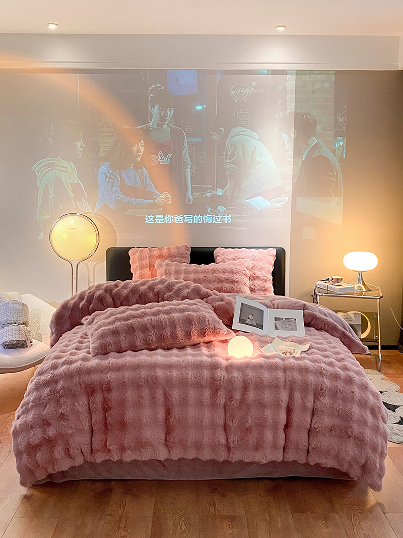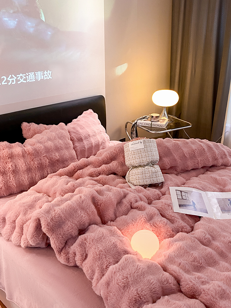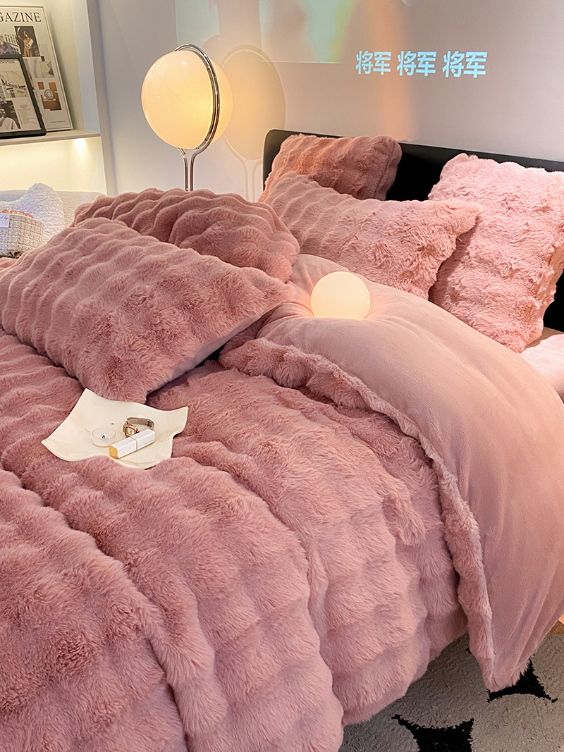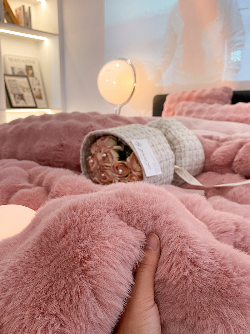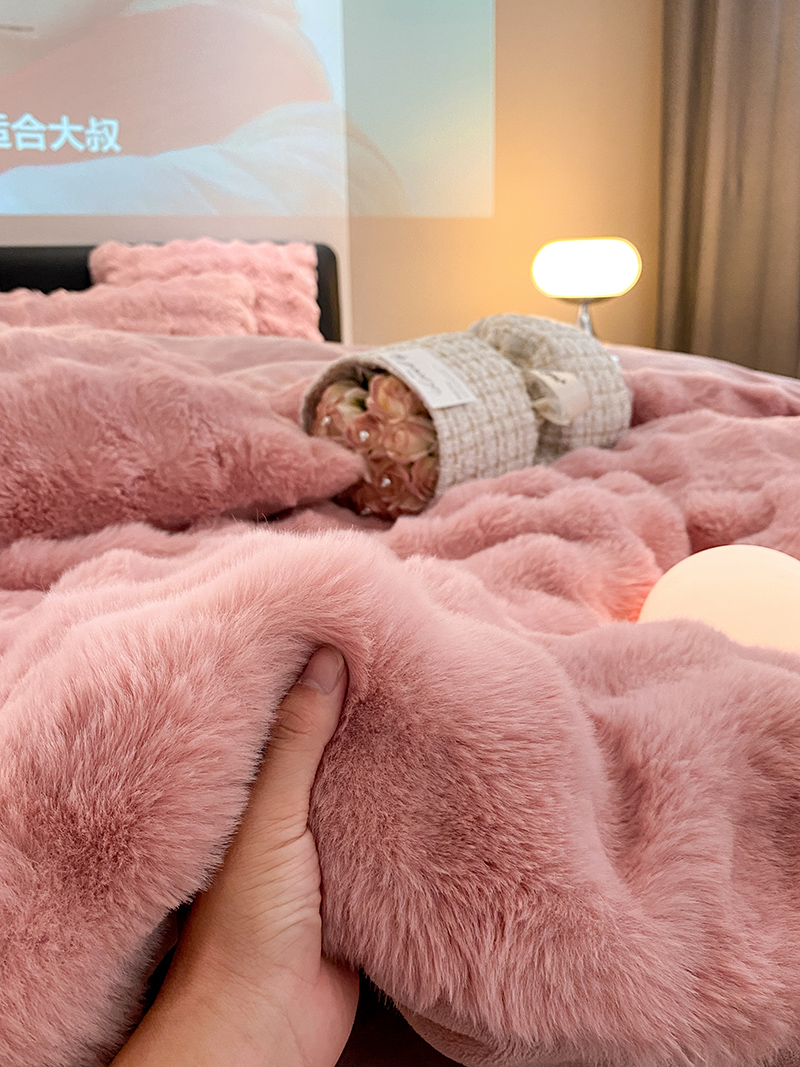 商品名称:澳梵家居 2023舒芙蕾印花兔兔绒牛奶绒四件套 舒芙蕾-豆沙红