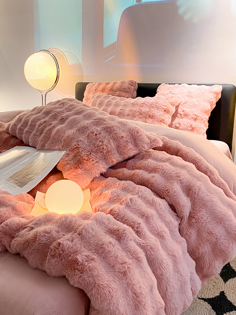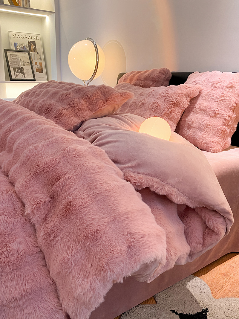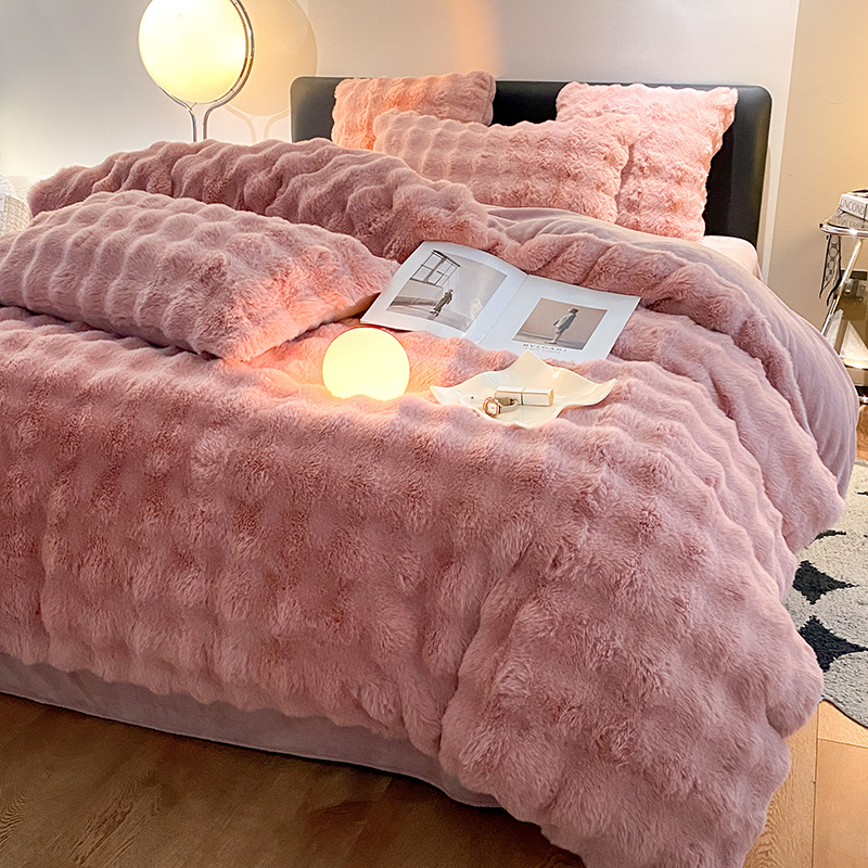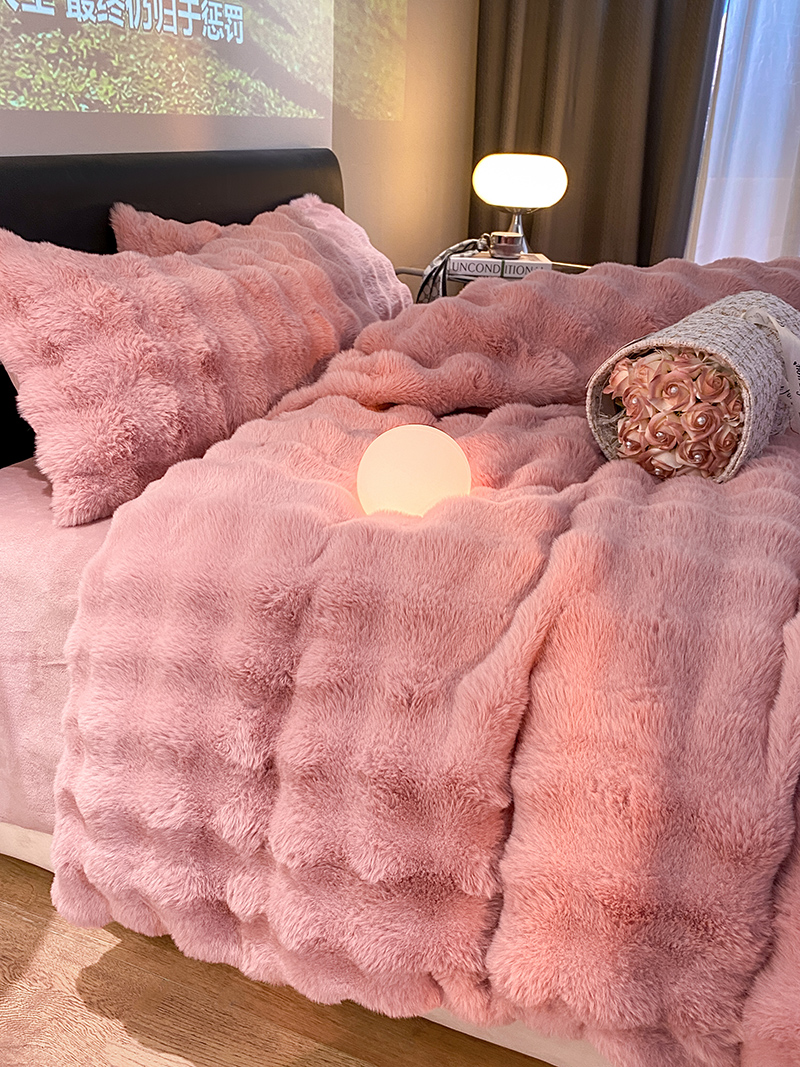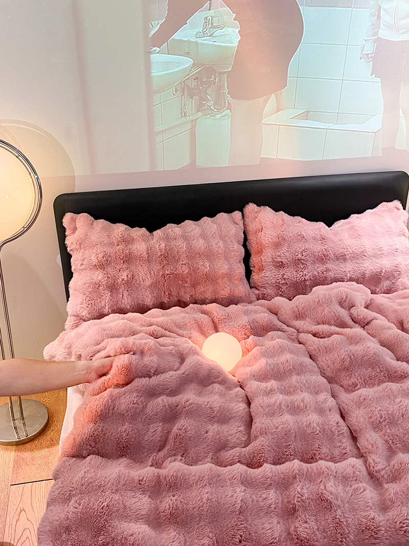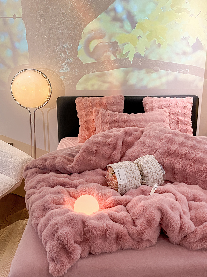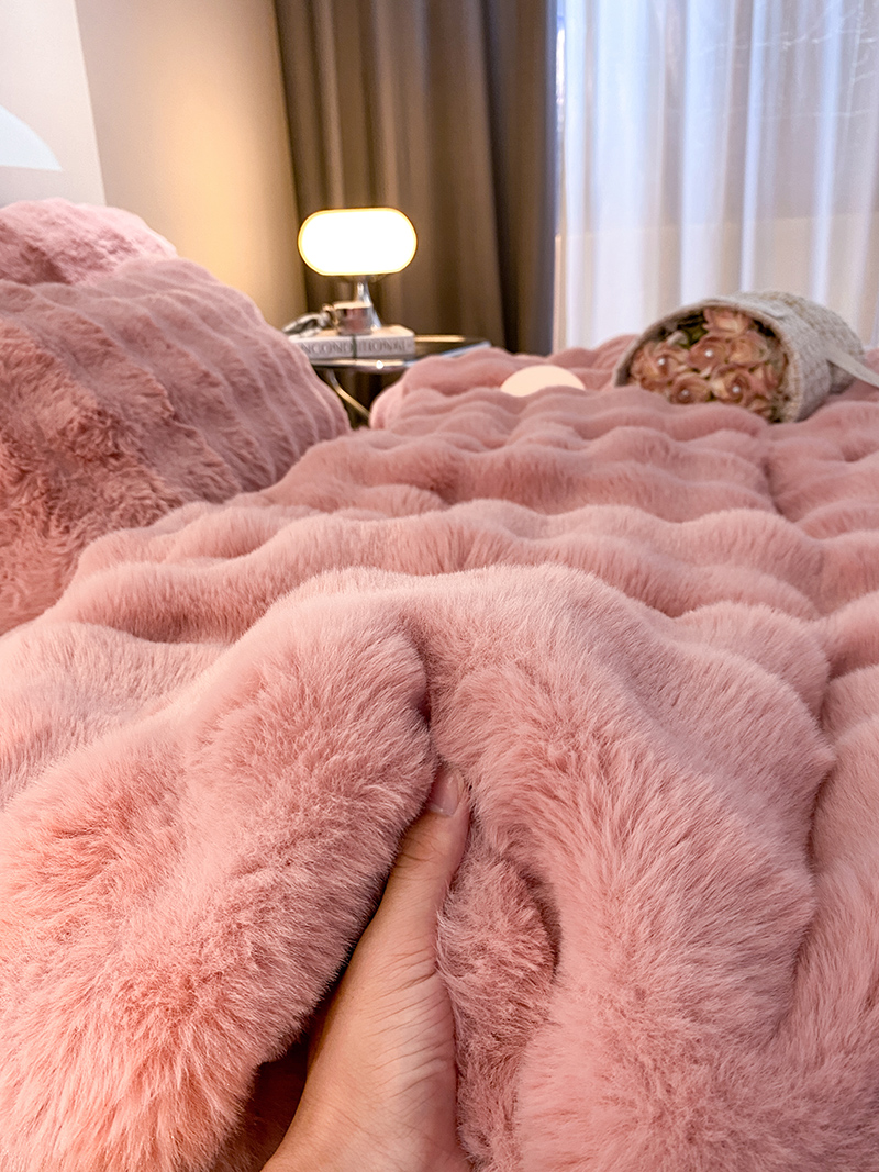 商品名称:澳梵家居 2023舒芙蕾印花兔兔绒牛奶绒四件套 舒芙蕾-豆沙红