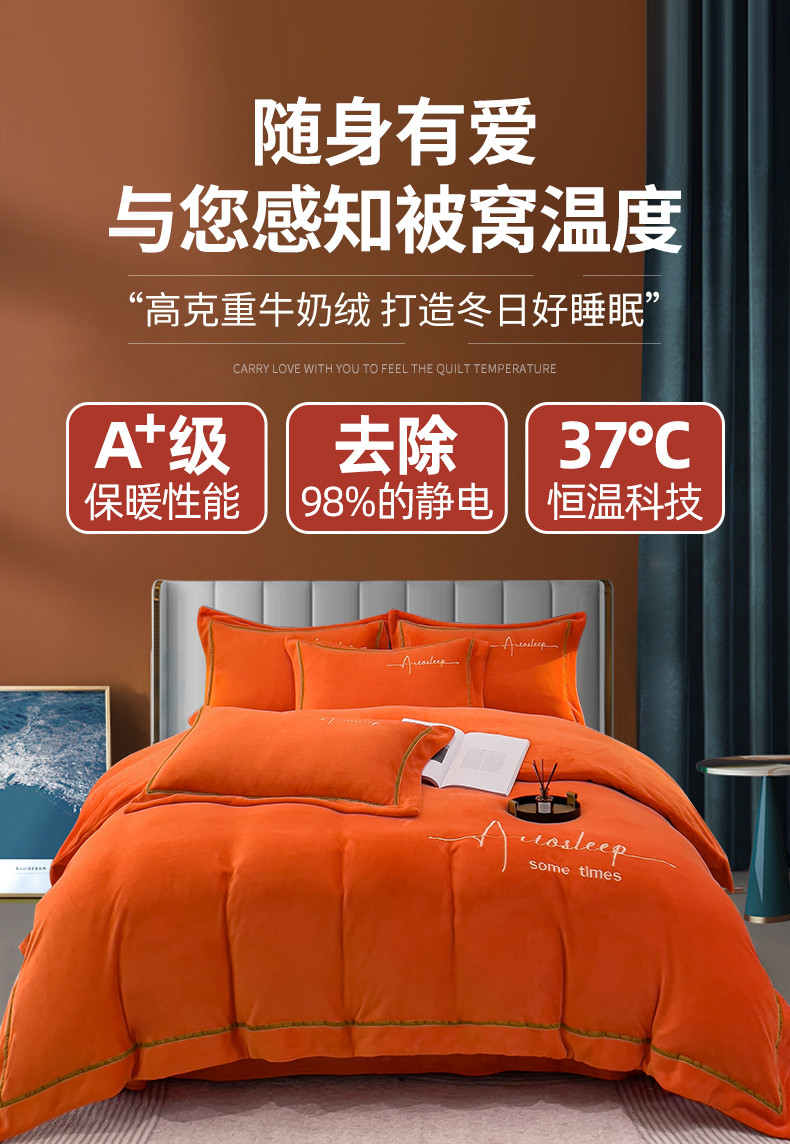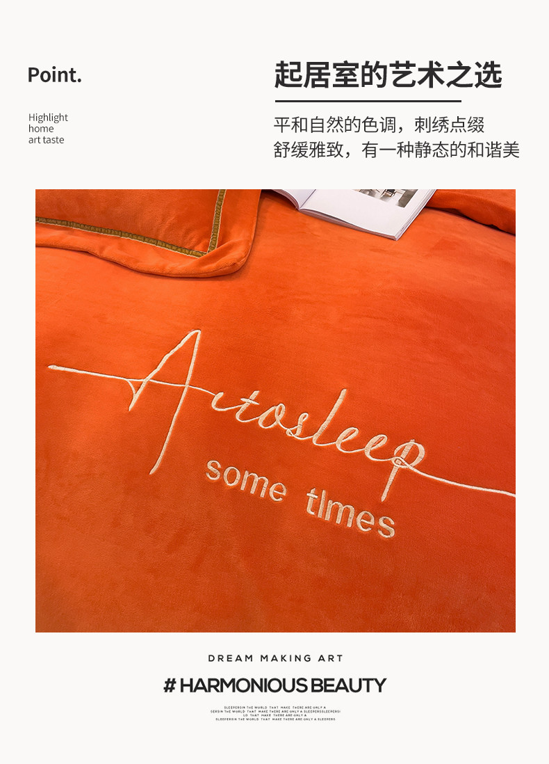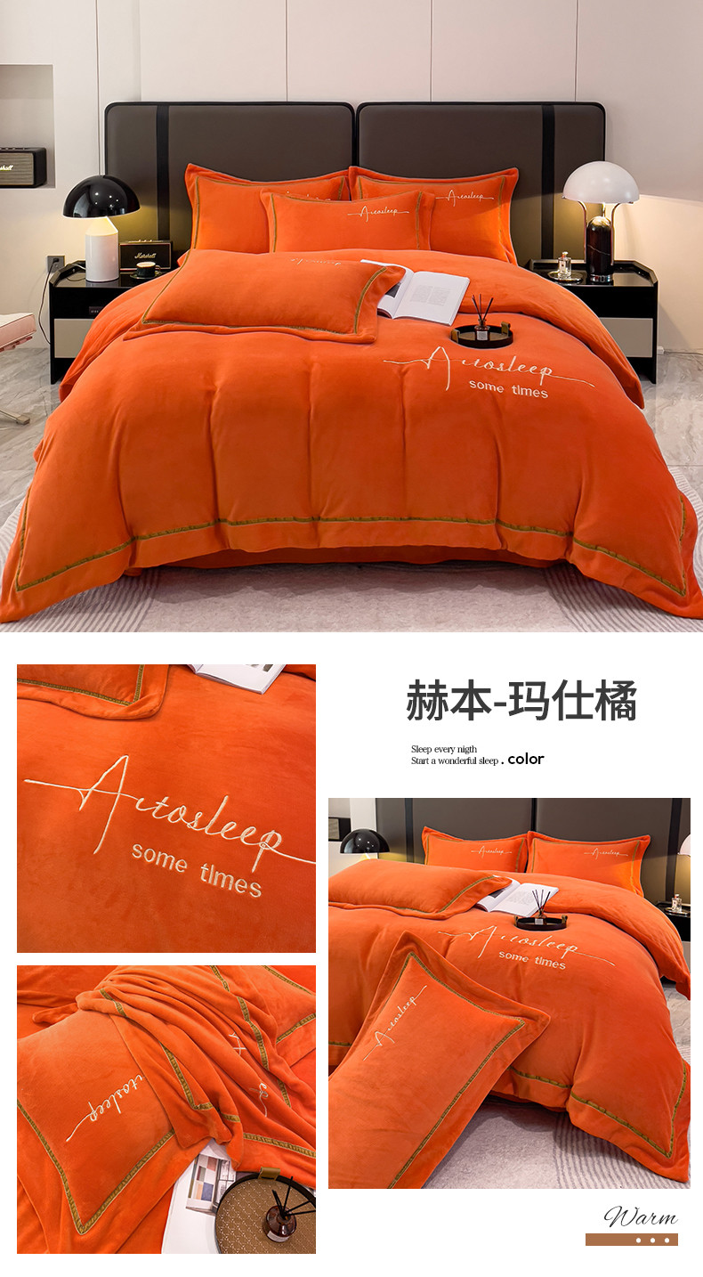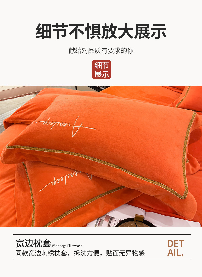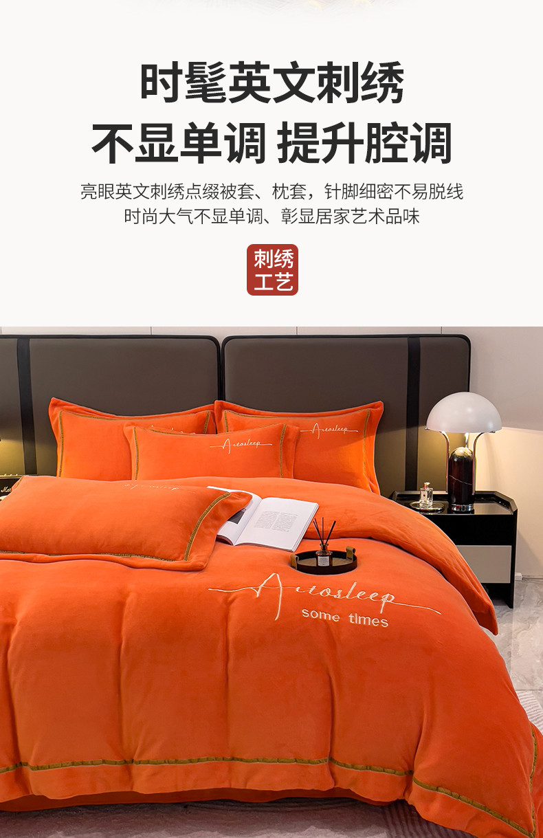 商品名称:露梦 2025新款高克重牛奶绒刺绣四件套-赫本 赫本-玛仕橘