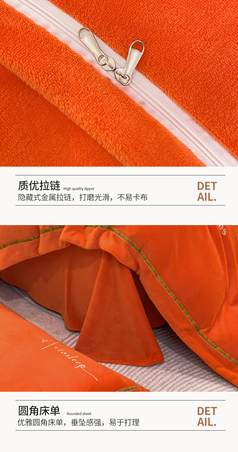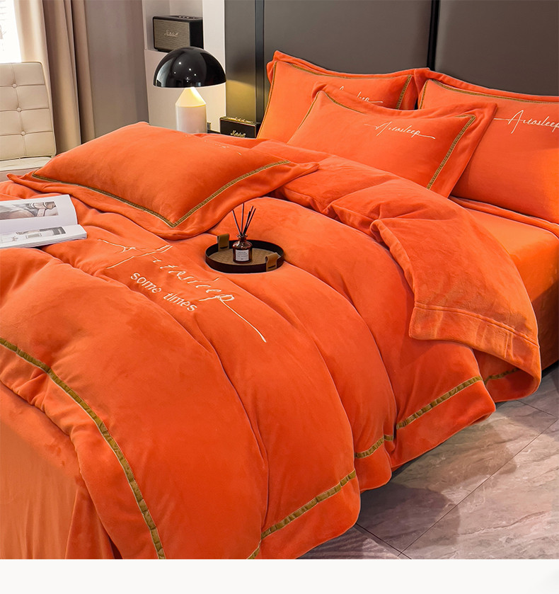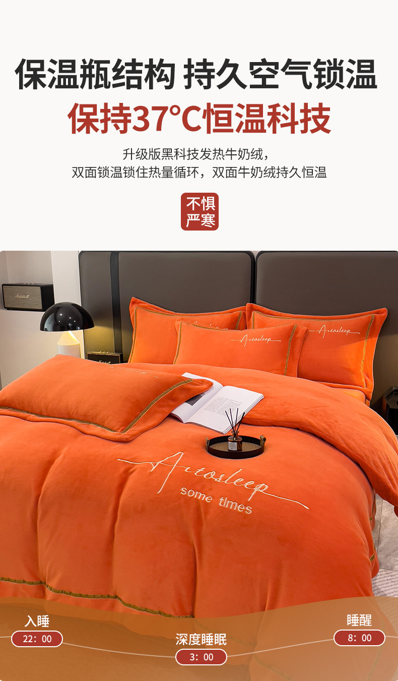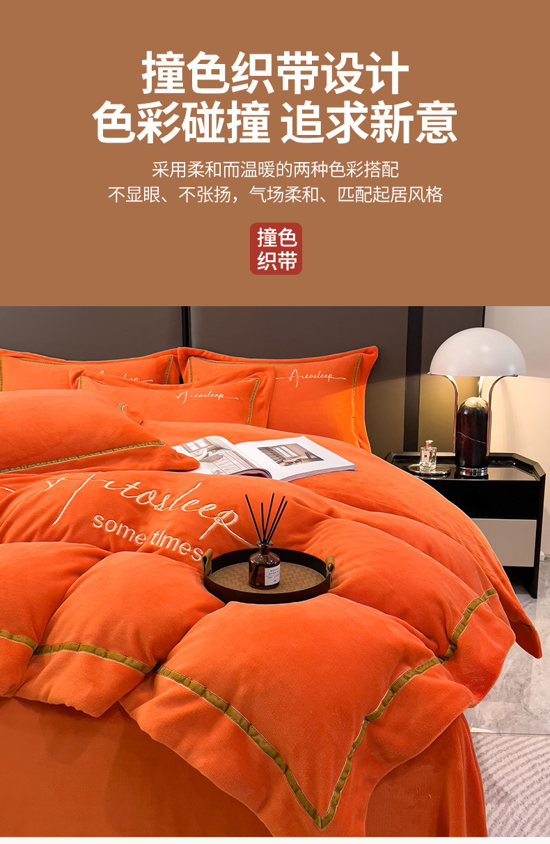 商品名称:露梦 2025新款高克重牛奶绒刺绣四件套-赫本 赫本-玛仕橘