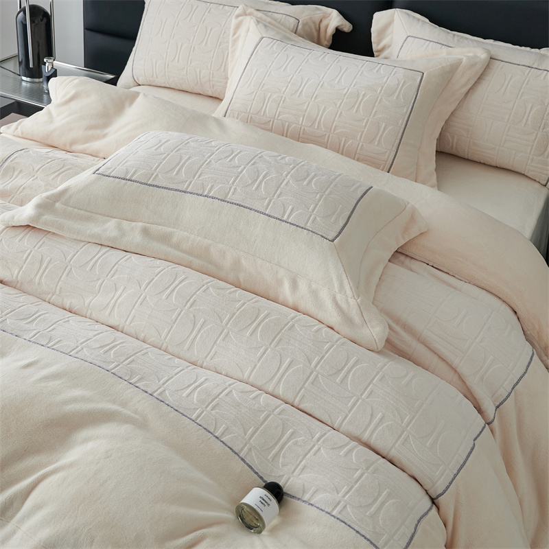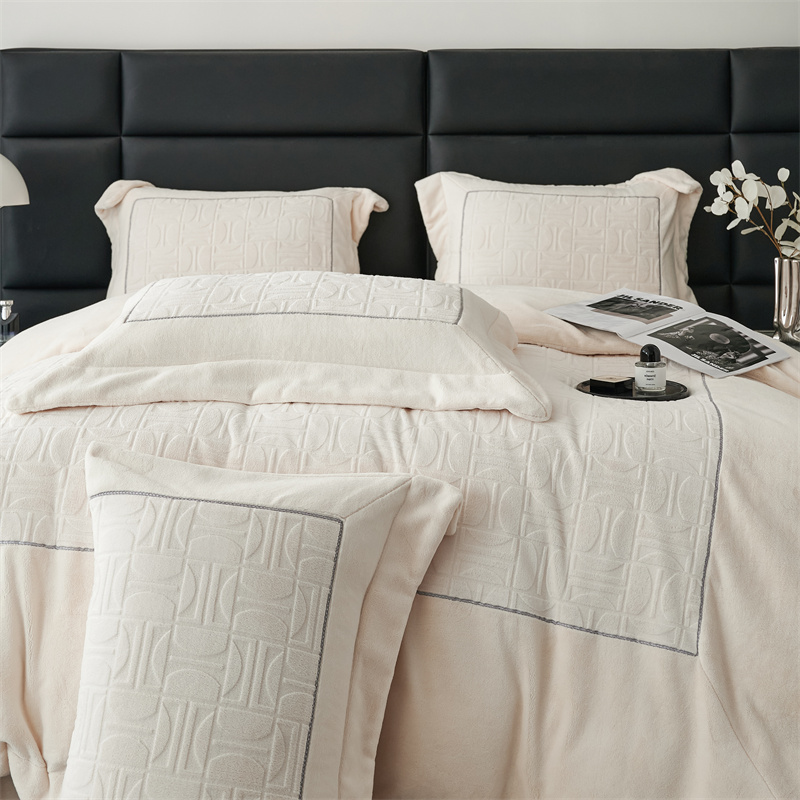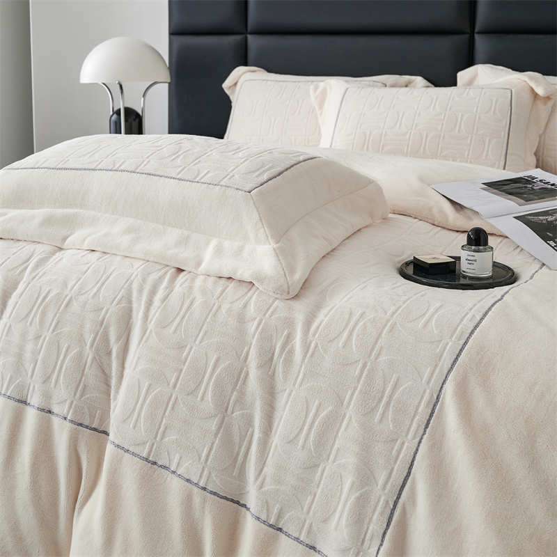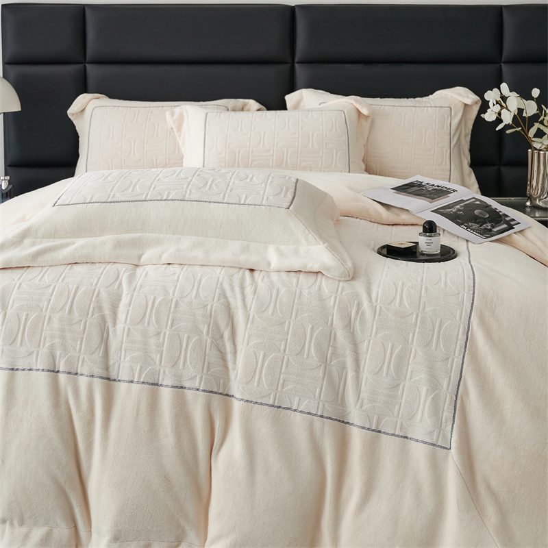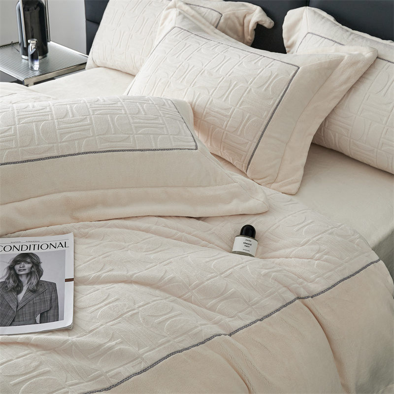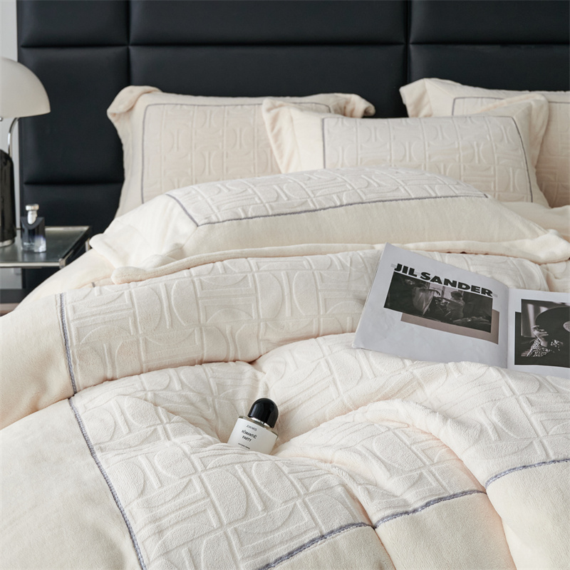 时亿 2023新款250g牛奶绒四件套凹凸有致 新贵白