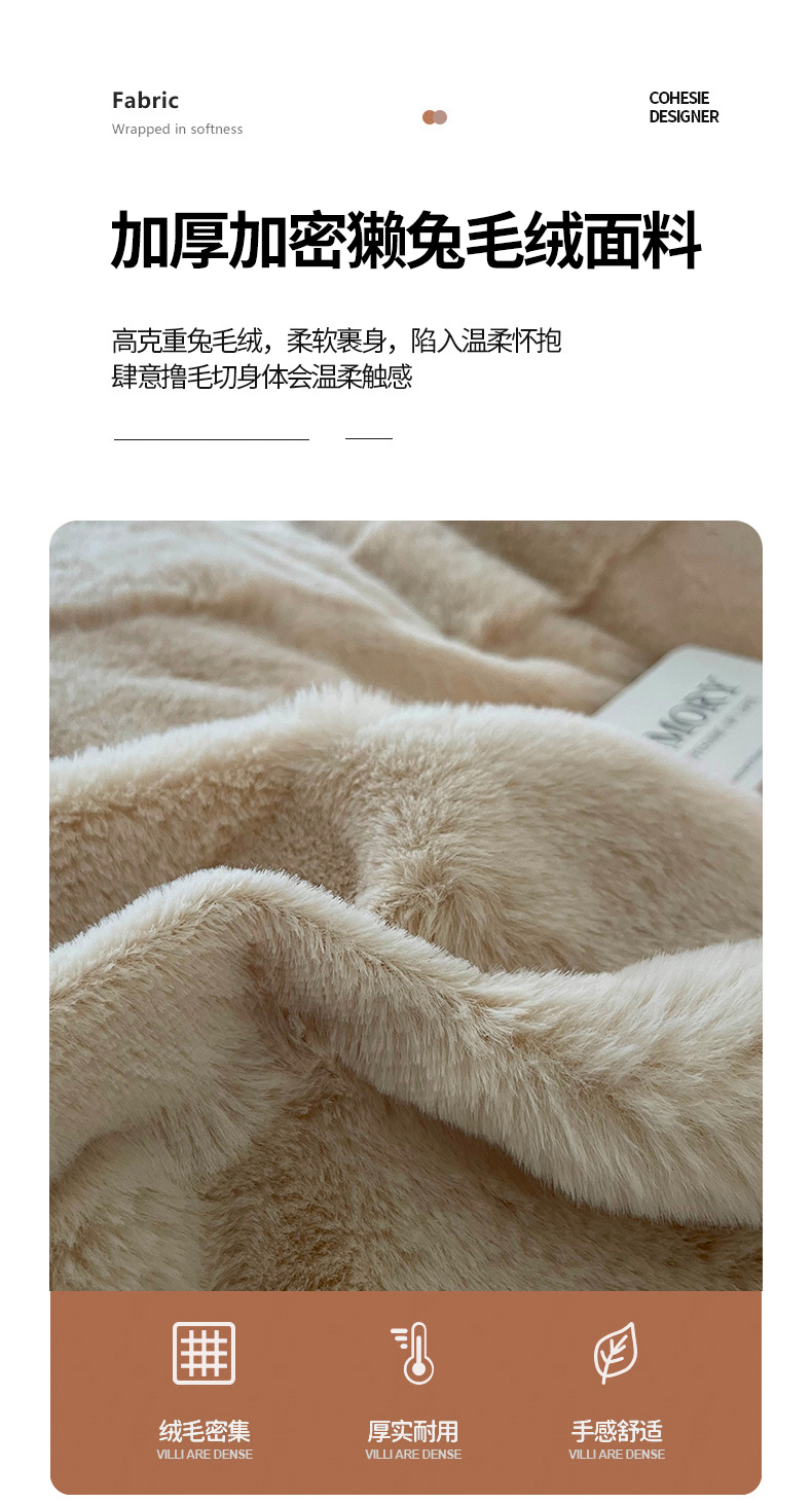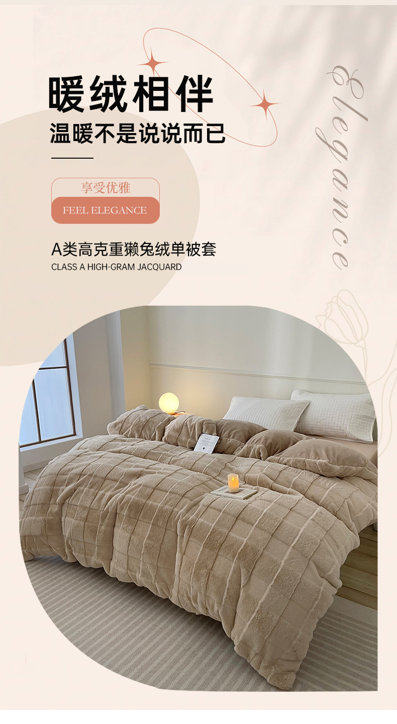 商品名称:喜梦缘家纺 2025秋冬新品A类高克重獭兔毛绒单被套 奶茶咖