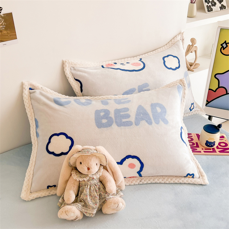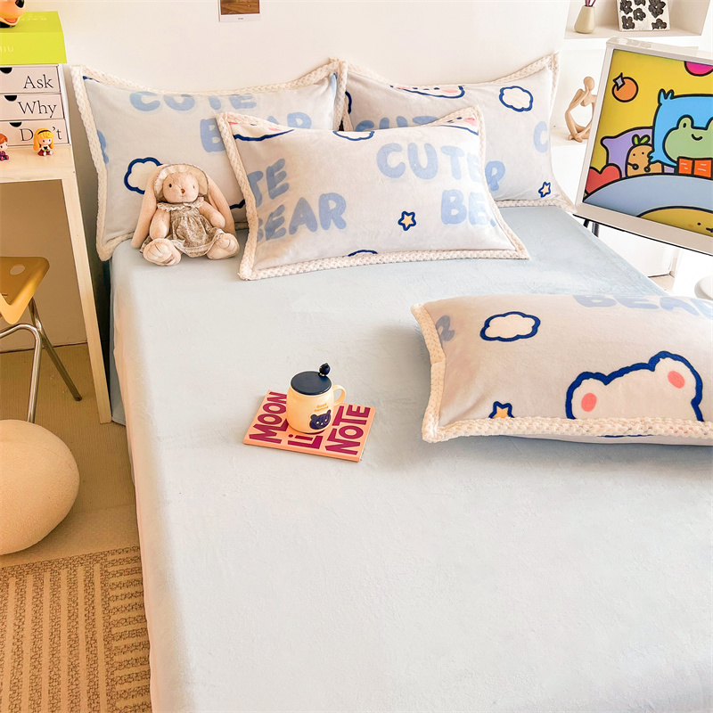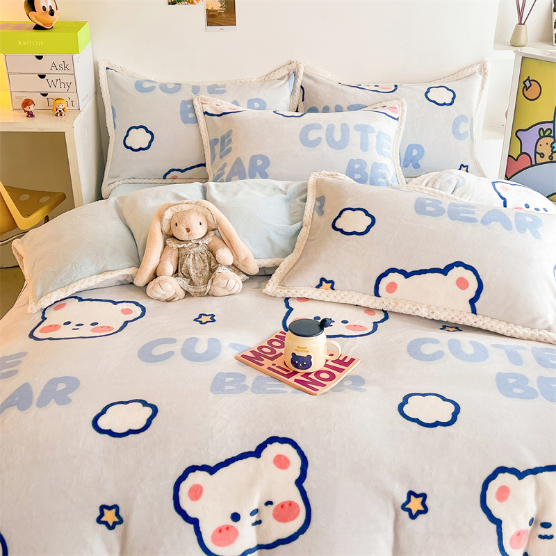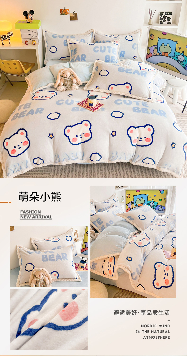 商品名称:川悦生活 2023新款牛奶绒200克宽边四件套 宽边萌朵小熊