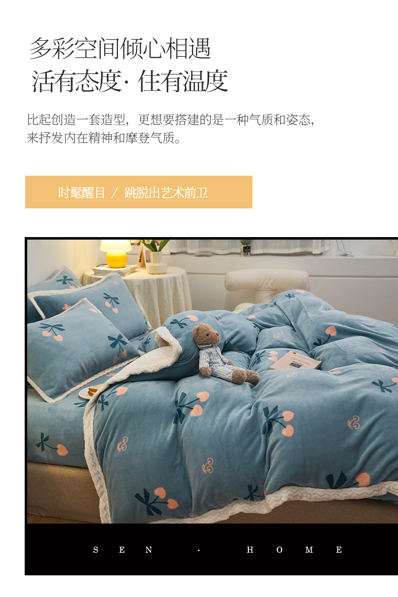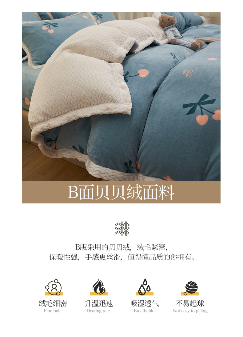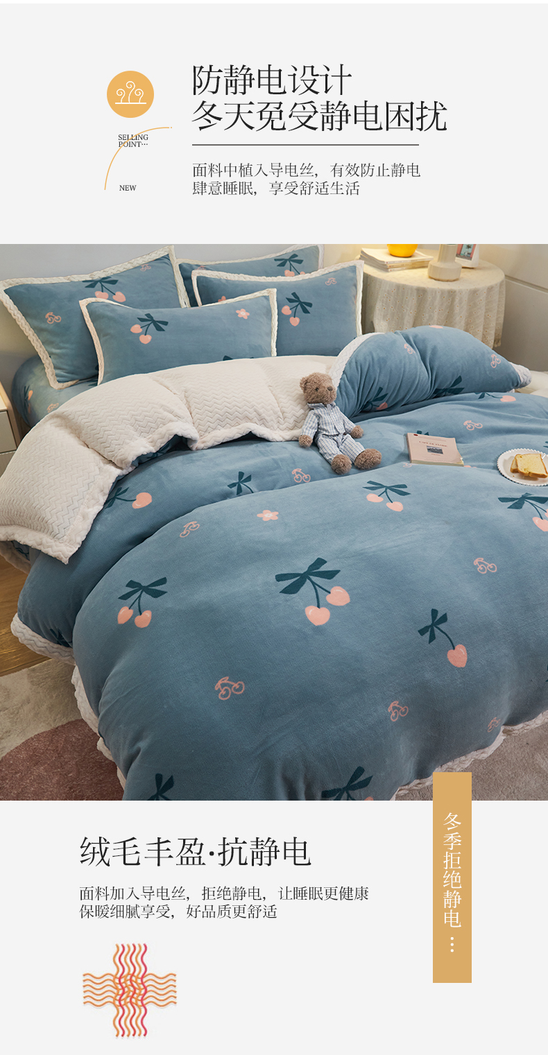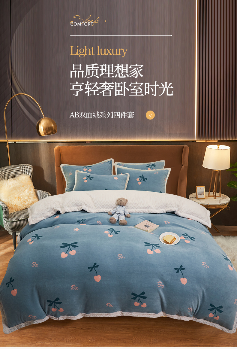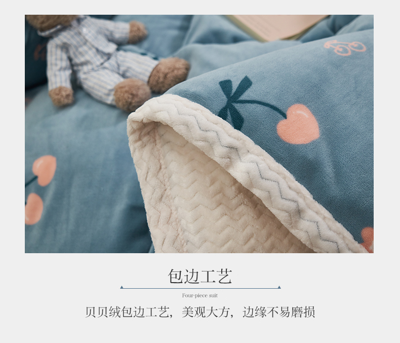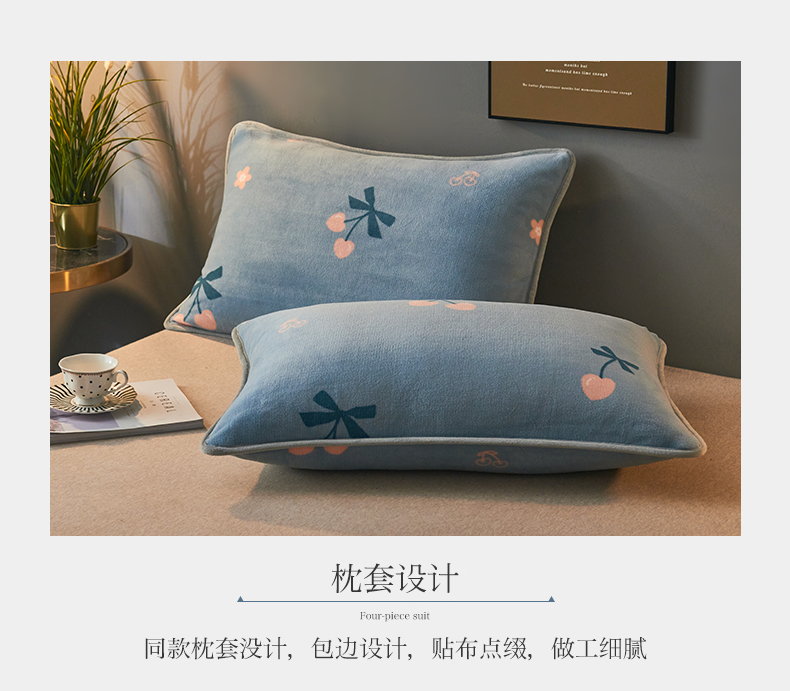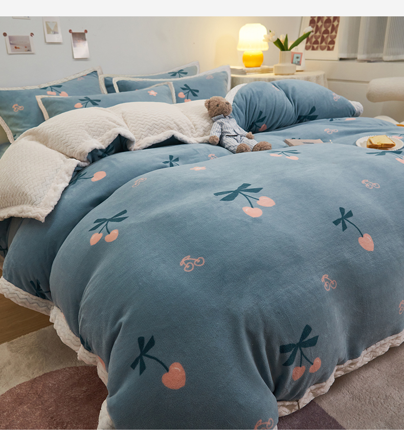 当前位置: 91家纺网 > 商品网购 > 床品套件 > 四件套 > 牛奶绒四件套 > 全季家居2023新款纯色印花抗静电大包边牛奶绒贝贝绒四件套-印花 小樱桃