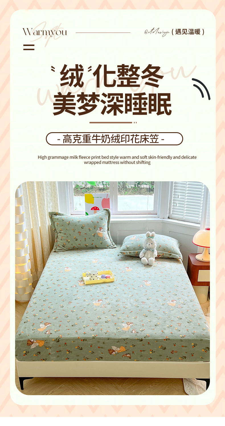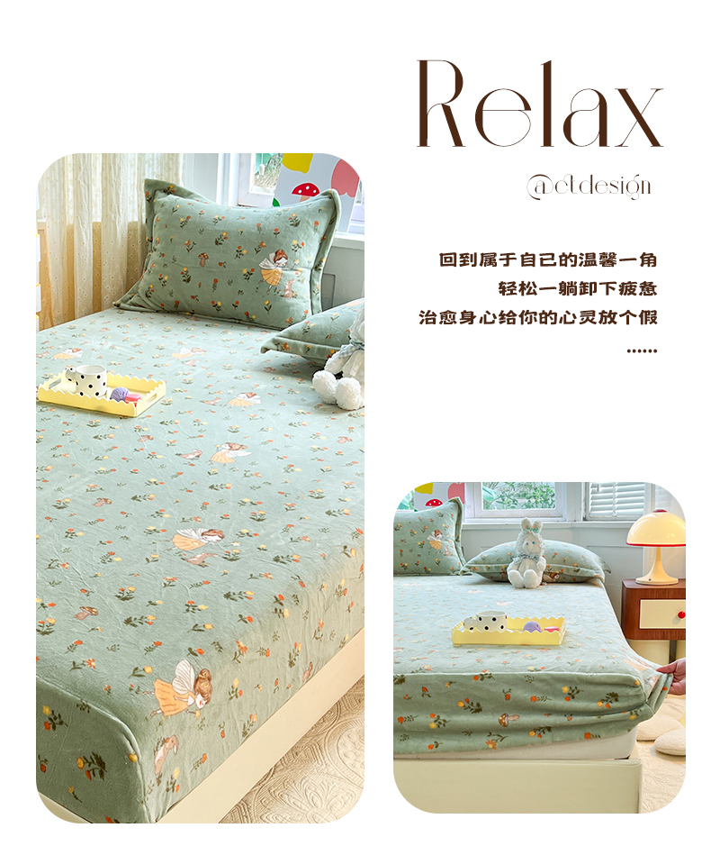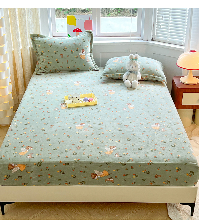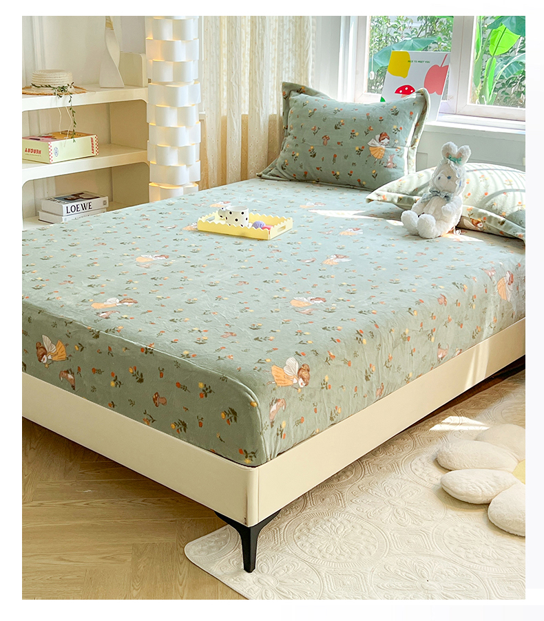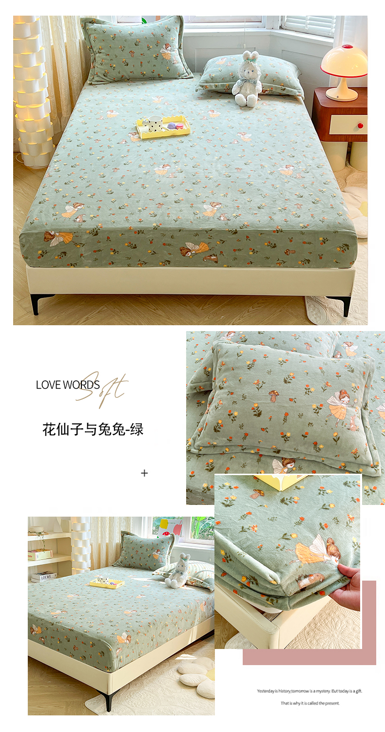 妖妖家纺 2023新款牛奶绒单床笠 花仙子与兔兔-绿