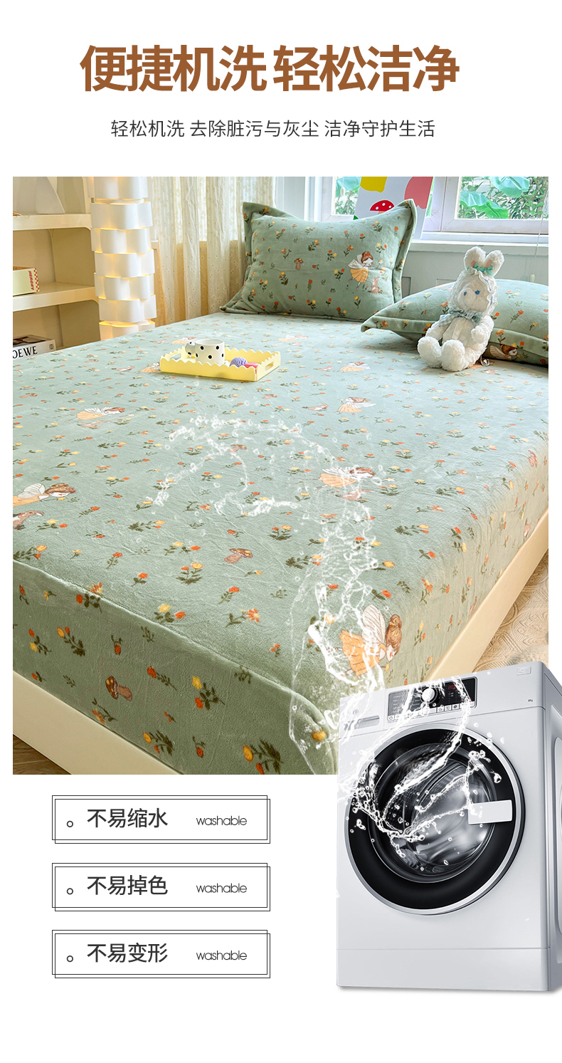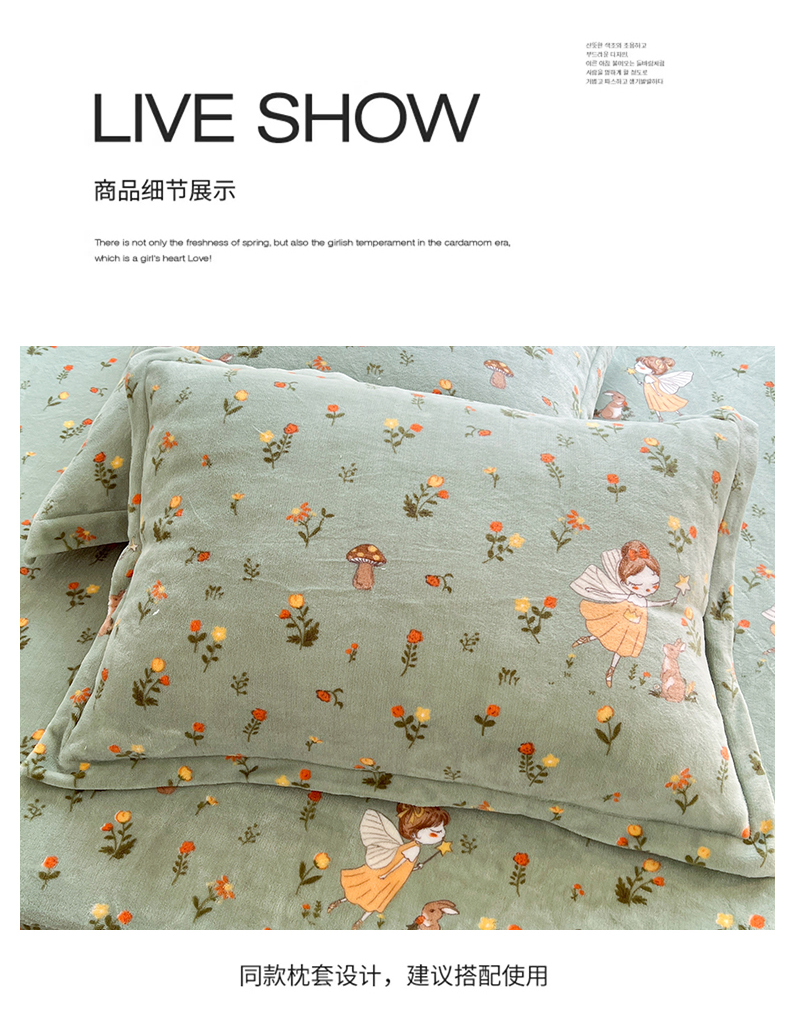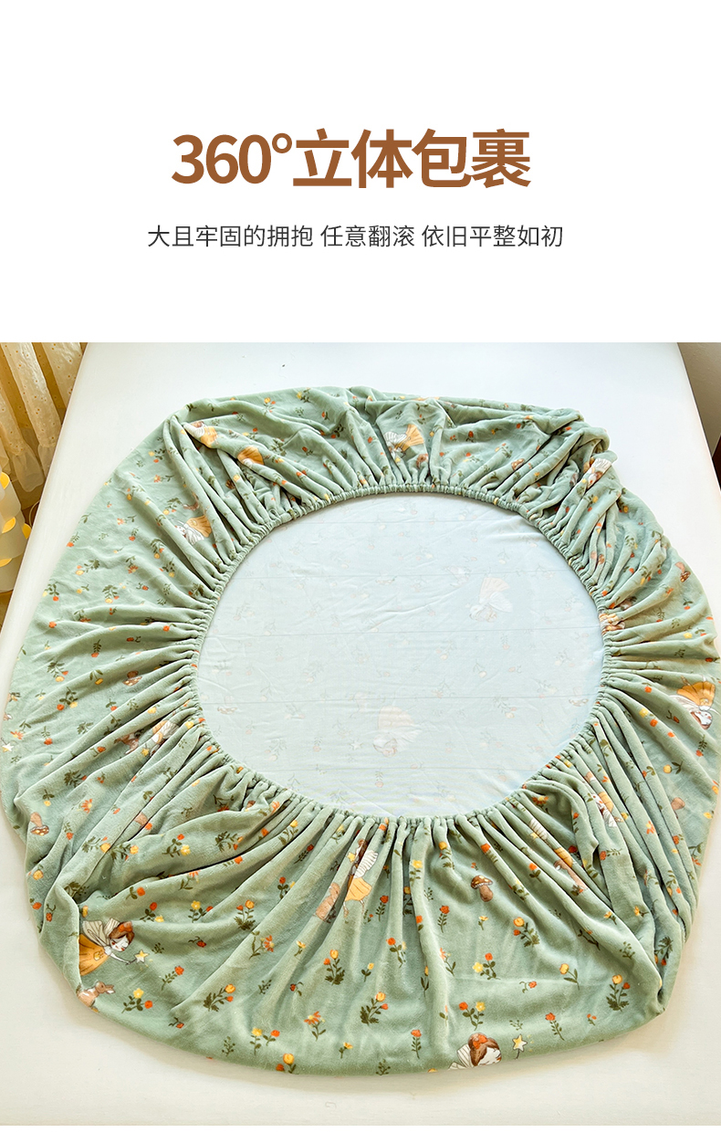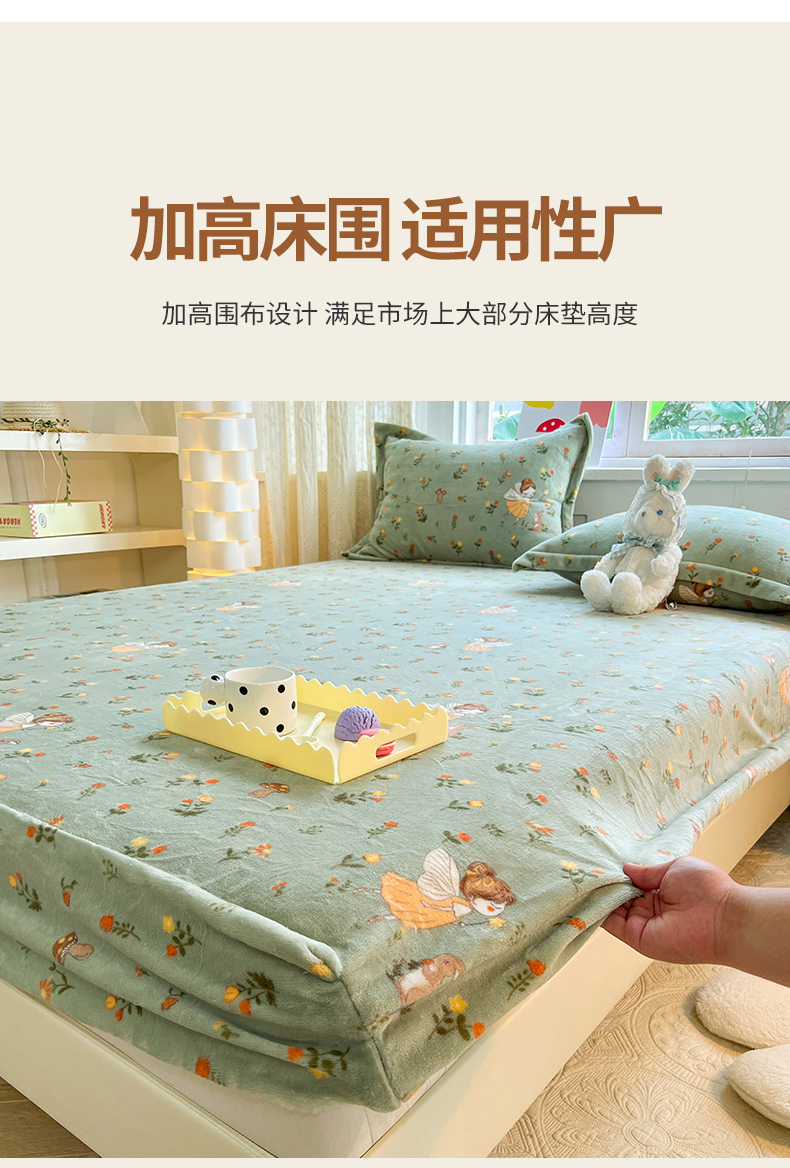 商品名称:妖妖家纺 2023新款牛奶绒单床笠 花仙子与兔兔-绿
