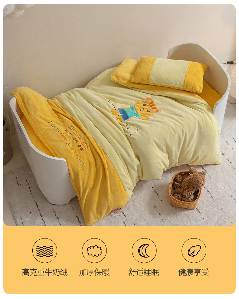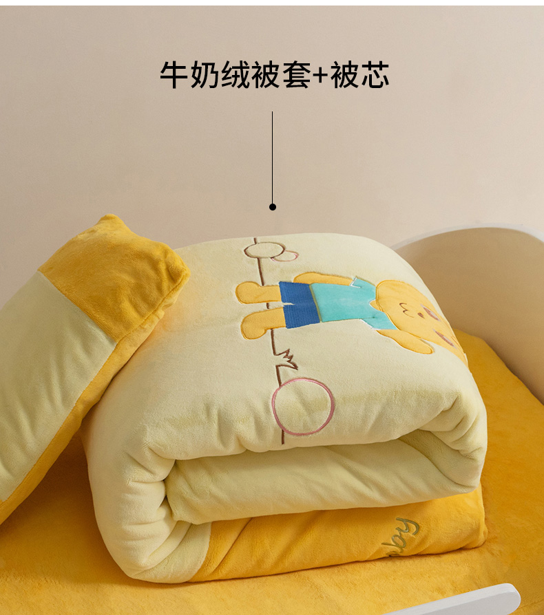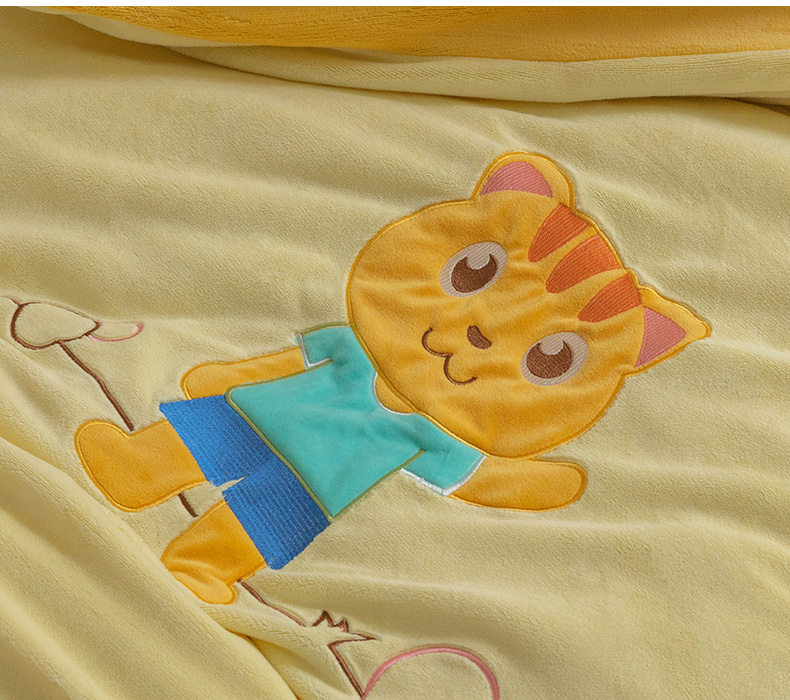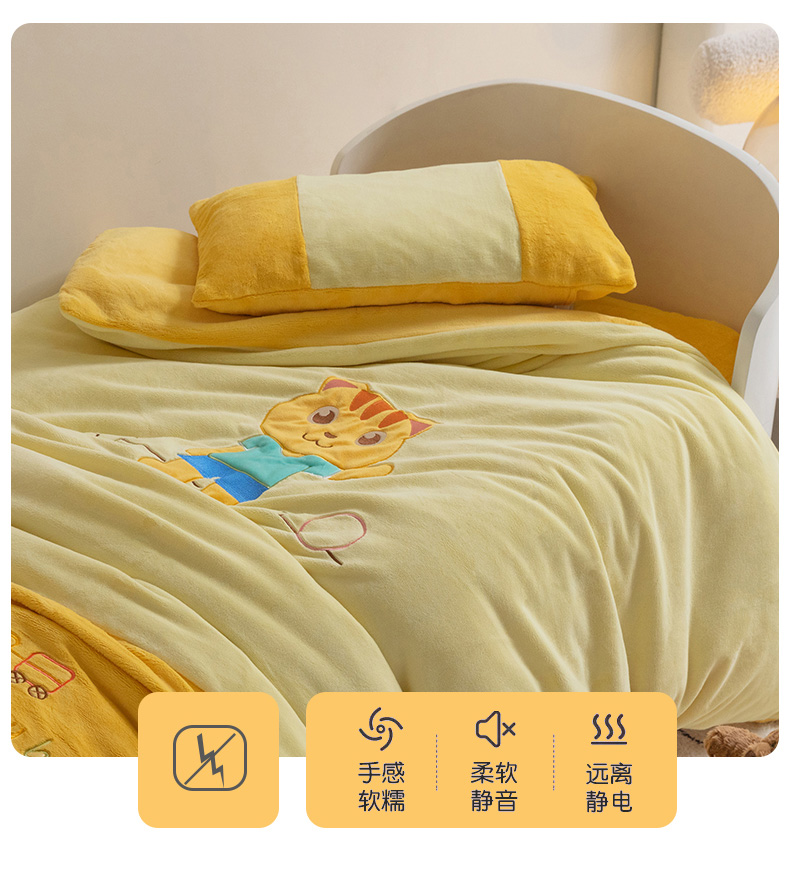 • 91家纺网 家纺一手货源 找家纺 喜多兔儿童家纺 2023喜多兔牛奶绒活套被 小伙伴系列—黄色哈喽小猫咪