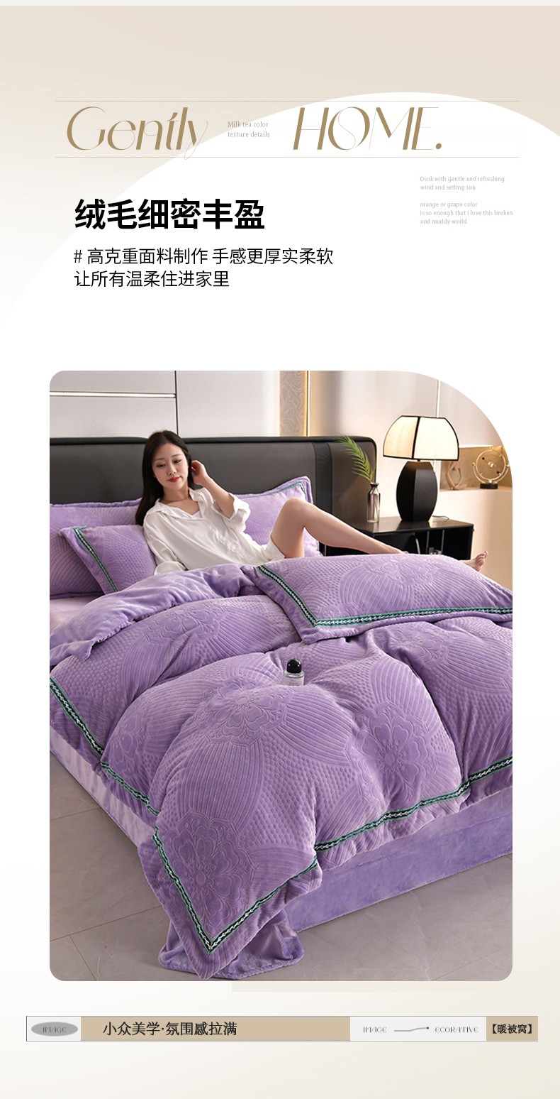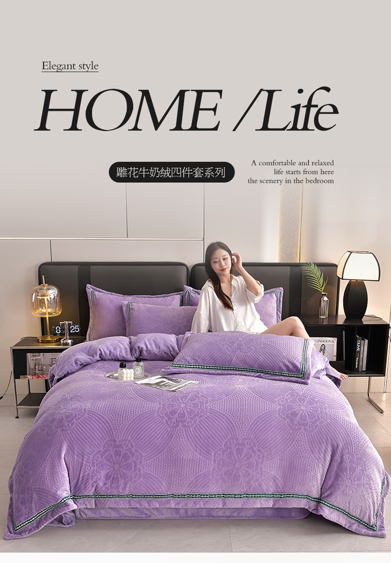 商品名称:绒耀 2025新款高克重雕花绒四件套 梵迪-魅力紫
